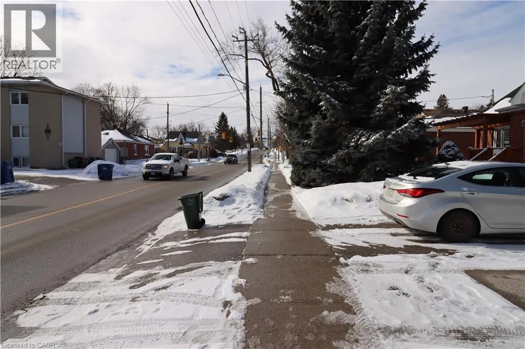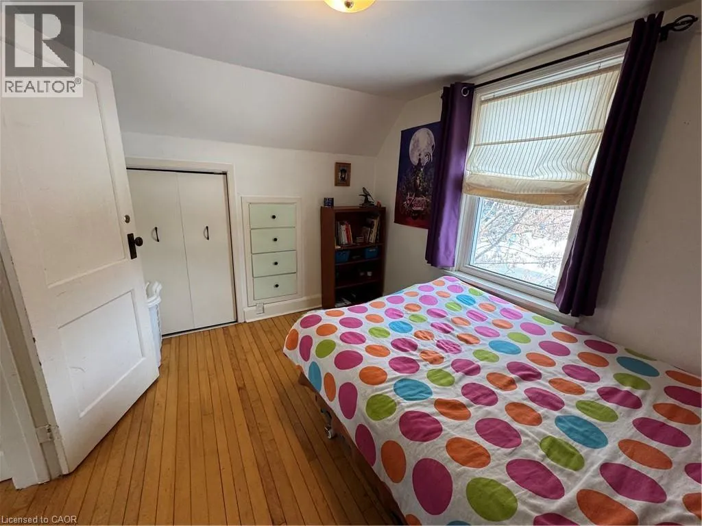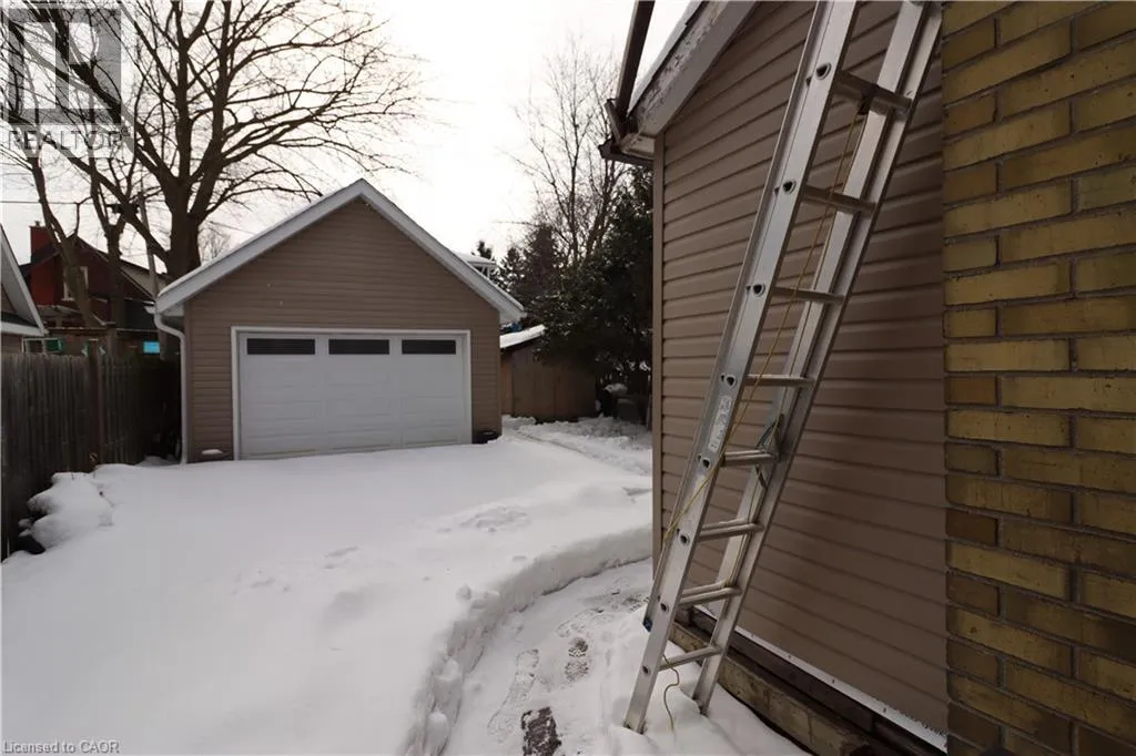 Experience the perfect blend of 1915 historic character and modern versatility in this gable-roofed century home. Nestled in the vibrant heart of downtown Guelph, this residence offers an unbeatable walkability score and timeless charm that is increasingly rare. As you approach, the unique cement and green living driveway immediately stands out. This eco-friendly, permeable system blends structural durability with natural aesthetics, creating a living parking surface that naturally manages stormwater runoff and recharges the local water tableâa perfect match for the environmentally conscious homeowner. Step from the welcoming front porch into a light-filled interior boasting original hardwood floors and sun-drenched living spaces. The main floor transitions seamlessly from a bright dining room into a cozy living area anchored by a classic red gas stove. The kitchen is a chefâs delight, featuring natural wood cabinetry and a double gooseneck sink overlooking the side yard. Nearby, a semi-finished mudroom awaits your final creative touch. Upstairs, you will find a primary suite featuring custom 8-drawer, 3 door built-in storage, maximizing every inch of the home's historic footprint. The true show-stopper is the 2020-built, $47k+ custom garage and studio. Professionally equipped with an air-source heat pump for year-round assistive energy-efficient climate control and a loft bed/den lit by skylights, this space is a dream for remote professionals, artists, or fitness enthusiasts. Enjoy total peace of mind with extensive high-ticket upgrades already completed: 2023: New professional roof ($6,275) and a modern water softener. 2022: Full bathroom remodel ($9,715) featuring chic subway tile and a unique peek-a-boo shower window. 2017: High-efficiency furnace, AC, and water heater ($9,492). This home offers authentic historic soul with zero old house stress. Own a piece of Guelph history with all the heavy lifting already done! (id:27476)
