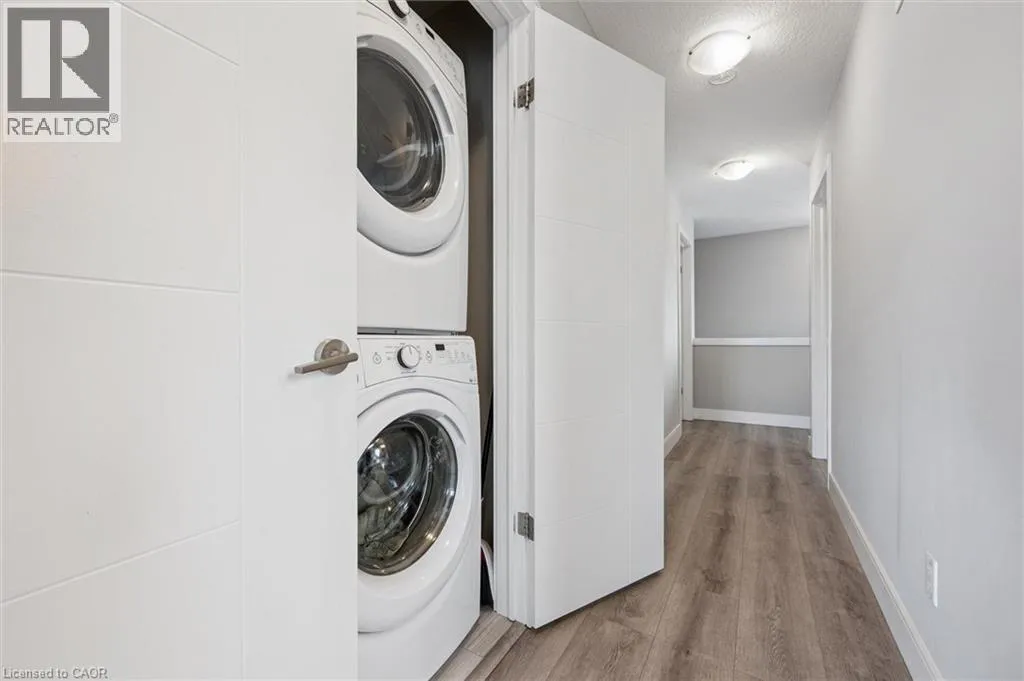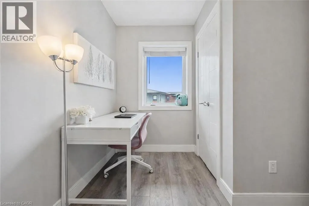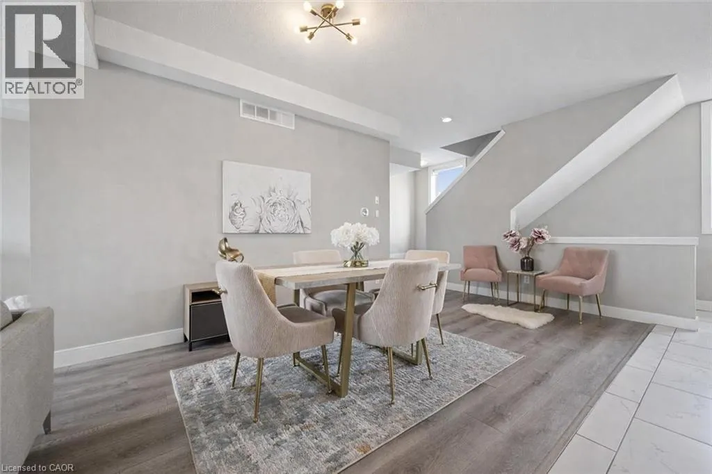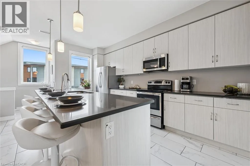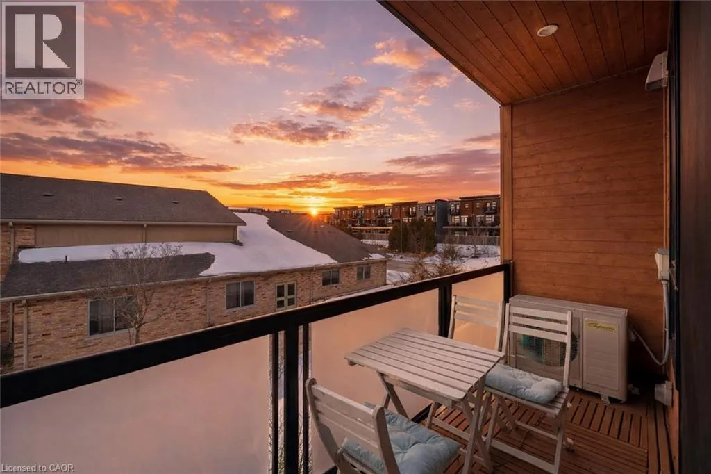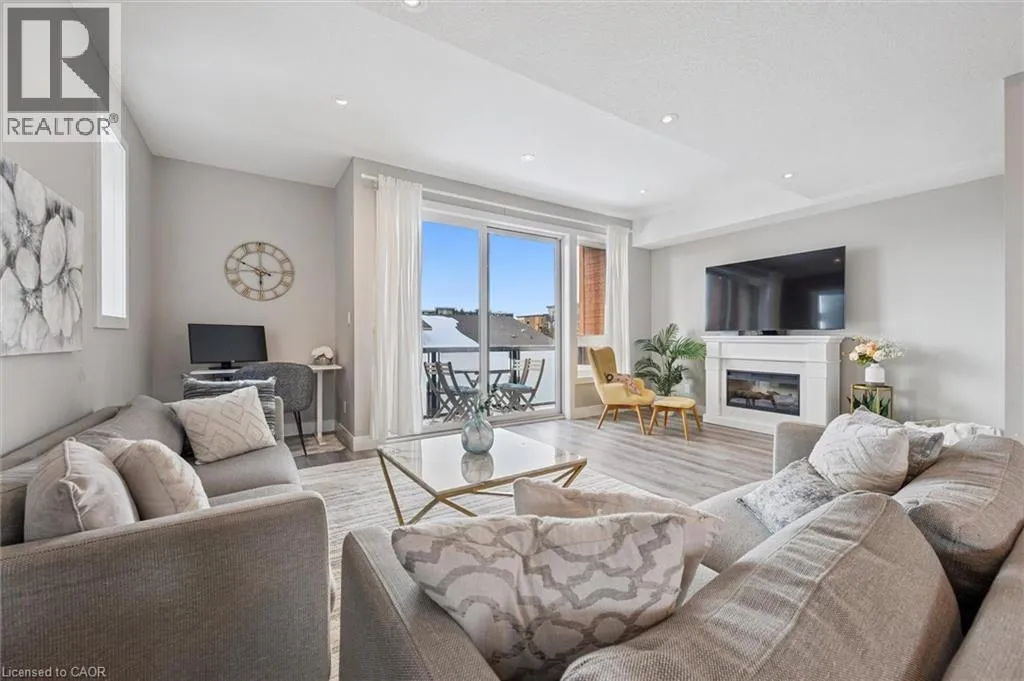 Gordon St 7-32 Arkell Rd is a remarkable 3-bdrm townhome showcasing elegant high-end finishes in the Arkell Springs complex, ideally located in Guelphâs sought-after south-end! With its striking modern exterior, clean architectural lines & premium design throughout, this home offers perfect blend of style, comfort & convenience for families, downsizers or professionals. This rare unit incl. 2 parking spacesâincredibly valuable feature in this desirable complex! Kitchen W/sleek full-height cabinetry, granite counters, S/S appliances & oversized tile flooring. 10ft centre island W/breakfast bar, pendant lighting & B/I sinkâideal for everyday living & entertaining. Kitchen flows into open-concept dining area W/premium vinyl wood flooring & sound-absorbing cork underlayment that keeps floors warm & comfortable yr-round. Living room is filled W/natural light from sliding glass doors & enhanced by pot lighting creating warm & welcoming atmosphere. Step outside to private balcony, perfect spot to relax & unwind. 2pc bath W/quartz counter completes this level. Upstairs, the primary bdrm has W/I closet & its own private balcony. Spa-like ensuite W/oversized glass W/I shower & quartz vanity. 2 add'l bdrms W/large windows & closet space provide flexibility for kids, guests or home office. 4pc main bath W/oversized tile & quartz vanity, along W/laundry area adds to the homeâs thoughtful design. Large windows throughout flood the home W/natural light & showcase views on both sides. Located in one of the most desirable south-end communities, this home offers exceptional lifestyle defined by convenience, connectivity & everyday ease. Mins from UofG, Stone Rd Mall & Pergola Commons, youâll enjoy access to shopping, dining, banks, fitness & more. Trails are close by perfect for connecting W/nature. Public transit is steps away while easy access to 401 makes commuting simple. Whether youâre a busy professional, downsizer or growing family, this prime location truly puts everything in reach! (id:27476)