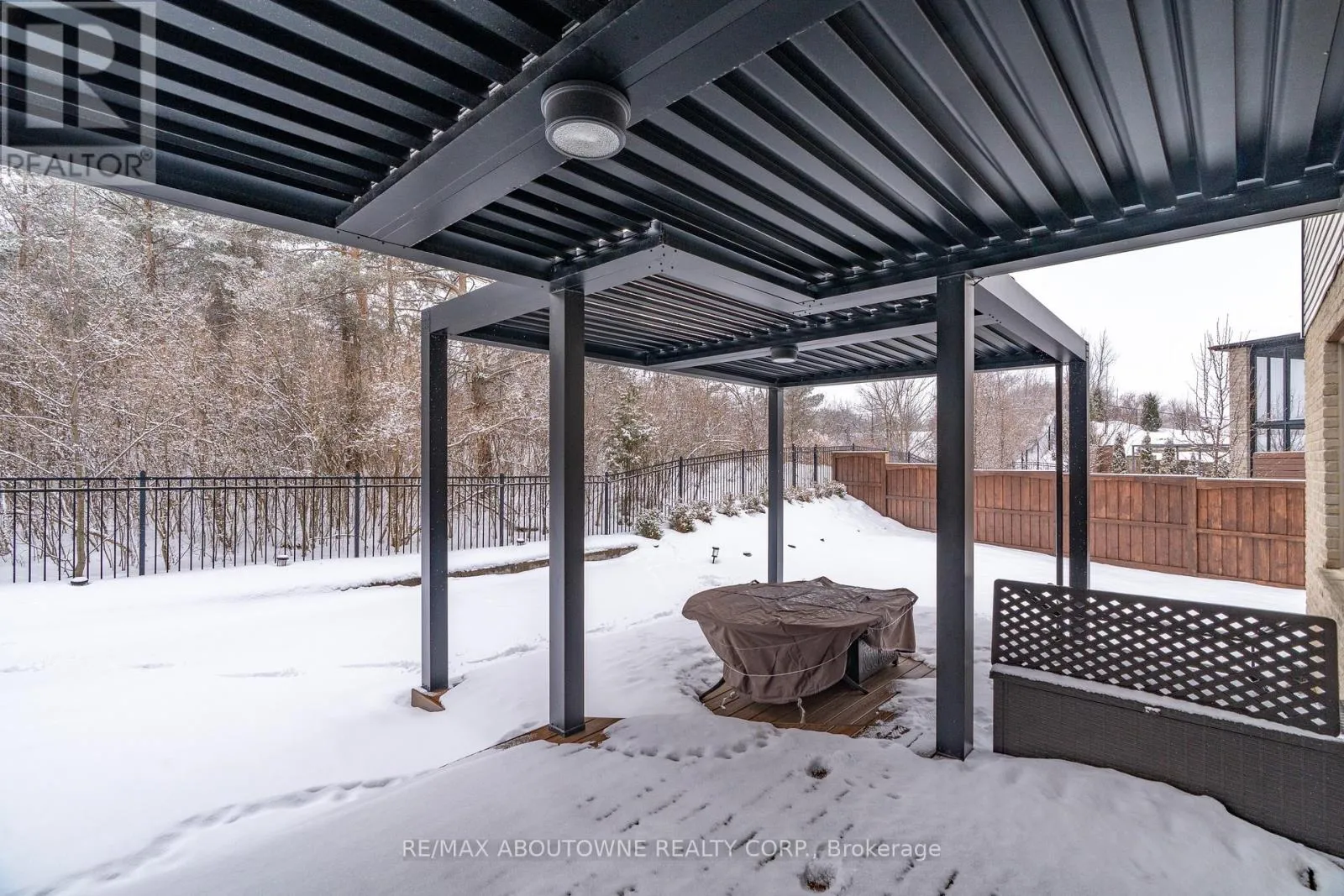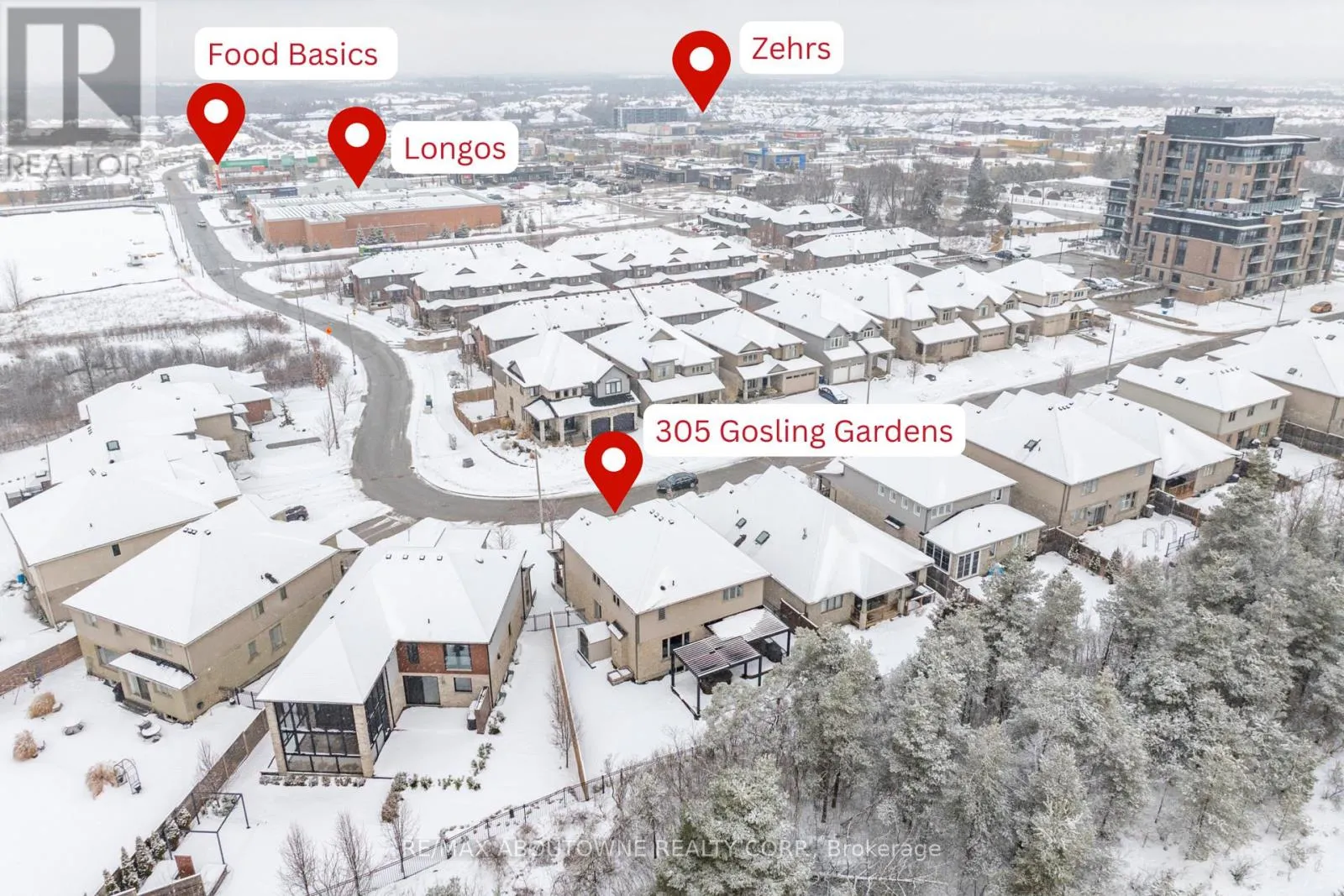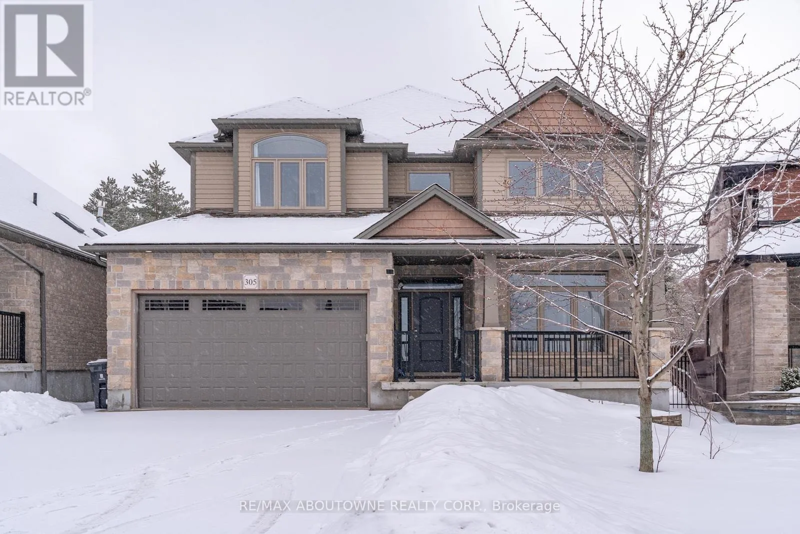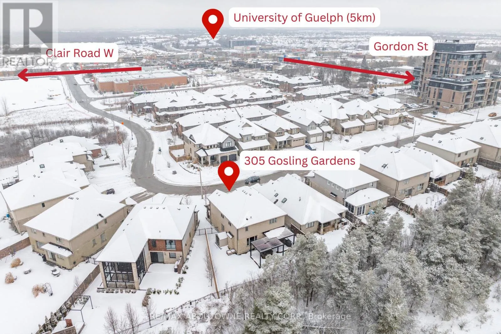 Cross Streets: Gosling Gardens & Gordon St. ** Directions: As per google map. Welcome to 305 Gosling Gardens, a beautifully crafted home offering over 2,600 sq ft of living space, built by the reputable Thomasfield Homes. This residence showcases timeless design, thoughtful upgrades, and meticulous care throughout. Curb appeal is immediately evident with a double-car garage, a concrete-finished driveway accommodating up to four vehicles, a wide front porch, and a beautifully landscaped front garden.Step inside to a striking open-to-above foyer that fills the home with natural light and creates an impressive sense of space. The main level features a warm and inviting family room with a built-in fireplace. The kitchen is both elegant and highly functional, featuring a cooktop stove, premium Bosch appliances, and a large centre island. The bright breakfast area overlooks the backyard, making it ideal for family meals and entertaining. A formal dining room, living room, laundry room, and powder room complete this well-designed main floor. Upstairs, a rare open-to-below home office overlooks the foyer, offering a bright and inspiring work-from-home space. The primary bedroom retreat boasts a spacious walk-in closet and a well-appointed ensuite with double sinks. Two additional generously sized bedrooms share a Jack-and-Jill bathroom, creating an ideal layout for families. Step outside to enjoy a rare pie-shaped lot fully fenced yard, highlighted by double decks with a professionally built, remote-controlled motorized gazebo, nearly $4K investment and offering adjustable shade for comfortable, all-season outdoor enjoyment. Ideally located in Guelph's sought-after south end, this home is close to everyday amenities and future growth, including the upcoming South End Community Centre and Bishop Macdonell Catholic Secondary School, with quick access to Highway 401 for commuters. A true hidden gem combining quality construction, elegant design, and an exceptional location-305 Gosling Gardens is a home you'll be proud to call your own. (id:27476)