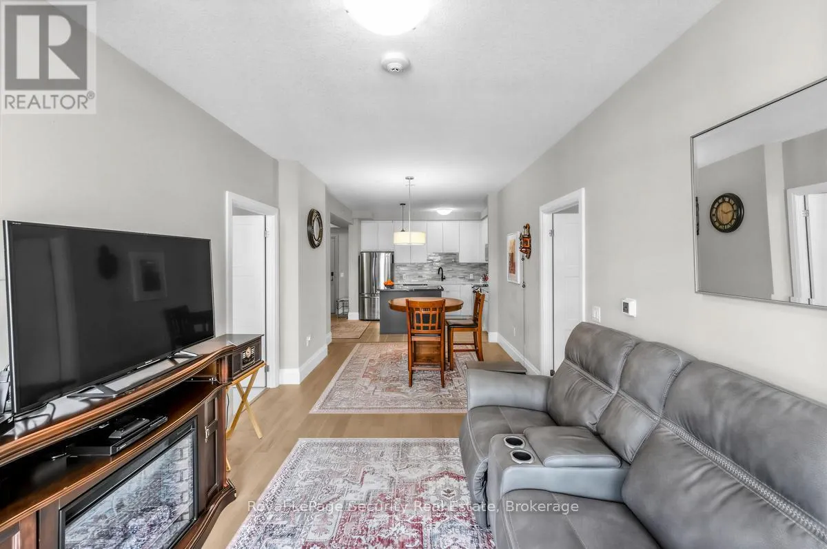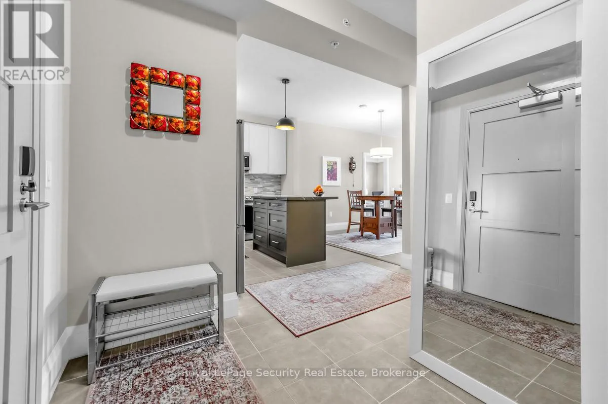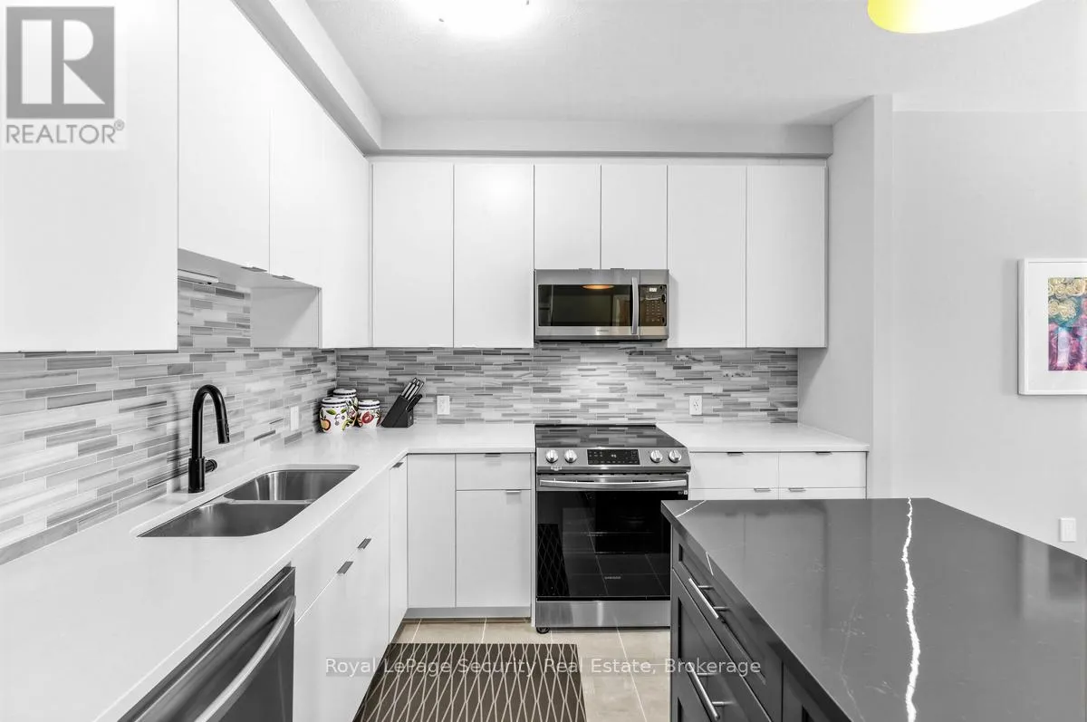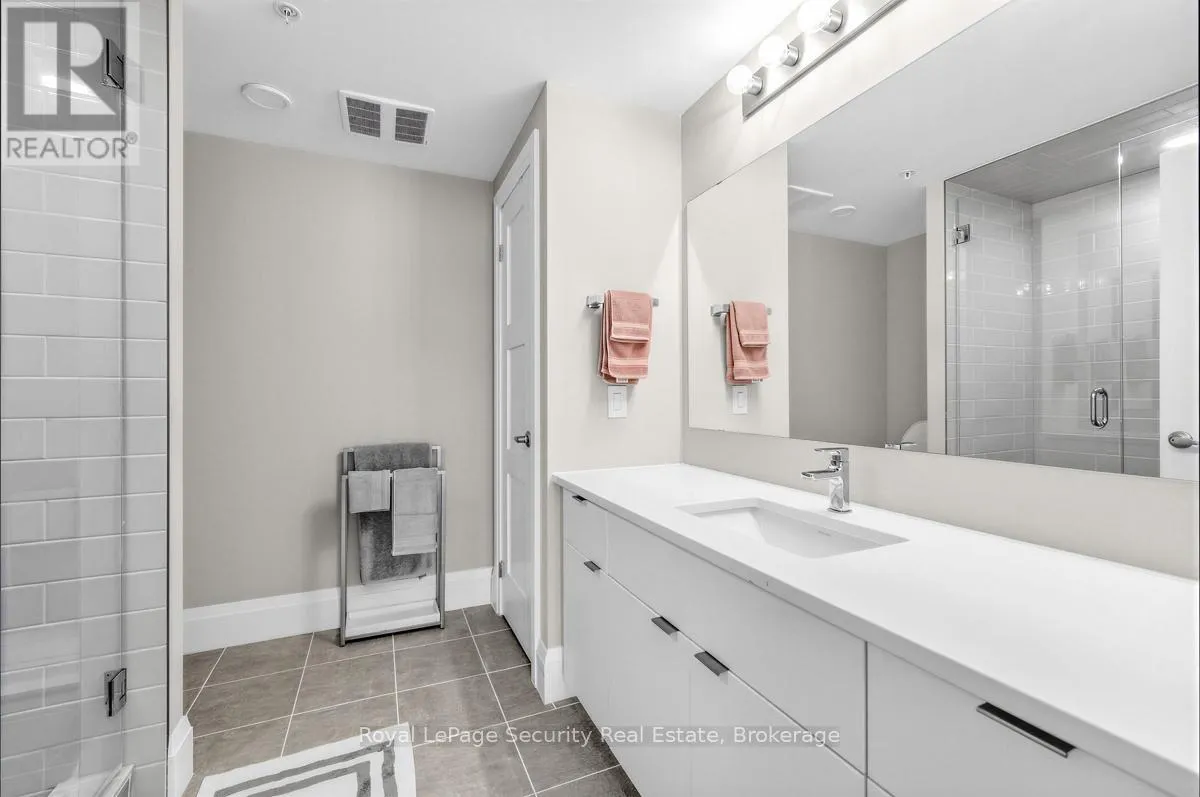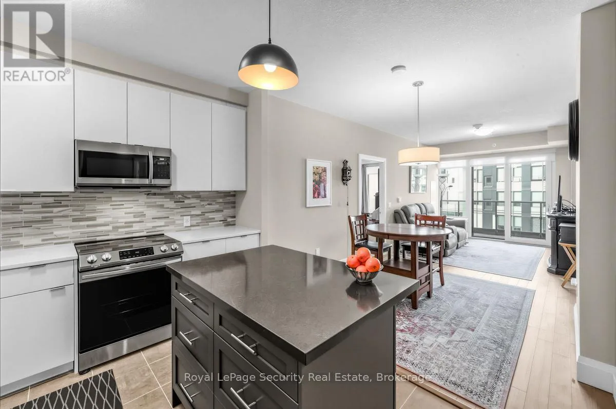 Wellington St.-Neeve St.-Cross St.-Arthur St. Welcome to luxury living in the heart of downtown Guelph at 73 Arthur Street. Perched on the 8th floor, this stunning 2-bedroom, 2-washroom suite is part of the building's exclusive Pyramid Collection, offering elevated design and premium upgrades throughout. Featuring upgraded flooring, high-end finishes, and upgraded appliances, this sophisticated residence blends style and comfort seamlessly. Extra ceiling height enhances the sense of space and fills the suite with natural light, creating a bright and airy atmosphere. The beautifully designed kitchen is anchored by a striking marble island perfect for entertaining, casual dining, or morning coffee. Step outside to your full-width private balcony and take in picturesque views of the Speed River and the city skyline an ideal setting to unwind or host guests. Copper Club offers an impressive selection of premium amenities including a guest suite, fully equipped fitness center, library/games room, speakeasy lounge, multi-purpose room with chef's kitchen and dining area, pet wash stations, and secure bike storage. Enjoy summer evenings outdoors with two shared firepits and five gas BBQs, perfect for entertaining and relaxing with friends and neighbors. The underground parking spot is conveniently located near the elevator door. Walking distance to great shopping, restaurants and public transportation. (id:27476)