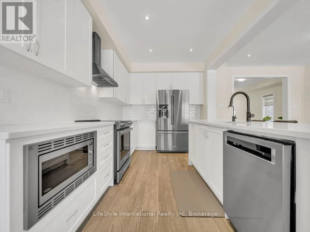 Victoria Rd S to Decorso Dr to Hutchison Rd Welcome to this exceptional one-year-old luxury residence offering 4 bedrooms, 4 bathrooms, and a double car garage, perfectly situated in Guelph's prestigious south end. Thoughtfully designed with premium upgrades throughout, the main level showcases elegant hardwood flooring, soaring 9-foot ceilings, and expansive windows that flood the space with natural light.The chef-inspired kitchen is a true centrepiece, featuring a striking waterfall quartz island, upgraded cabinetry, and stainless steel appliances-ideal for both everyday living and entertaining.The upper level is highlighted by a grand primary retreat with a spa-like 5-piece ensuite, complete with a soaker tub, double vanity, and a separate glass-enclosed shower. Three additional generously sized bedrooms, an upgraded 4-piece bathroom, and convenient second-floor laundry complete this level.The fully finished basement with a separate entrance adds exceptional versatility and future potential. This impeccably maintained, move-in-ready home offers refined finishes, modern comfort, and outstanding value in a highly sought-after location. (id:27476)