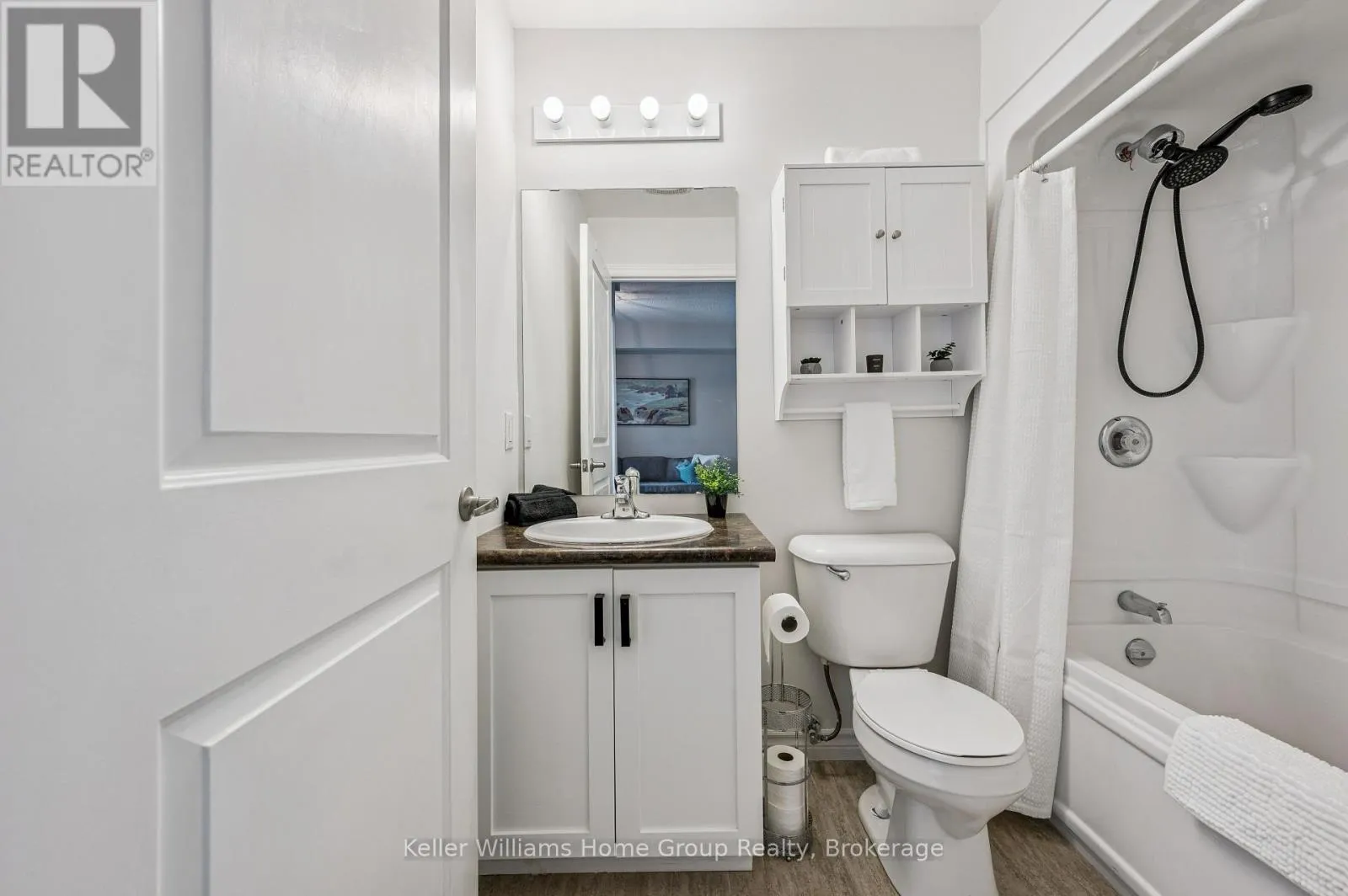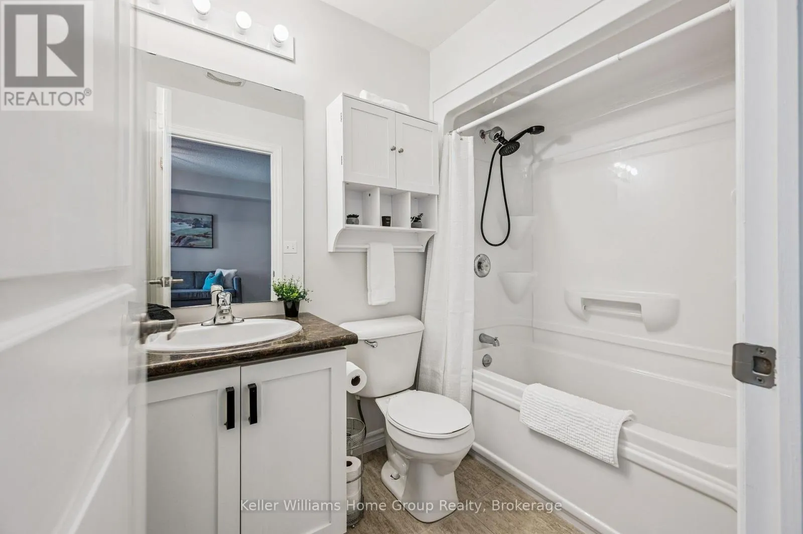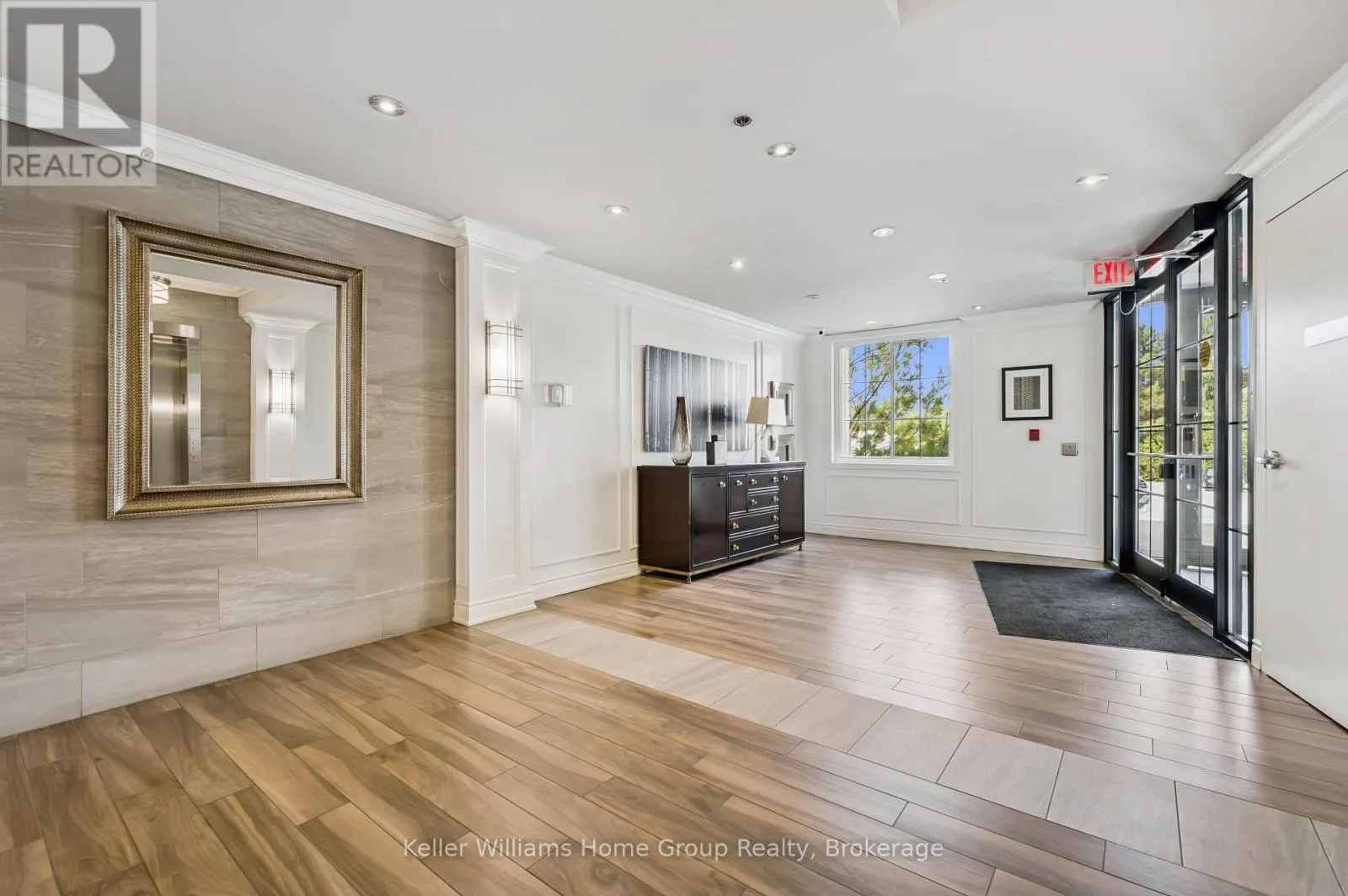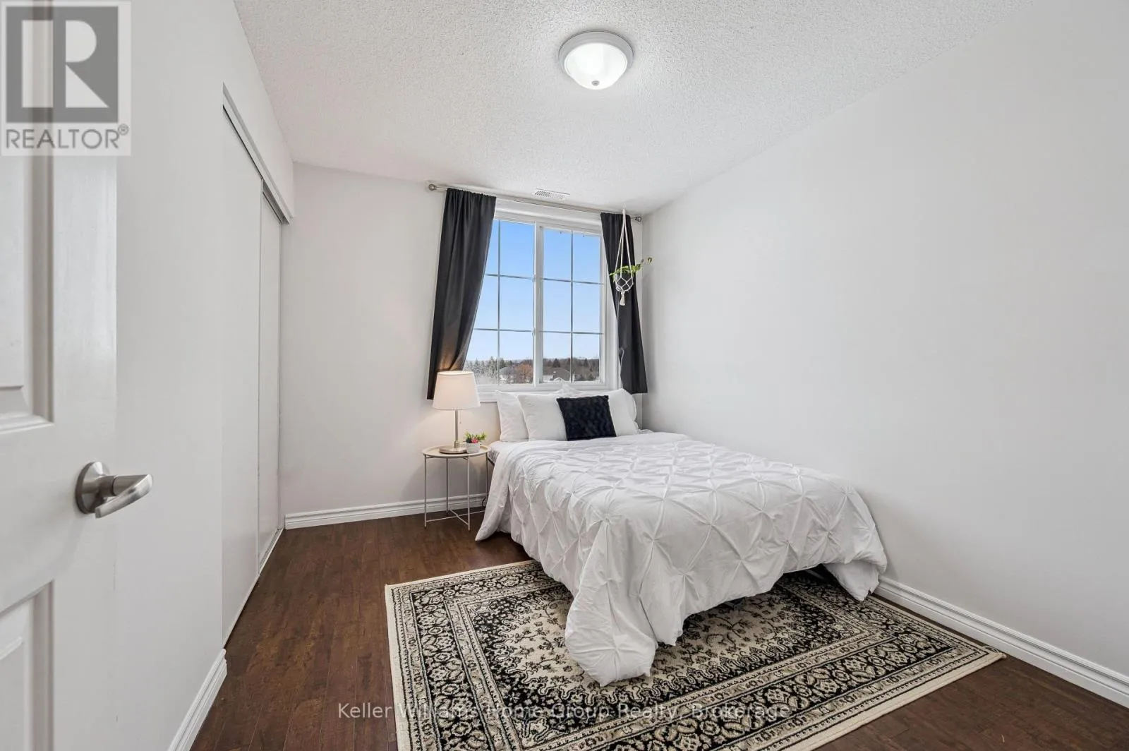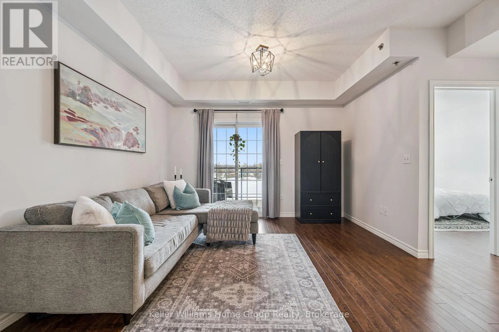 Arkell & Gordon This beautifully maintained 1 bedroom + den condo offers stylish, low-maintenance living in one of Guelph's most desirable south-end communities. Surrounded by parks, walking trails, shopping, restaurants, transit, and easy highway access, this location truly has it all!! Step inside to a beautiful bright, open-concept living space featuring hardwood flooring and soaring 9-foot ceilings that create an airy and inviting feel. The spacious kitchen is perfect for everyday living and entertaining alike, complete with stainless steel appliances, rich cabinetry, ample counter space, and a breakfast bar overlooking the living area. The living room is filled with natural light and provides direct access to your private fourth-floor balcony overlooking Pine Ridge Park, offering beautiful open views and the perfect spot to start or end your day. The primary bedroom features a large window with ample closet space, while the versatile den provides the ideal setup for a home office, reading nook, or guest space. A well-appointed 4-piece bathroom, in-suite laundry, and thoughtful layout complete the interior. This beautiful condo offers comfort, convenience, and a fantastic south-end lifestyle!! (id:27476)