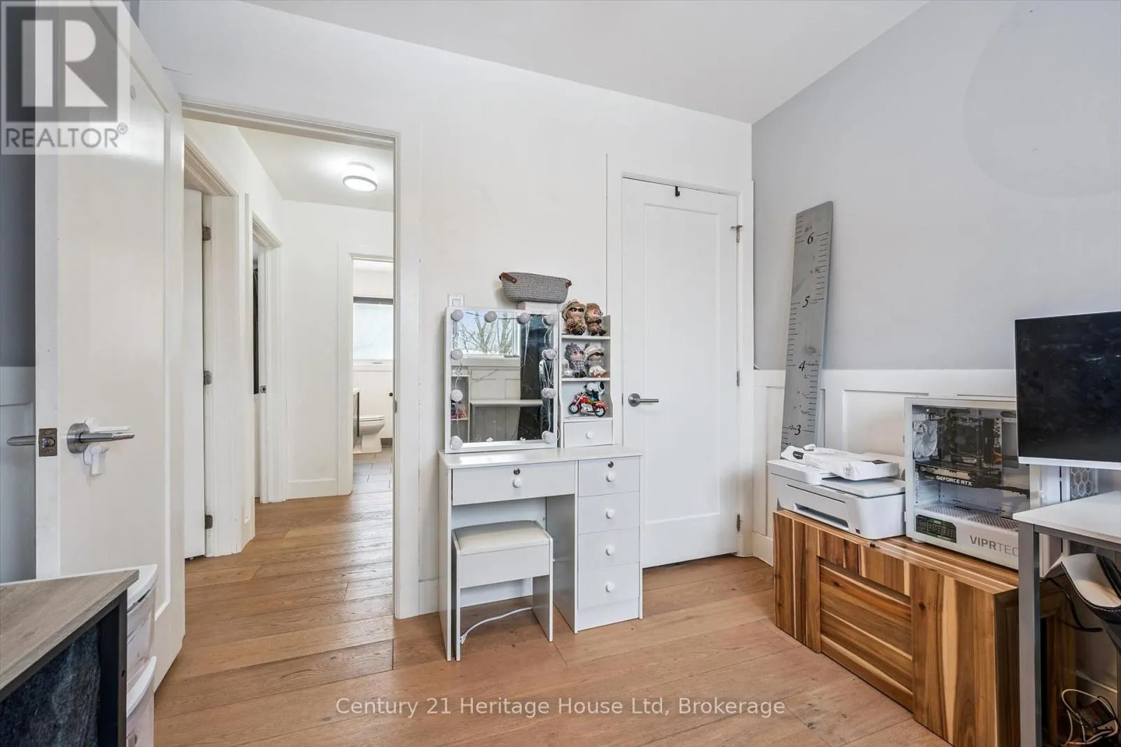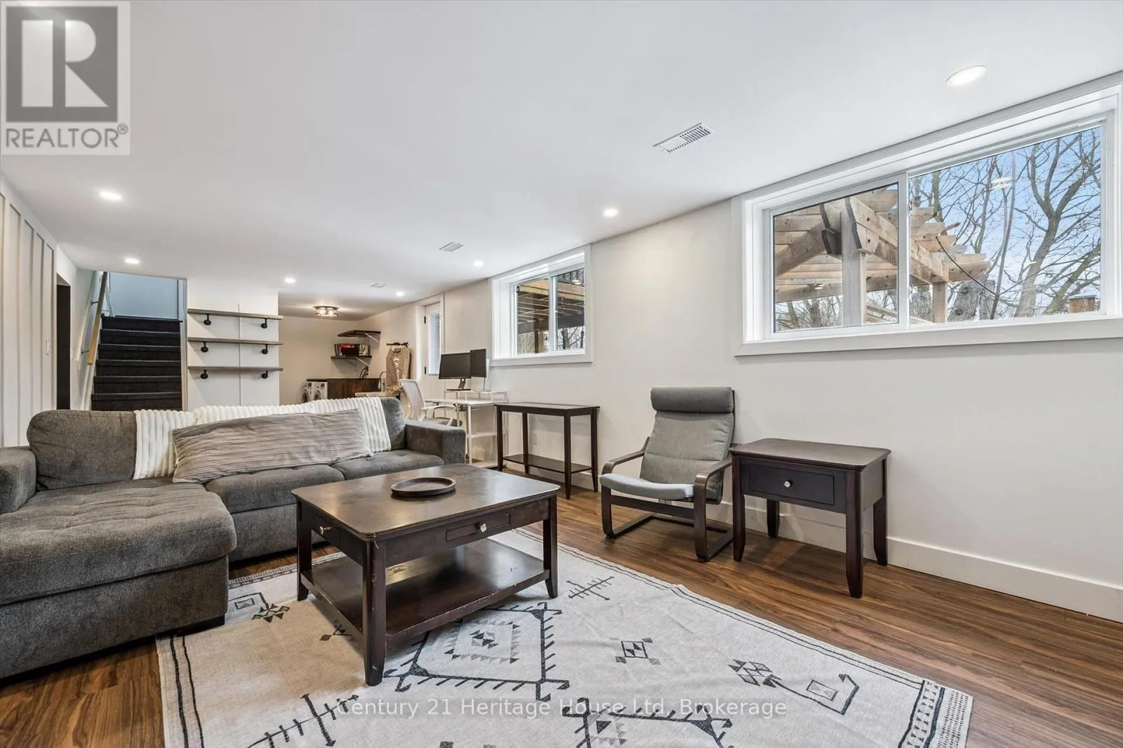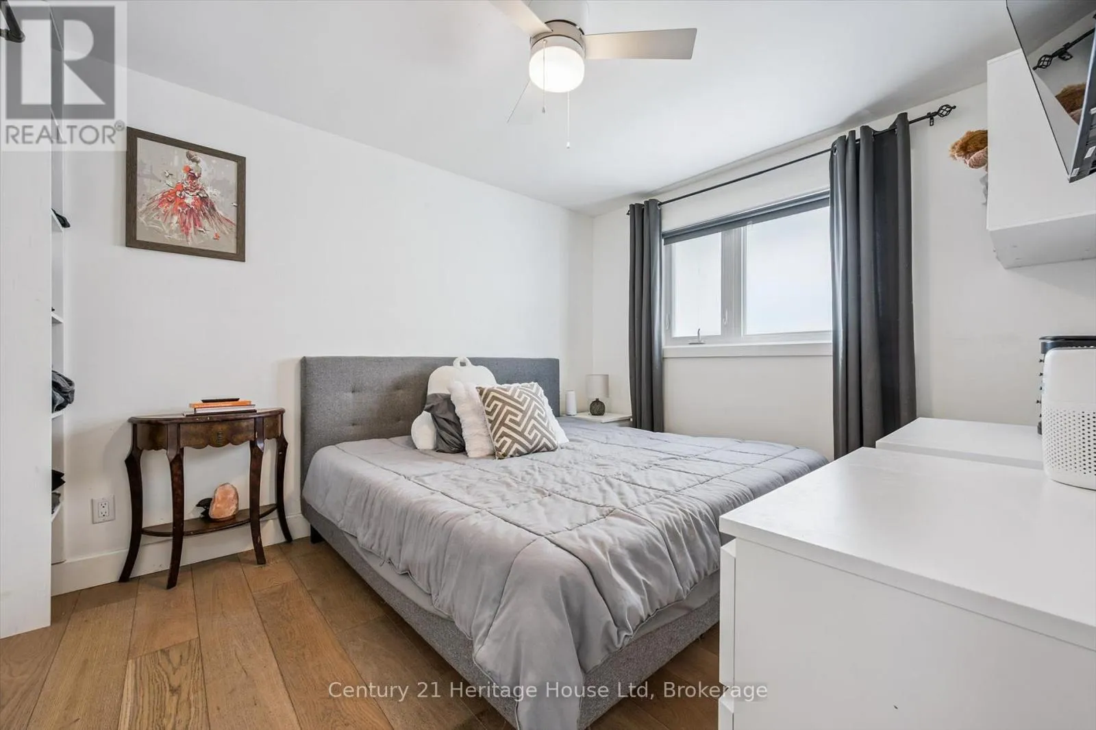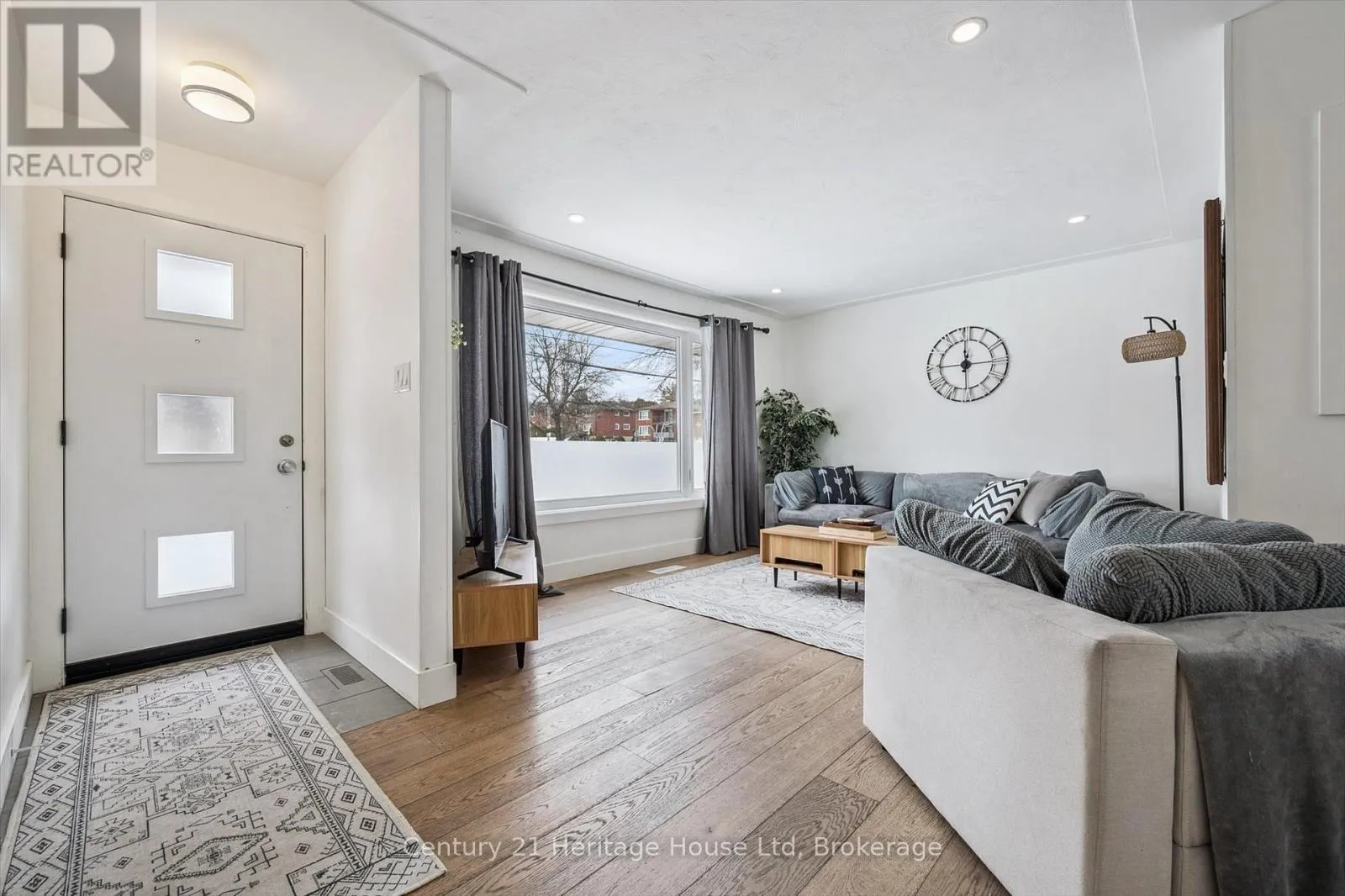 Victoria road north between Speedvale and Woodlawn We are pleased to welcome you to this beautifully renovated walkout bungalow, set on a generous 50 x 130 ft lot with standout curb appeal and parking for 4+ vehicles on the concrete driveway. This home offers the perfect blend of style, function, and outdoor living.The main floor features a modern eat-in kitchen with Corian countertops, Bosch induction cooktop, stainless steel range hood, built-in oven, dishwasher, and French door refrigerator. A raised deck off the kitchen provides the ideal space for morning coffee or evening meals overlooking the massive backyard. The adjoining dining area is bright and welcoming, with large windows at both the front and rear of the home allowing natural light to flow throughout the space.Three good-sized bedrooms and an updated 4-piece bathroom complete the main level.The fully finished walkout basement adds exceptional versatility, offering a spacious family room with feature wall and electric fireplace (2022), a generous fourth bedroom or home office, a second full 4-piece bathroom, and laundry area. Large windows and direct backyard access keep the lower level bright and functional.Step outside to a thoughtfully designed backyard retreat featuring a flagstone patio, patio stone pad (2022), hot tub and pergola (2022), shed (2022), and a substantial yard with plenty of room to entertain, garden, or enjoy year-round activities. Major renovations were completed approximately 7 years ago (2018), including kitchen, flooring, appliances, bathrooms, exterior doors, energy-efficient windows, and deck. The exterior brick was painted in 2022. Furnace replaced in 2025. Located just steps from a direct city bus route with easy access to shopping, amenities, University of Guelph, and Downtown Guelph. Situated within a highly regarded school district offering Public, French Immersion, and Catholic elementary and secondary options. A move-in-ready home offering modern updates, flexible living space, and an exceptional backyard setting. (id:27476)