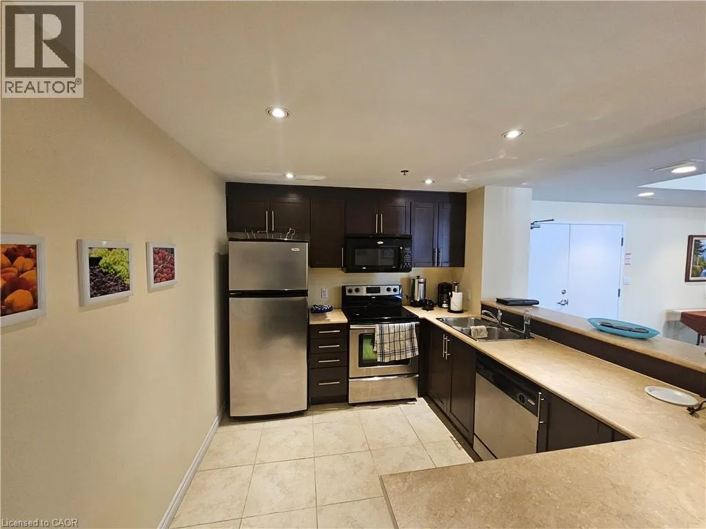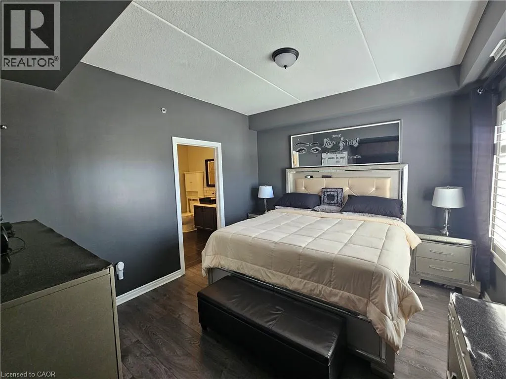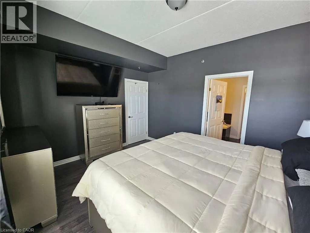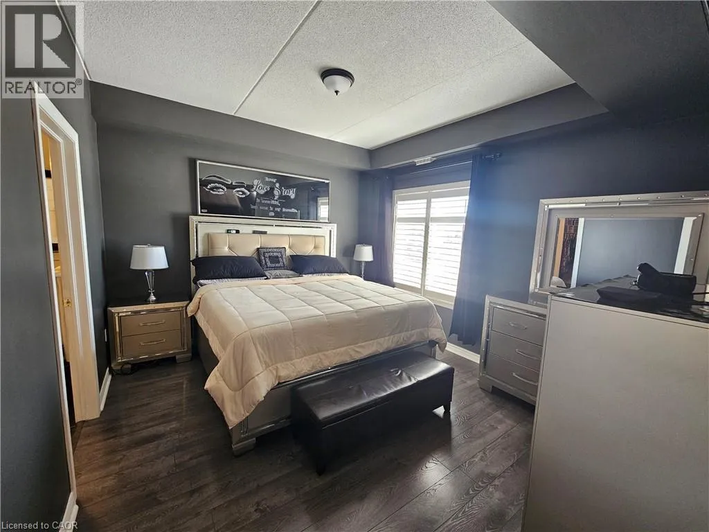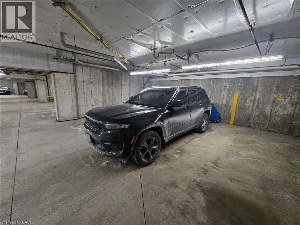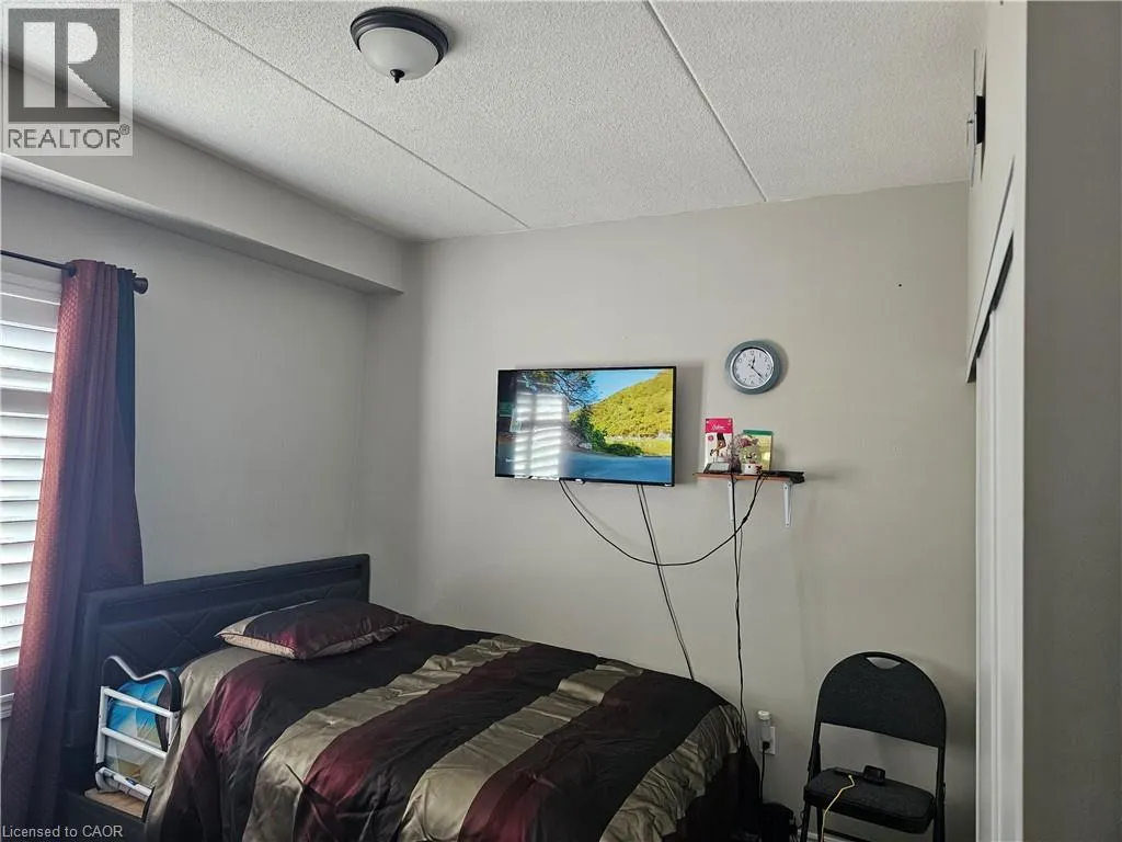 Grange road and Watson pkwy One of the best units in this pet-friendly building. Ground floor corner condo with 9 ft ceilings and extra windows for abundant natural light. Renovated unit featuring updated, luxurious flooring (This is a zero-carpet unit, for those who dislike dust), quartz kitchen counters, upgraded cabinets, stainless steel appliances, stainless steel exhaust hood, and bulkhead kitchen lighting. Freshly painted in many areas with BRAND NEW California shutters (Approx $6,000) throughout. Spacious living/dining area with custom entertainment feature wall, built-in fireplace and TV mount. Primary ensuite includes recently updated $2,000 shower tower system. Both bathrooms upgraded with new sinks, faucets and backsplashes. New heating system and central A/C. Open balcony, underground parking and storage locker. Amenities include a Party Room. 1 underground parking spot, and ample parking above ground for a second vehicle. For the nature lovers and pet walkers, there are multiple trails within the local area! (id:27476)