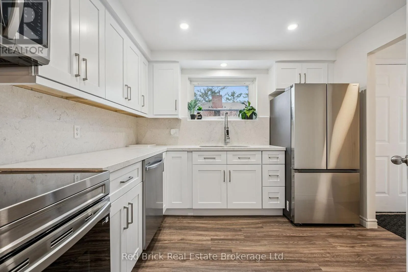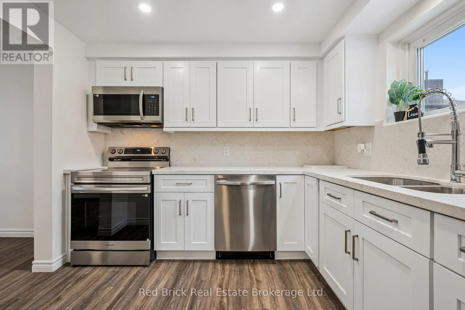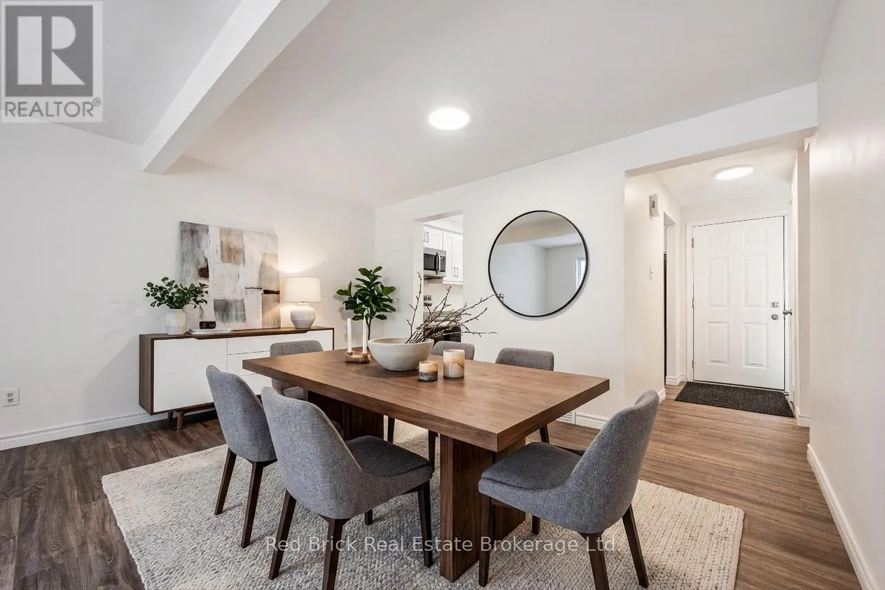Cross Streets: Westwood. ** Directions: Go in the entrance off Willow Rd. Welcome to 539 Willow Road unit 61, a newly updated condo townhouse in one of Guelph's most established and convenient neighbourhoods. This home offers 3 bedrooms, 1.5 bathrooms, and a soundproof finished basement rec/play room, providing functional space for families, first time buyers, or downsizers seeking low maintenance living. The main floor features a bright, open living and dining area that leads into a fully renovated kitchen with new cabinetry and stainless steel appliances. Brand new flooring has been installed throughout the main, upper levels, and basement the home has been freshly painted in a neutral palette, creating a clean, move in ready feel. Recent upgrades include a brand new furnace installed in 2026 with transferable warranty. Upstairs, you will find three generously sized bedrooms with ample closet space and an updated main bathroom. Located beside a park with direct access to green space, and close to schools, shopping, and everyday amenities, this home offers comfort, convenience, and exceptional value. (id:27476)