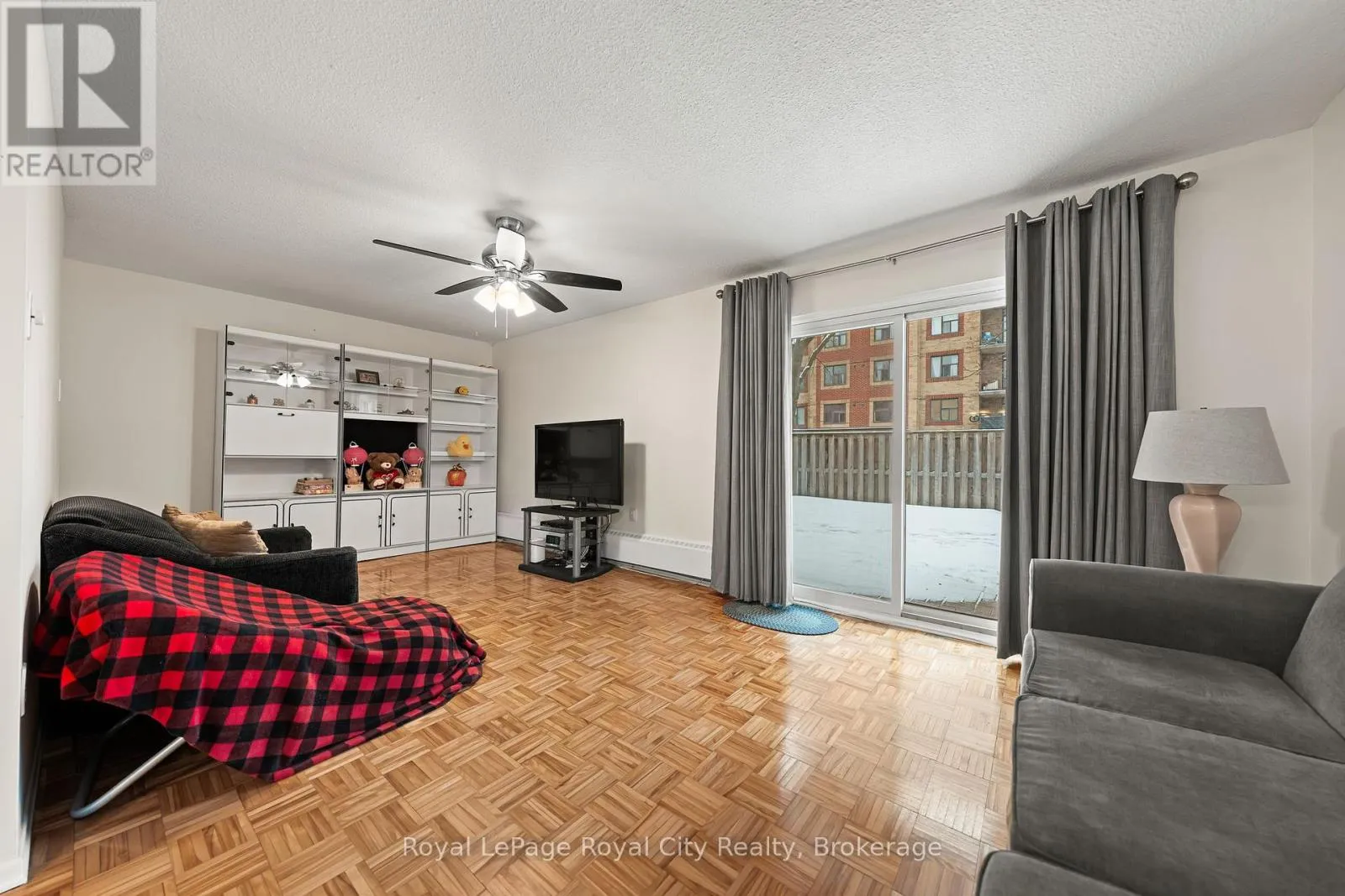 Cross Streets: Silvercreek. ** Directions: Silvercreek to Willow. Welcome to Willow Hill Condominiums, where comfort, spaciousness and convenience come together. This well-maintained two bedroom, one bathroom unit offers a generous layout with plenty of room to relax and spread out. Ideally located close to grocery stores, shopping, restaurants, schools, the Hanlon Expressway, Highway 7 - and situated directly on the public transit route - you may not even need a car. That said, the exclusive use of a covered parking space, conveniently located near the entrance, is included. Step outside through sliding doors to a private backyard patio, perfect for pet owners, BBQs or for simply enjoying some fresh air. Even better, the all-inclusive monthly fee covers heat, hydro, and water, with only internet and cable TV as additional expenses, making budgeting simple and predictable.Residents also enjoy access to a party room and exclusive use of a large personal storage locker. This is a fantastic opportunity for comfortable, low-maintenance living in a highly accessible location. Rent includes utilities but not internet or cable. (id:27476)