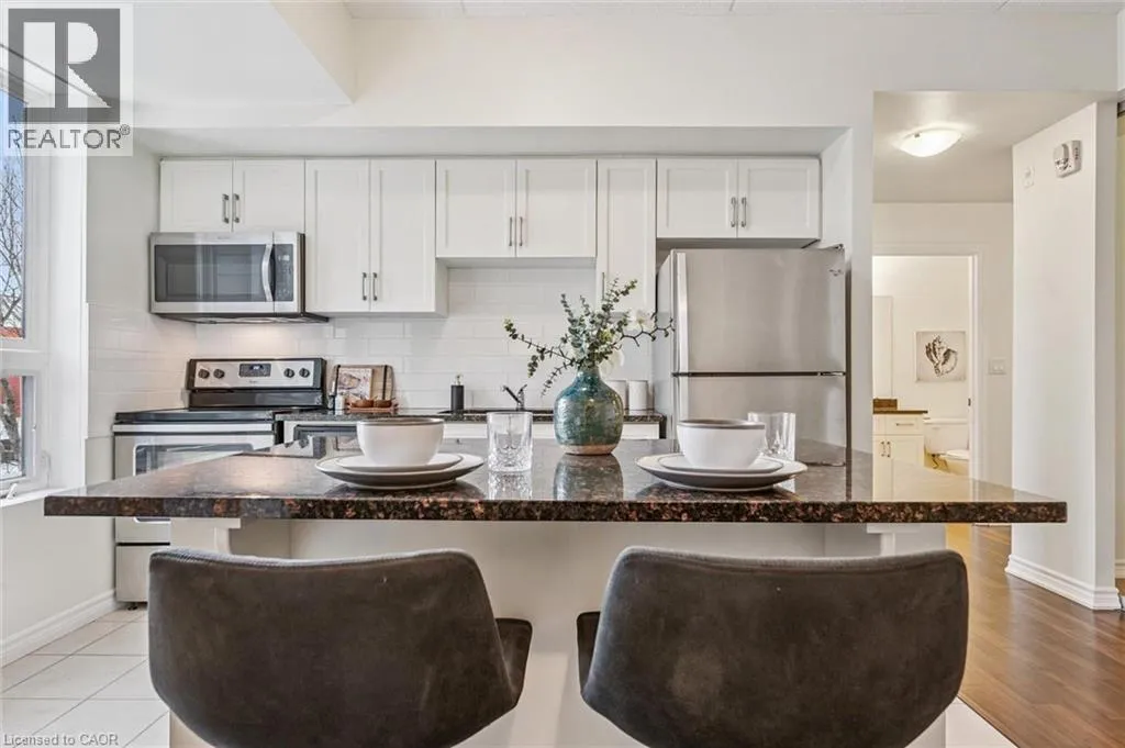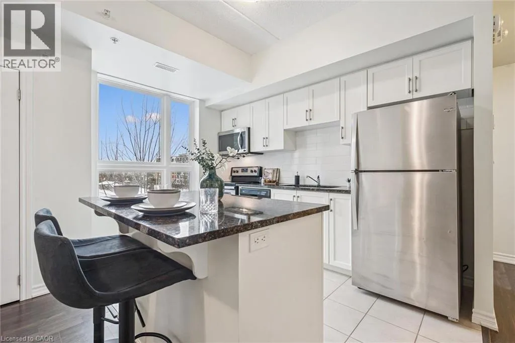 Edinburgh Rd S 210â1280 Gordon St is a modern 3-bdrm condo W/beautiful treed views located in a newer professionally managed building in Guelphâs highly sought-after south end! Steps from bus stop W/direct access to UofG & downtown, this property is exceptionally well-positioned for investors & parents buying for university-bound students. Instead of paying rent this is an opportunity to build equity in a tangible asset while benefiting from consistent student & professional rental demand. With current market conditions offering more favourable pricing, this unit presents a timely chance to secure a well-located investment W/long-term upside. Inside the open-concept living space seamlessly connects the living, dining & kitchen areas creating a welcoming & versatile environment suited to everyday living & entertaining. 9ft ceilings enhance the sense of space while large windows & sliding glass door flood space W/natural light & frame a peaceful treed backdrop that adds privacy & sense of calm rarely found in condo living. Modern kitchen anchors space W/centre island ideal for casual meals, studying & hosting. White cabinetry, stone counters, S/S appliances & backsplash offer timeless low-maint. finish that appeals to both owners & tenants. Step outside to private balcony that extends living space outdoors & provides quiet place to relax & enjoy overlooking mature trees. 3 bdrms are each finished in neutral palette W/new wide-plank floors creating move-in-ready spaces. Large windows in primary bdrm bring in natural light & tranquil views. Layout is well-suited for maximizing rental income or for young professionals seeking flexibility W/guest room & dedicated office. Bathroom features modern vanity offering ample storage, stone counters & tub/shower. Unit includes 1 parking space W/an assumable mthly rental & locker for storage. Located mins from all amenities Pergola Commons & Stone Rd Mall have to offer: restaurants, groceries, LCBO & Beer Store. Easy access to 401 for commuters! (id:27476)