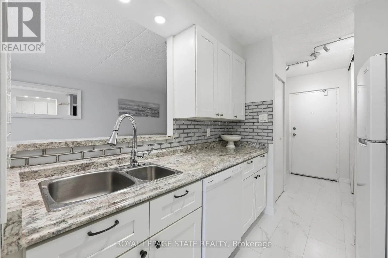 Silvercreek and Paisley Road Welcome to 75 Silvercreek Parkway North, Unit 308, located in Guelph's West End.This bright, spacious, and updated corner unit is move-in ready. The two-bedroom, one-bathroom home features a fresh neutral paint palette and carpet-free living with luxurious vinyl plank and tile flooring throughout. The large living room leads to a private covered balcony with sliding doors, and large windows in every room provide ample natural light. The kitchen offers a sleek, contemporary design with pot lights, abundant cabinetry, a beautiful tile backsplash, and recently updated appliances (2024/2025). The kitchen flows seamlessly into the dining room, perfect for family dinners and entertaining.The primary bedroom includes a walk-in closet, and this unit offers plenty of storage throughout. For added convenience, the unit is located near the elevator and includes a dedicated parking spot close to the building entrance, along with ample visitor parking.Ideally situated near schools, parks, restaurants, the Hanlon Parkway, and the University of Guelph, this property is an excellent opportunity for first-time buyers, young families, investors or those looking to downsize.This is one unit not to be missed! (id:27476)
