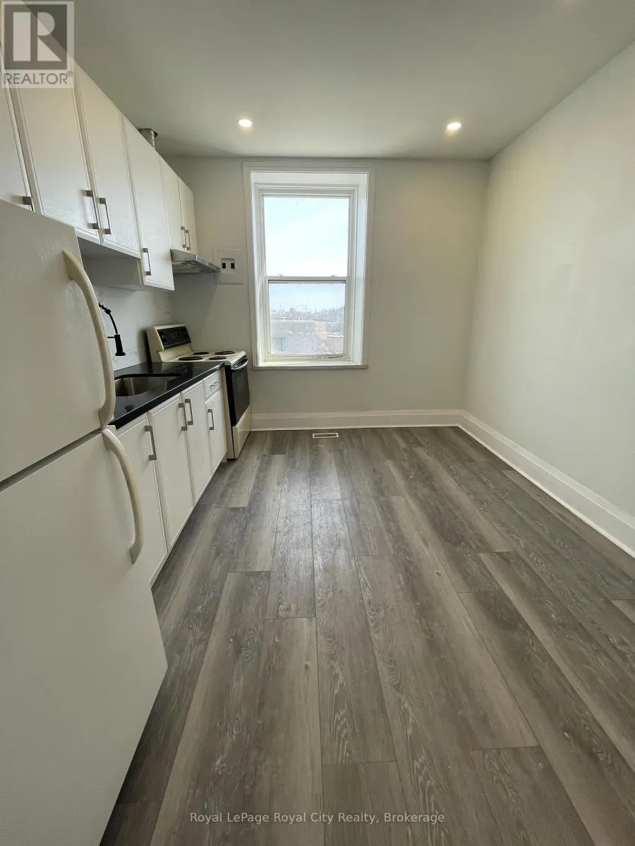 Gordon and Nottingham Apartment for rent on the corner of Nottingham and Gordon Street in Guelph. The 99 mainline bus route has a stop outside the building, so commuting to the University of Guelph (10 mins), or across the city is easy and convenient. One of four units, this recently renovated space has a fantastic layout, maximizing space, with natural light. There is an open living room, a separate kitchen which opens into the living room, and a well sized bed room and washroom. Laundry is located in the building, and shared in a common area space with the other three one bedroom units in the building. This rental is ideal for professionals, or mature students/couples as the building maintains a quiet and respectful environment for the Tenants. Utilities are separate at a fixed rate of $100 per month. (id:27476)