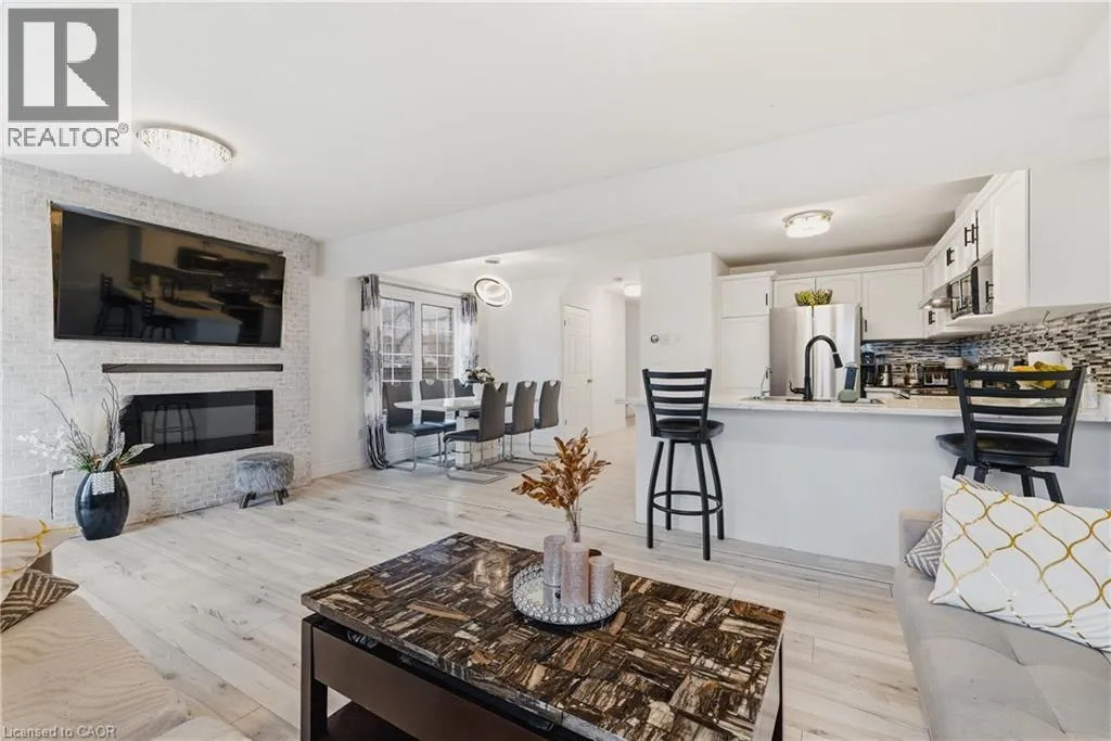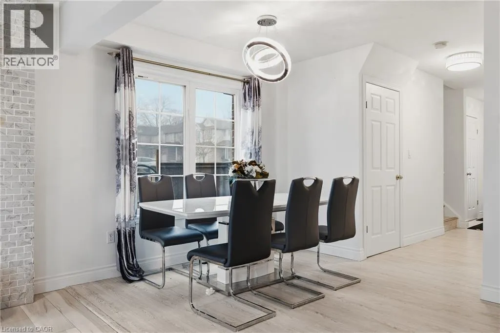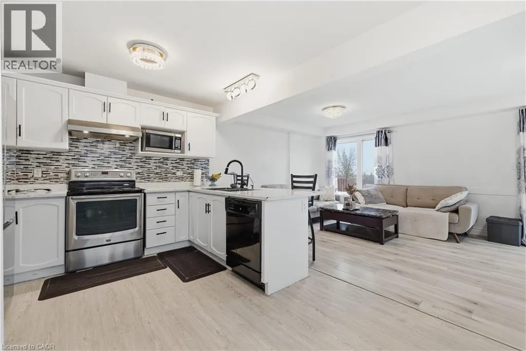 Kemp Crescent/Grange Rd Welcome to this luxurious freehold corner townhouse at 147 Kemp Crescent, Unit #9, Guelph, beautifully built by Claysam Homes and located in a quiet, family-friendly neighbourhood. Kemp Crescent is known for its peaceful residential setting with easy access to parks, schools, shopping, and everyday amenities, while still being just a short drive from Guelphâs vibrant downtown, restaurants, and entertainment options. This stunning end-unit home offers extra privacy and natural light, highlighted by a charming wrap-around covered porch and an open-concept main floor designed for comfortable living and entertaining. The bright living and dining space flows seamlessly into the modern open kitchen with breakfast bar, creating the perfect layout for gatherings with family and friends. Large windows and beautiful finishes throughout make the home feel warm, spacious, and inviting. The home features 3+1 bedrooms and 3.5 bathrooms, providing plenty of room for growing families or multi-generational living. The look-out basement with two large above-grade windows is filled with natural light and includes a separate entrance, offering excellent potential for an in-law suite or additional living space. Step outside to enjoy the beautiful backyard backing onto a green area, perfect for relaxing or entertaining. A 10x12 deck extends your living space outdoors, ideal for summer barbecues and gatherings. Additional highlights include freshly painted interiors, new furnace (2025), new refrigerator (2025), owned water softener, electric stove with gas line available, and an asphalt driveway. With its corner location, thoughtful layout, and desirable features, this home offers a rare opportunity to enjoy comfortable and flexible living in one of Guelphâs welcoming neighbourhoods. (id:27476)