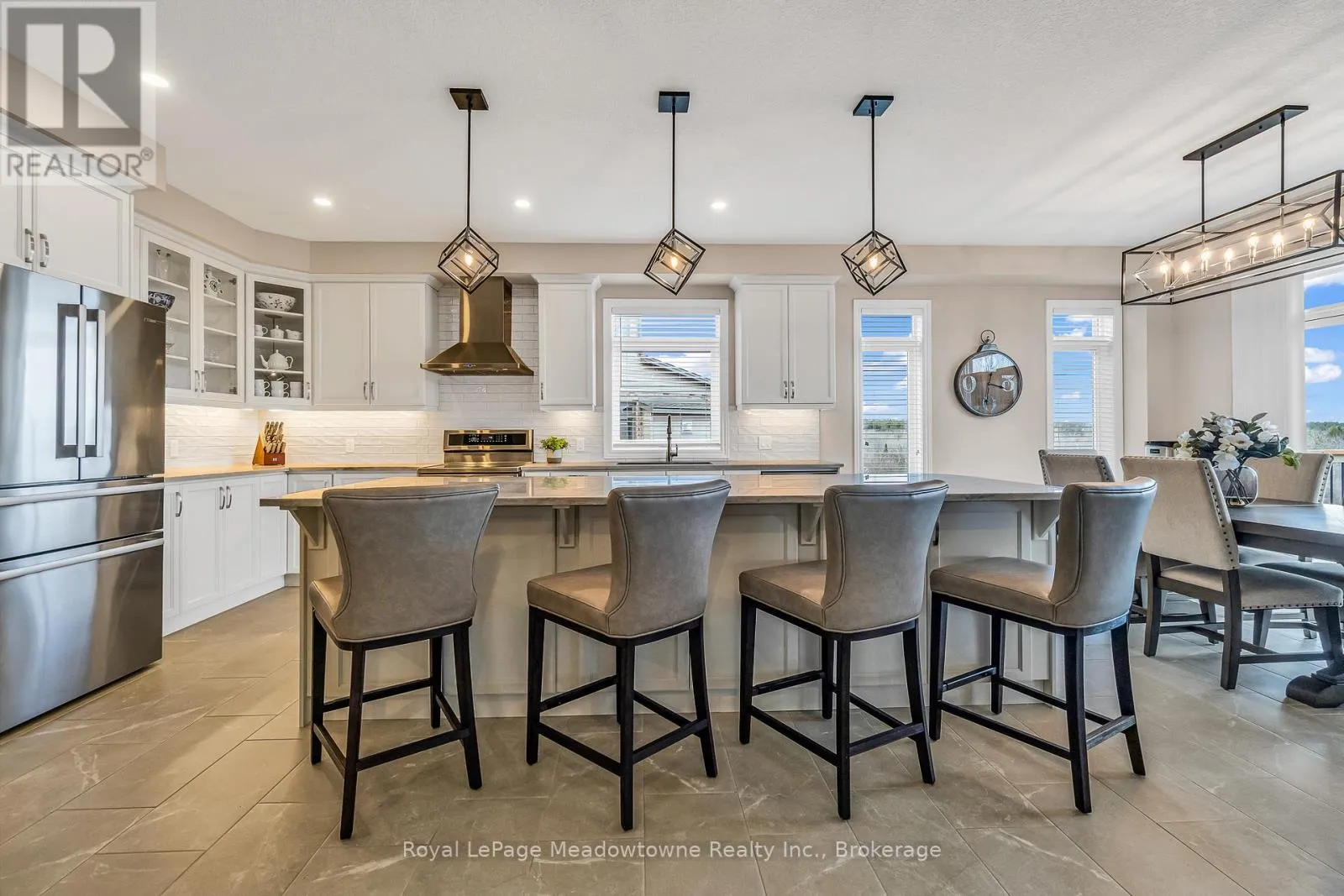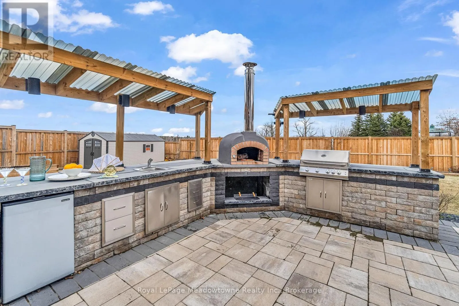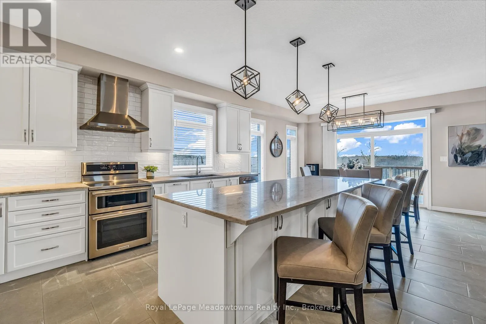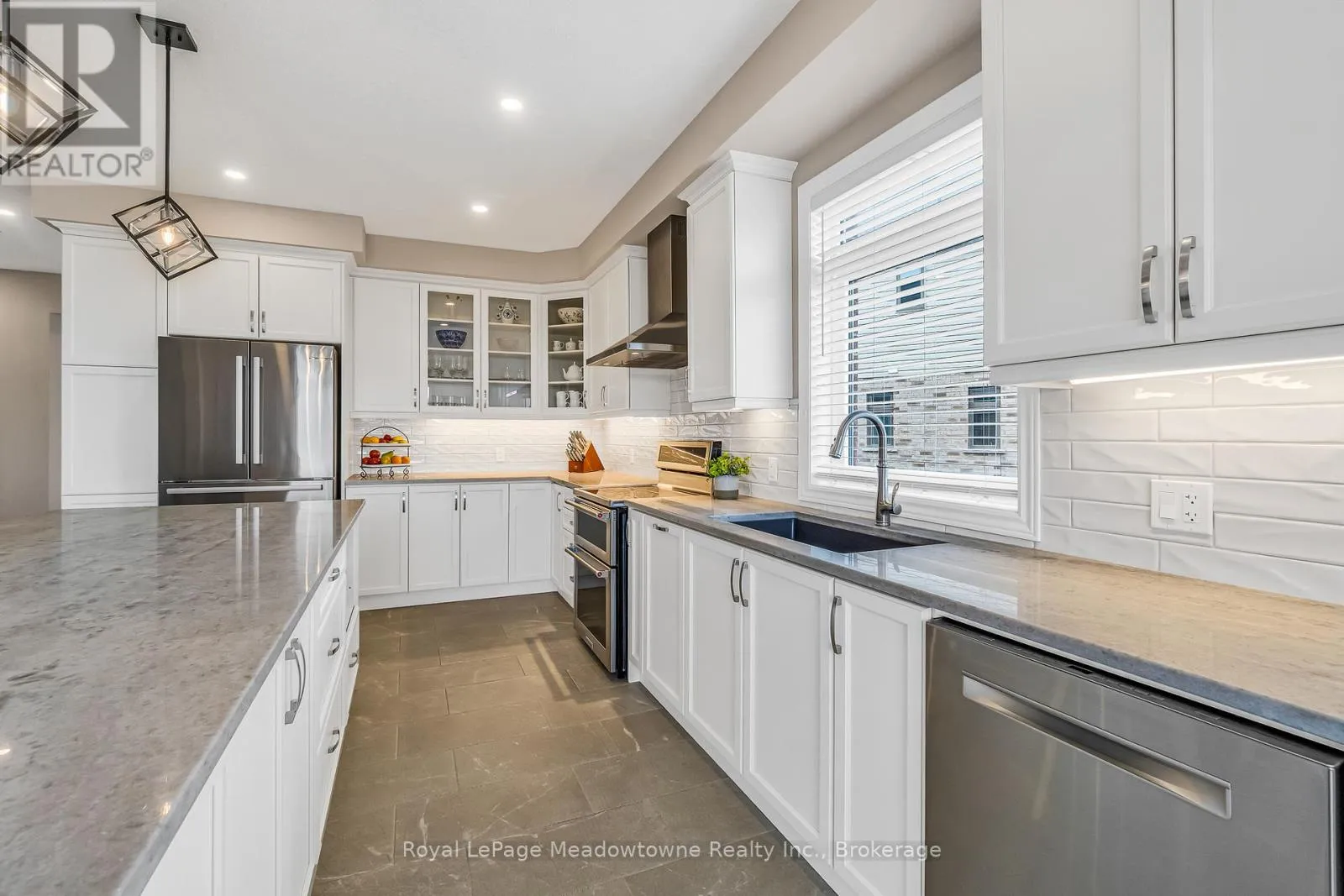 Victoria Rd N to Woodlawn Rd Perched proudly on a premier corner of Norma Crescent, this custom-built Reid's Home is a rare find, blending high-quality construction on an oversized pie-shaped lot that backs onto the lush greenspace & park. The home is designed for those who love to entertain. The main level boasts 9ft ceilings and a spacious 2500+ sq. ft. layout. The gourmet kitchen is a showstopper, featuring: Crisp white cabinetry & subway tile backsplash, premium Bosch S/S appliances & sleek granite counters, massive center island and breakfast bar that seamlessly flows into the family room, anchored by a cozy gas fireplace and views of the forest beyond. Retreat upstairs to a primary suite that feels like a high-end hotel. Enjoy large windows overlooking the trees, a walk-in closet with a laundry chute, and a spa-like ensuite featuring double sinks, a corner jet tub, and a walk-in glass rain shower. Three additional generously sized bedrooms provide plenty of space for family, guests, or a dedicated home office. The finished walk-out basement is the ultimate space. With 9ft ceilings, a full bath, and a separate entrance, it's perfect for a media room, gym, or guest suite. But the real magic happens outdoors. Step out from the dining room onto the 30x10 balcony for panoramic views, or head down to the extensive paver patio. This is no ordinary backyard- it's a culinary oasis featuring: a custom pizza oven and built-in grill station, prep area with sink, beverage fridge & ample storage, a fenced yard with a large powered storage shed. From the heated driveway (no more shoveling), to the quick access to hiking trails and the proximity to Guelph Lake, this home is a haven for nature lovers. Whether you're hosting a summer pizza party or enjoying a quiet morning stroll through the conservation trails, this property offers a level of convenience and sophistication that is hard to match. Don't settle for the ordinary. Come home to quality, nature, and the perfect space to gather. (id:27476)