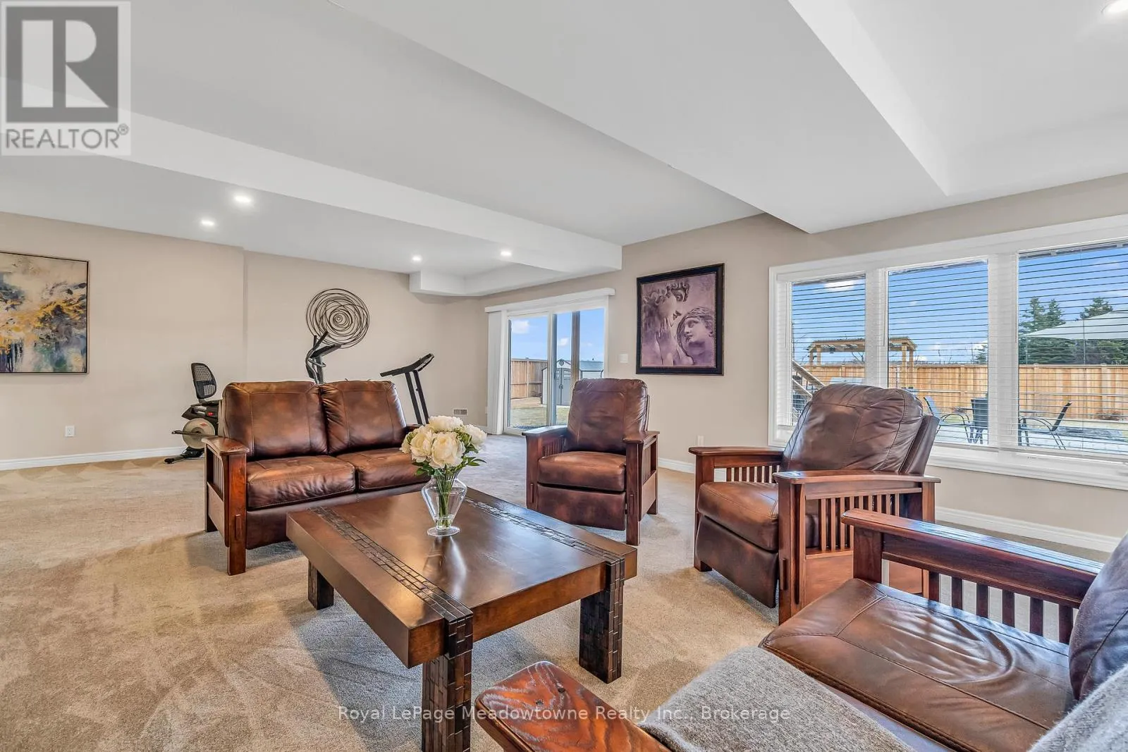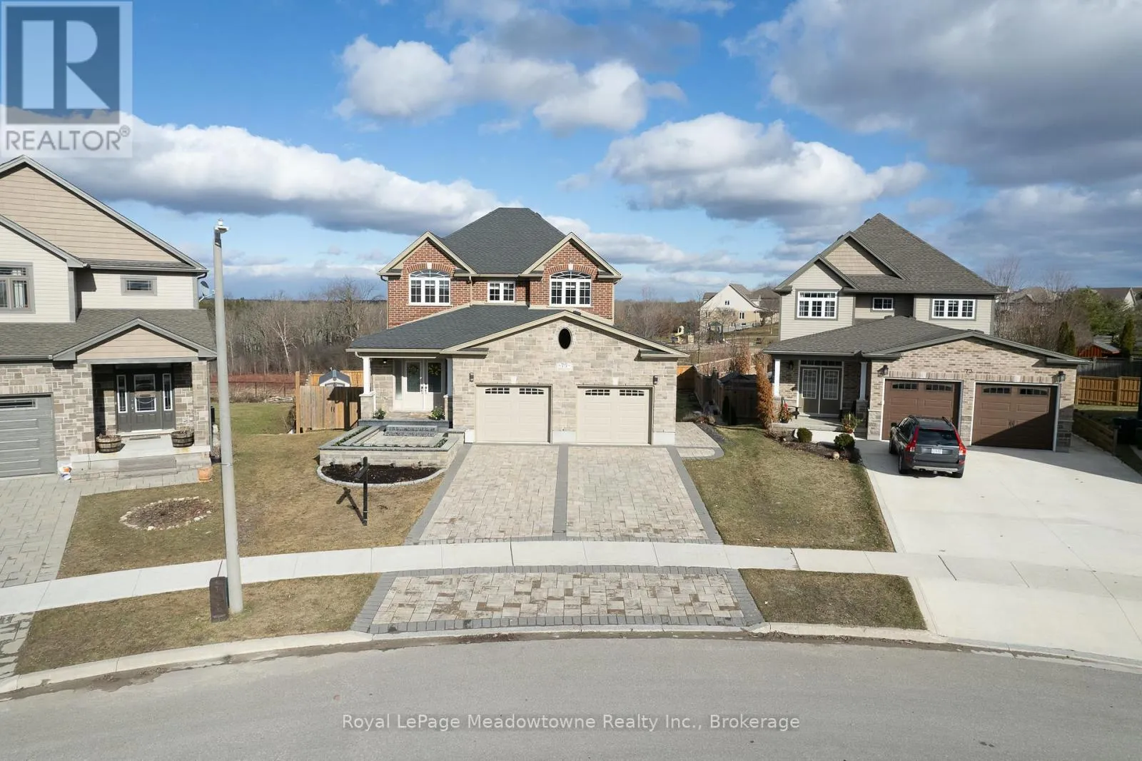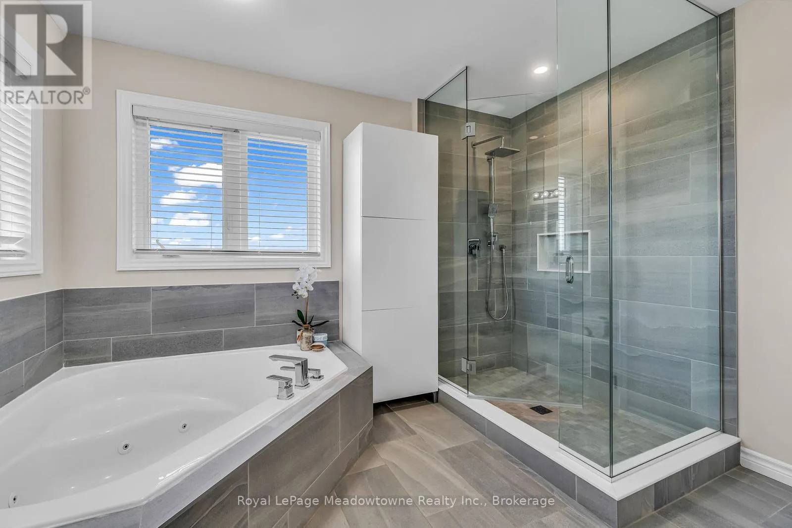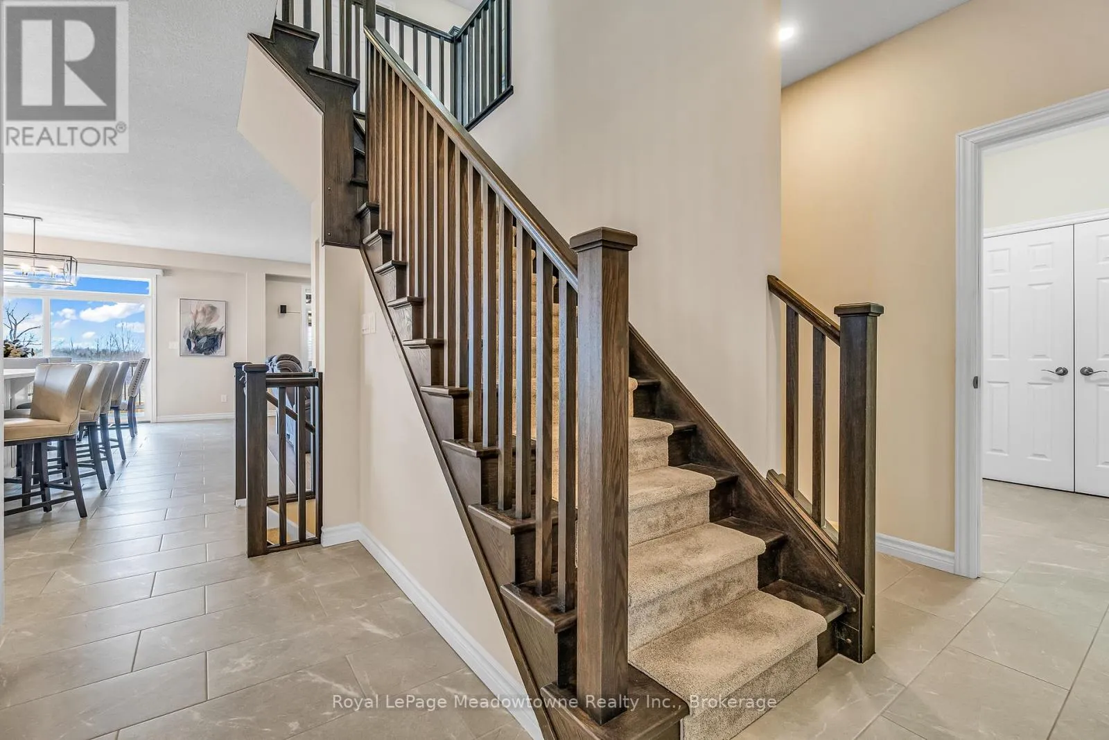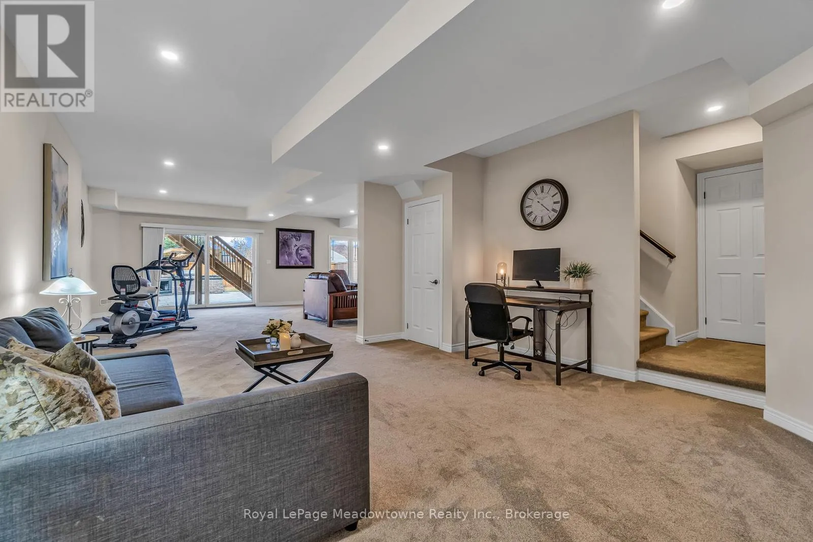 Victoria Rd N to Woodlawn Rd Perched proudly on a premier corner of Norma Crescent, this custom-built Reid's Home is a rare find, blending high-quality construction on an oversized pie-shaped lot that backs onto the lush greenspace & park. The home is designed for those who love to entertain. The main level boasts 9ft ceilings and a spacious 2500+ sq. ft. layout. The gourmet kitchen is a showstopper, featuring: Crisp white cabinetry & subway tile backsplash, premium Bosch S/S appliances & sleek granite counters, massive center island and breakfast bar that seamlessly flows into the family room, anchored by a cozy gas fireplace and views of the forest beyond. Retreat upstairs to a primary suite that feels like a high-end hotel. Enjoy large windows overlooking the trees, a walk-in closet with a laundry chute, and a spa-like ensuite featuring double sinks, a corner jet tub, and a walk-in glass rain shower. Three additional generously sized bedrooms provide plenty of space for family, guests, or a dedicated home office. The finished walk-out basement is the ultimate space. With 9ft ceilings, a full bath, and a separate entrance, it's perfect for a media room, gym, or guest suite. But the real magic happens outdoors. Step out from the dining room onto the 30x10 balcony for panoramic views, or head down to the extensive paver patio. This is no ordinary backyard- it's a culinary oasis featuring: a custom pizza oven and built-in grill station, prep area with sink, beverage fridge & ample storage, a fenced yard with a large powered storage shed. From the heated driveway (no more shoveling), to the quick access to hiking trails and the proximity to Guelph Lake, this home is a haven for nature lovers. Whether you're hosting a summer pizza party or enjoying a quiet morning stroll through the conservation trails, this property offers a level of convenience and sophistication that is hard to match. Don't settle for the ordinary. Come home to quality, nature, and the perfect space to gather. (id:27476)