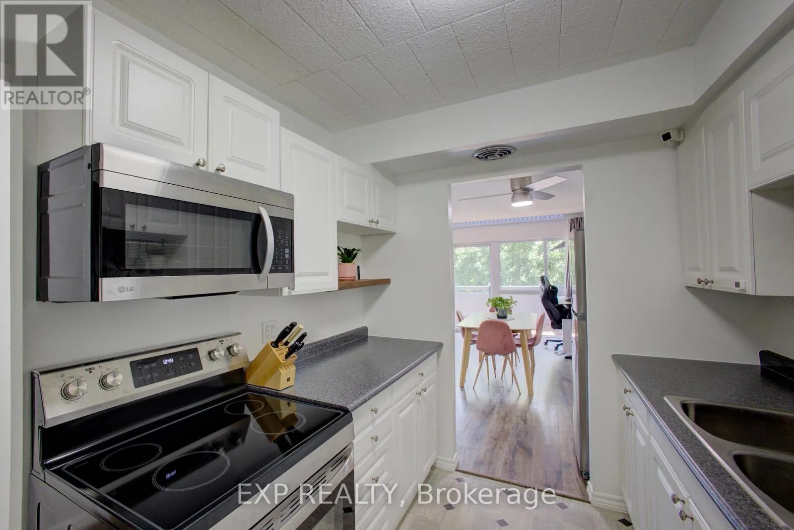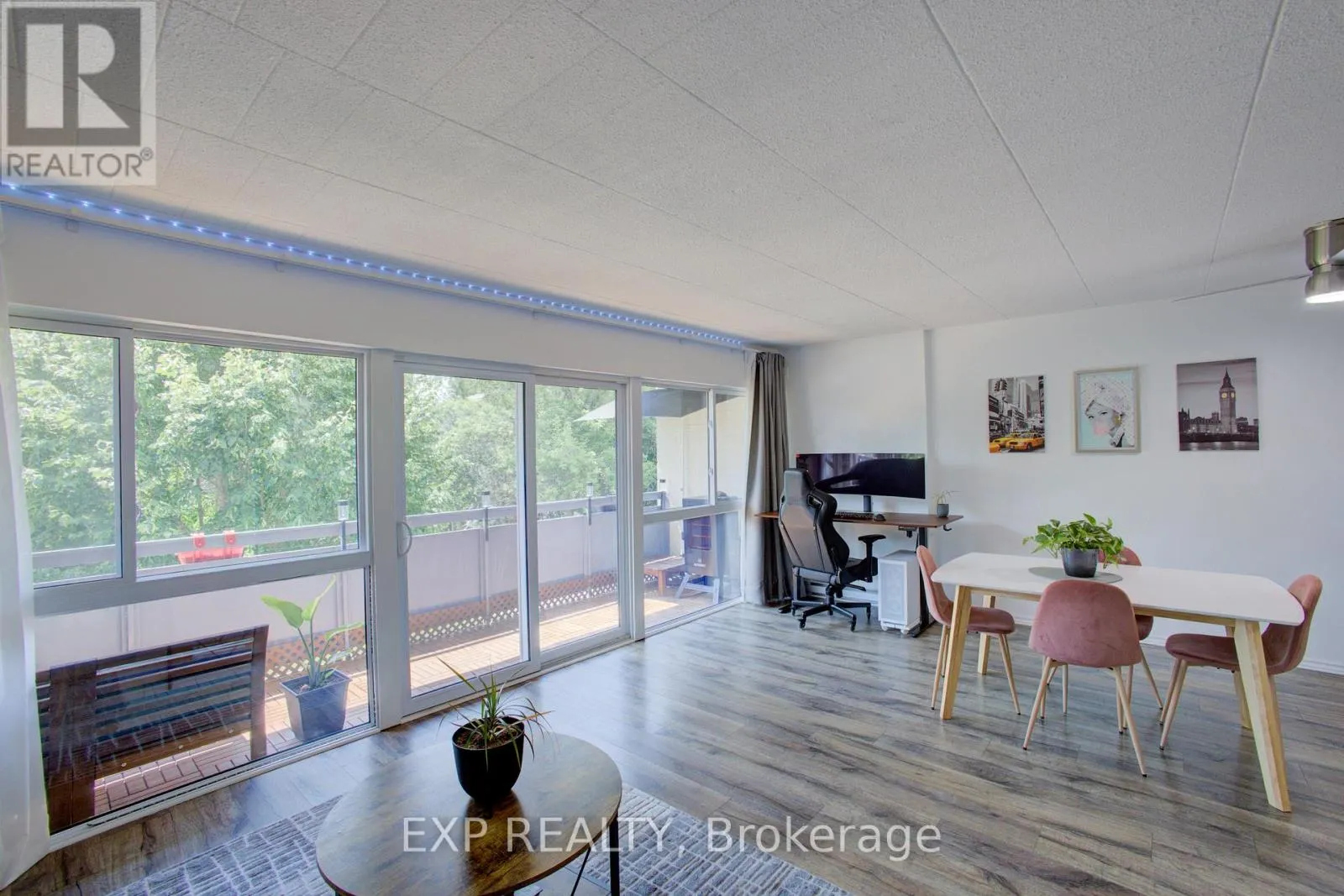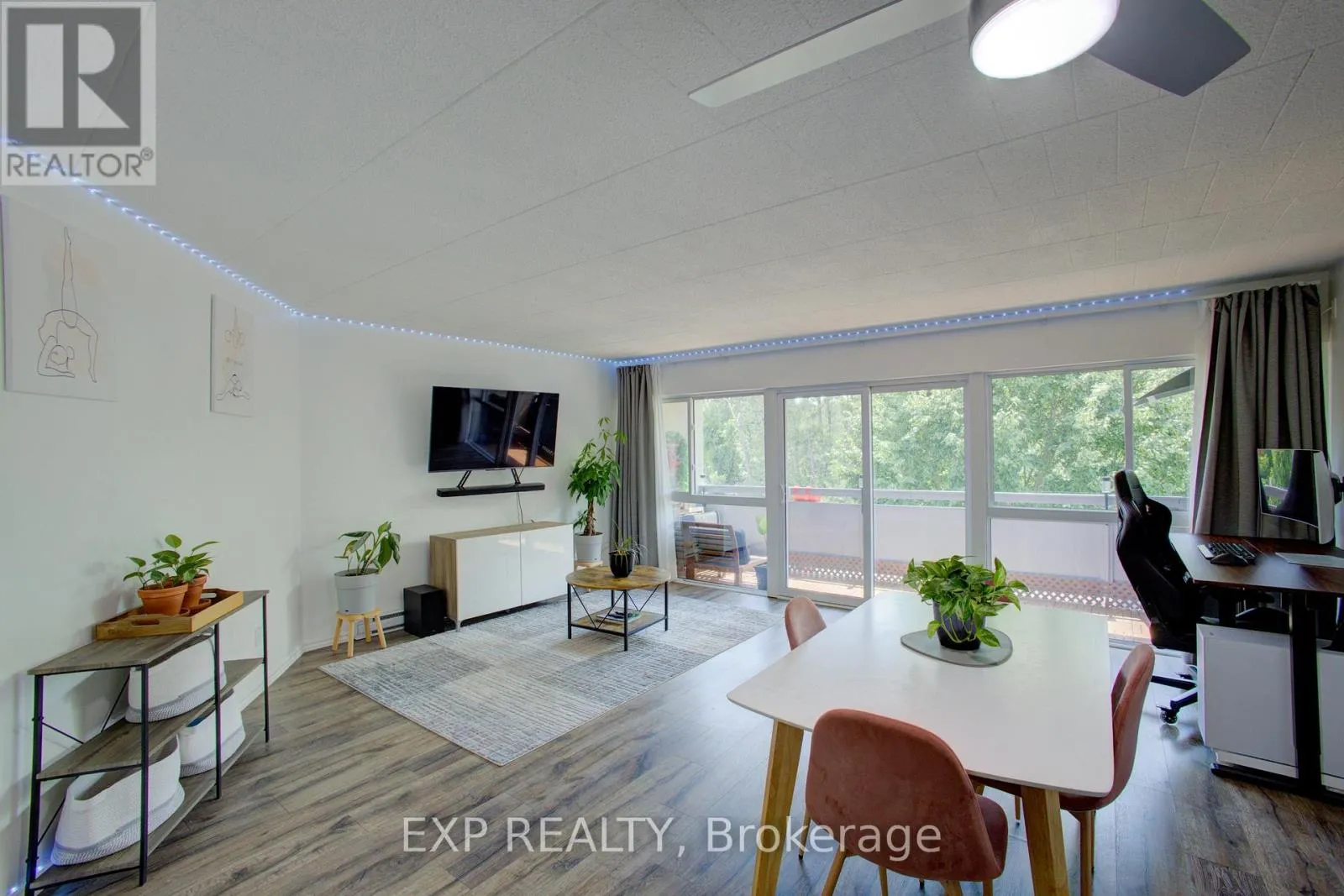 College Ave W Welcome to 91 Conroy Crescent, Unit 202 - a bright and stylish 2-bedroom, 1-bathroom condo in the heart of Guelph's desirable Dovercliffe/University neighbourhood! This well-maintained unit offers a spacious open-concept layout that seamlessly connects the living and dining areas, perfect for entertaining or relaxing at home. Large windows and a sliding glass door flood the space with natural light and lead out to your private balcony, ideal for enjoying your morning coffee or evening sunsets. The kitchen features sleek stainless steel appliances, ample cabinet space, and clean finishes. The updated 4-piece bathroom offers a contemporary feel with a fresh, modern design. The unit also includes one exclusive parking spot and a storage locker, providing convenience and additional space. Situated just minutes from the University of Guelph, this condo is ideal for first-time buyers, investors, or anyone looking for a low-maintenance lifestyle close to it all. Enjoy easy access to Highway 6 and the 401, making commuting a breeze. You're also just a short drive or bike ride to Stone Road Mall, grocery stores, restaurants, parks, and trails along the Speed River. Public transit is right at your doorstep, connecting you easily to the rest of the city. (id:27476)