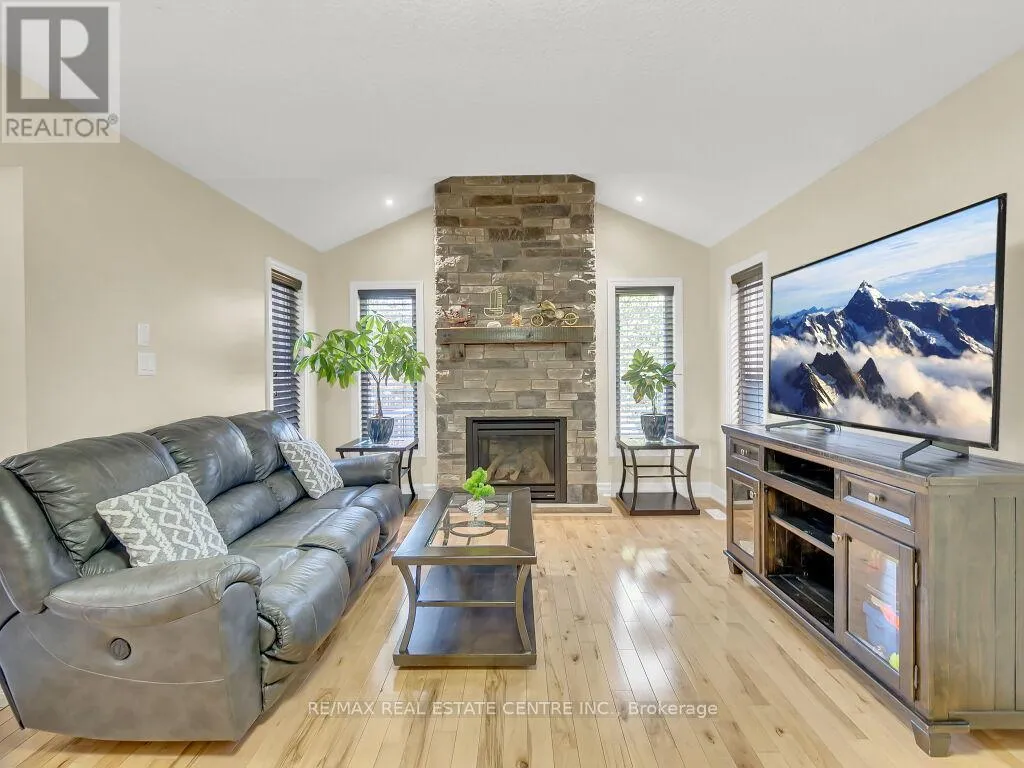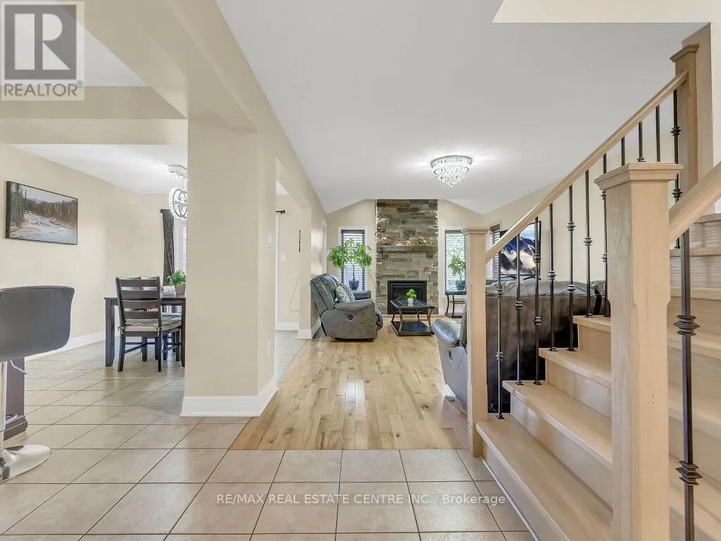 Cross Streets: FREDERICK DRIVE. ** Directions: Google Maps. Beautiful upgraded 2-storey detached home with a double car garage, built in 2013 and located in desirable South Guelph. The main floor features a spacious open-concept kitchen with a breakfast bar, island, ample cabinetry, and stainless steel appliances, along with a bright living room with hardwood flooring and a fireplace. Sliders from the dining area lead to a private deck and fully fenced backyard with a garden shed, plus a convenient 2-piece bathroom. Upstairs offers 3 well-sized bedrooms, including a generous primary bedroom with a walk-in closet and ensuite bathroom with a Jacuzzi tub, as well as an additional 4-piece bathroom. The finished basement adds excellent living space with an open-concept recreation room, gas fireplace, large windows, extra storage, and another 4-piece bathroom. Surrounded by nature and close to schools, the library, shopping, restaurants, and the rec center, this is a fantastic opportunity to own a wonderful family home in a great location. (id:27476)