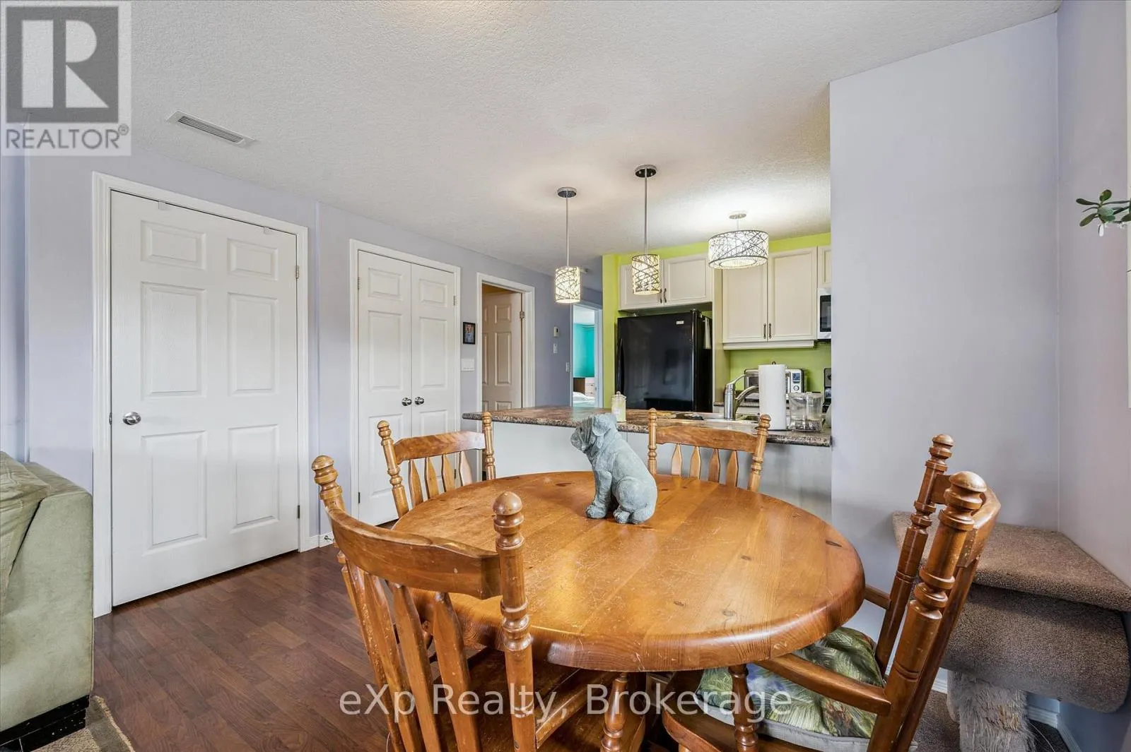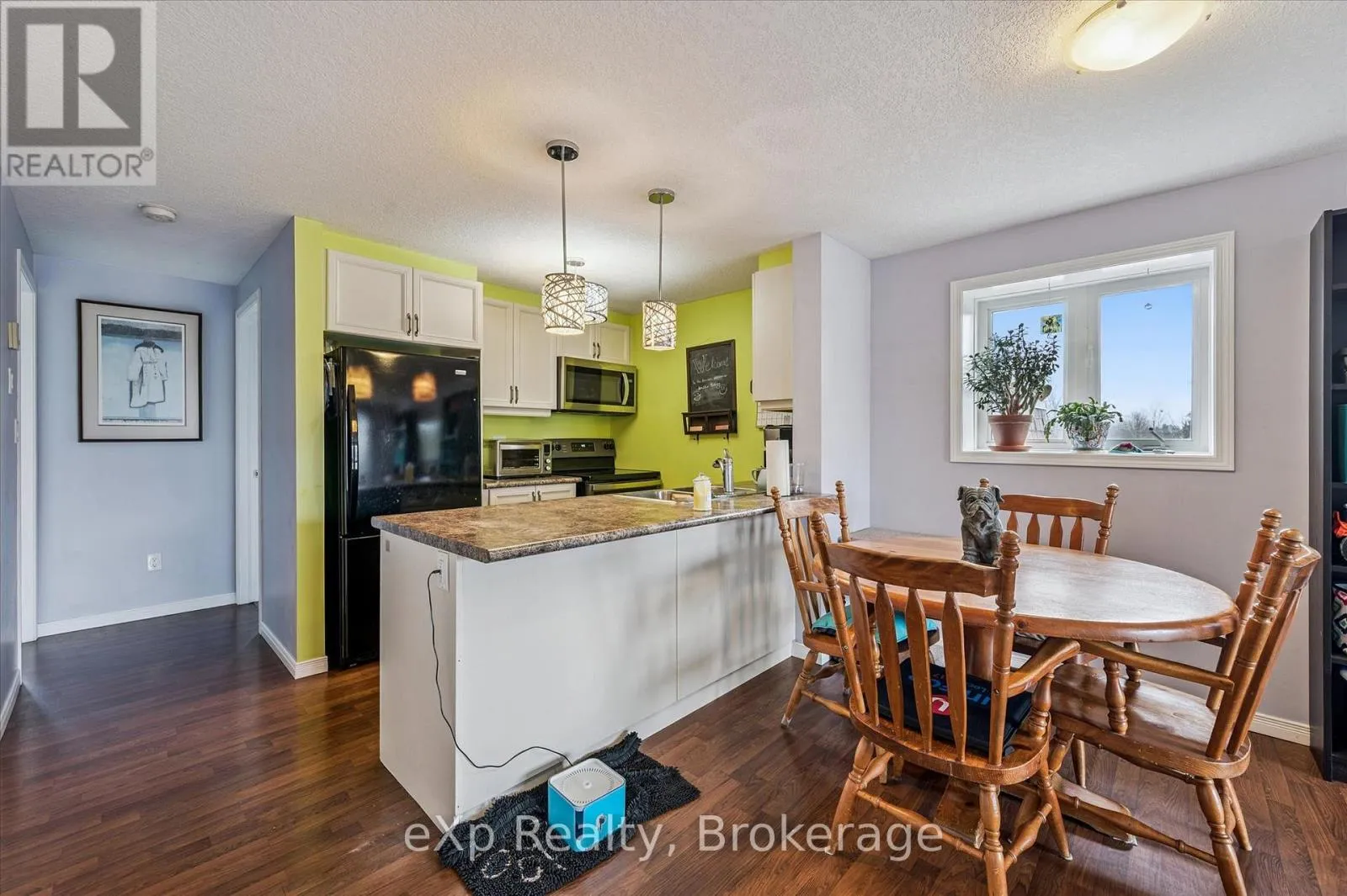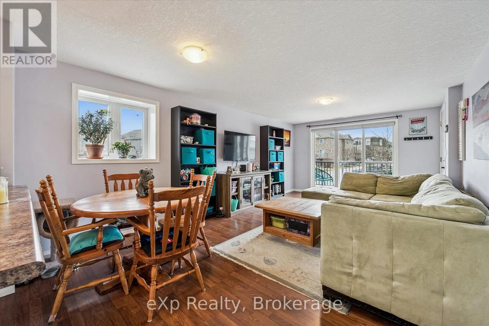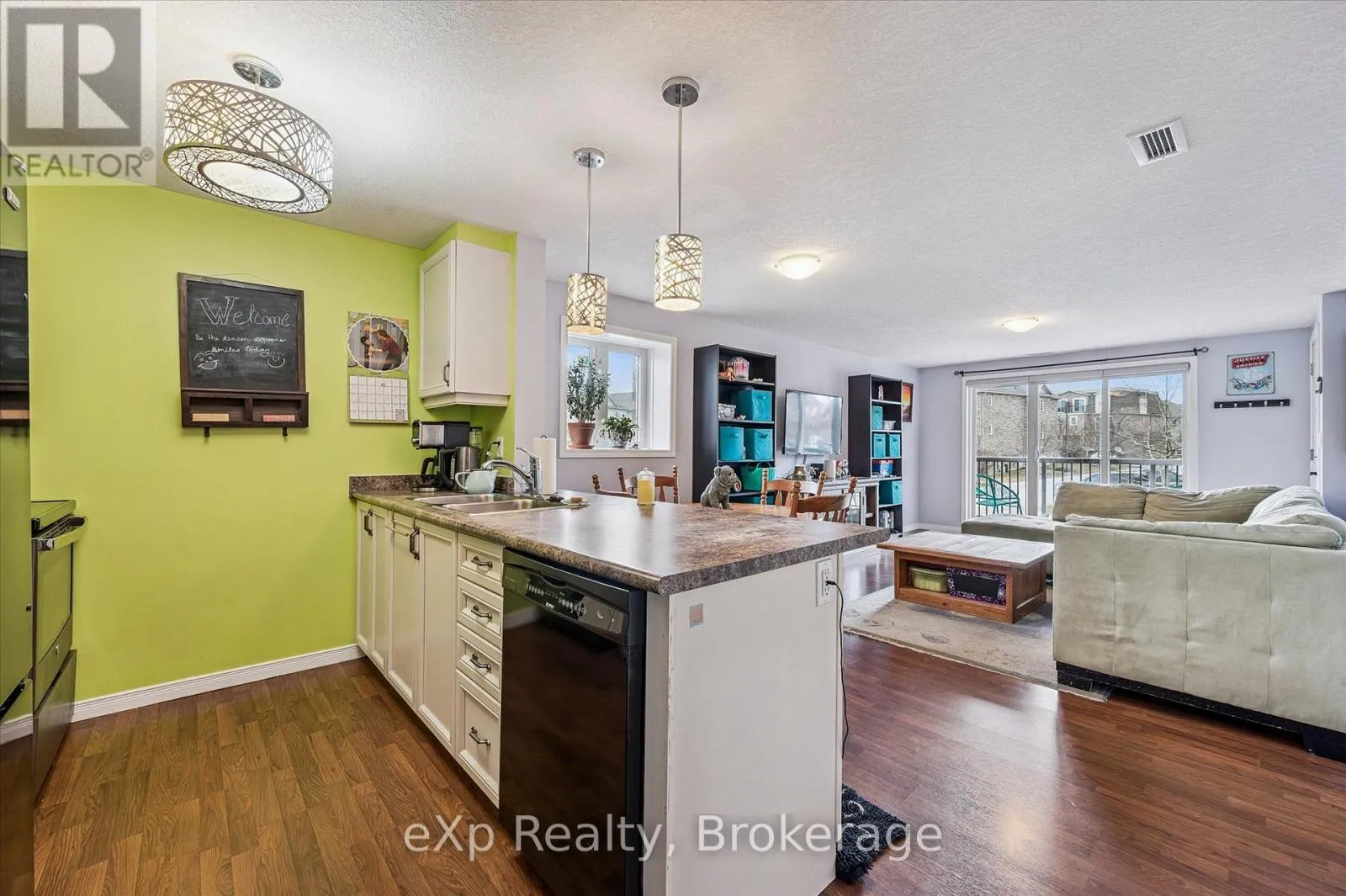 Cross Streets: Eastview and Mountford. ** Directions: Eastview to Mountford. Welcome to your next chapter at 87-35 Mountford Drive-a place where first-time buyers stop scrolling and start imagining.Tucked into a family-friendly pocket of Guelph and overlooking Peter Misersky Park, this bright 2-bedroom stacked townhouse offers a lifestyle that's hard to find at this price point. Enjoy your morning coffee on the front balcony and unwind in the evening on your oversized rear balcony with peaceful park views-two full-width outdoor spaces that truly extend your living area (because one balcony is nice... but two is better).Inside, the open-concept layout is both functional and inviting, with a seamless flow between the kitchen and living room-perfect for hosting, relaxing, or everyday living. The kitchen features a breakfast bar and modern lighting, creating a natural gathering space.Both bedrooms are generously sized and positioned at the back of the unit, each offering park views and direct access to the large private balcony-your own quiet retreat. A full 4-piece bathroom and in-suite laundry add everyday convenience.Located in a welcoming neighbourhood close to parks, schools, transit, and the Victor Davis Recreation Centre, this is an ideal opportunity to step into homeownership in a community you'll love.If you've been waiting for that perfect first home... this could be the one that opens the door. (id:27476)