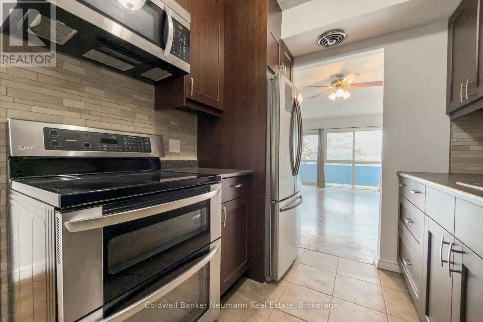 College Ave west to Conroy Crescent Welcome to Unit #511 at 105 Conroy Crescent, a well-maintained and inviting condo offering approximately 823 sq. ft. of comfortable living space in a friendly, established community. This bright unit features warm hardwood flooring throughout, creating a cozy and welcoming feel year-round. The kitchen is well equipped with stainless steel appliances, including a built-in microwave hood fan, dishwasher, refrigerator, and a double oven/stove-ideal for both everyday cooking and entertaining. Enjoy your own private balcony, perfect for a quiet morning coffee or unwinding at the end of the day. The building offers convenient shared laundry facilities, ample parking, and a separate storage locker for all of your off season decorations! Water is also included in the cost of utilities, helping keep monthly expenses more predictable and more affordable. Located in the desirable south end of Guelph, the condo is surrounded by green space, walking trails, schools, shopping, and public transit, offering an excellent balance of convenience and affordability. A great opportunity for tenants seeking a well-kept condo in a good location. (id:27476)