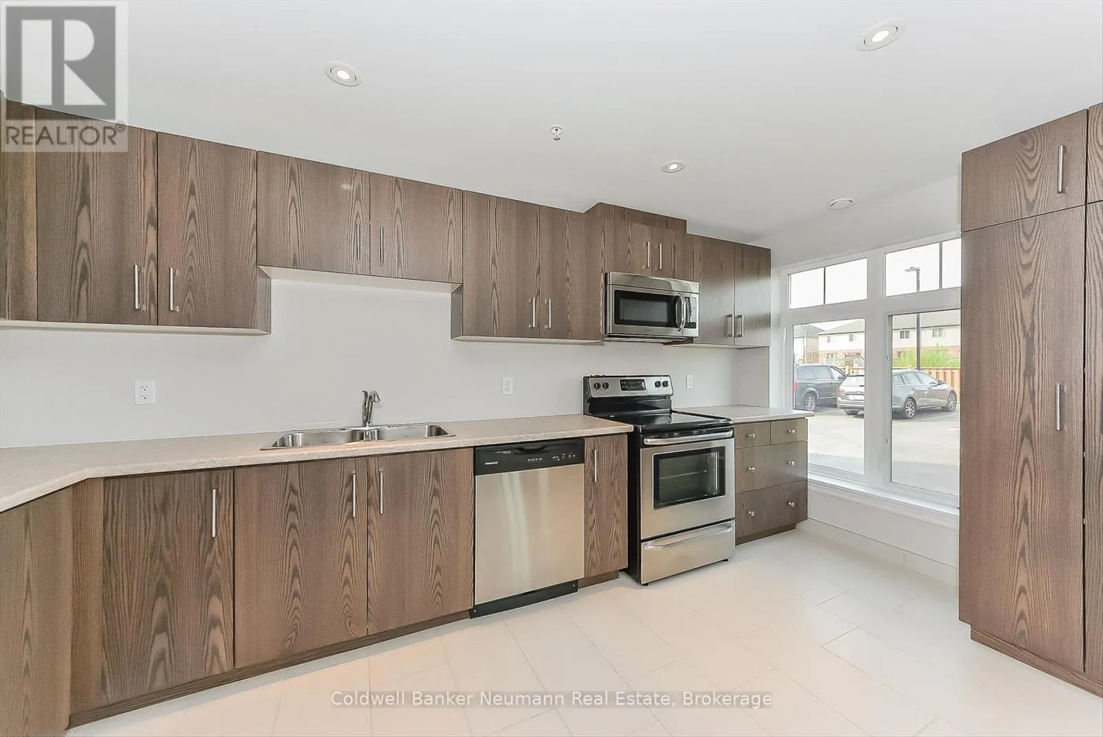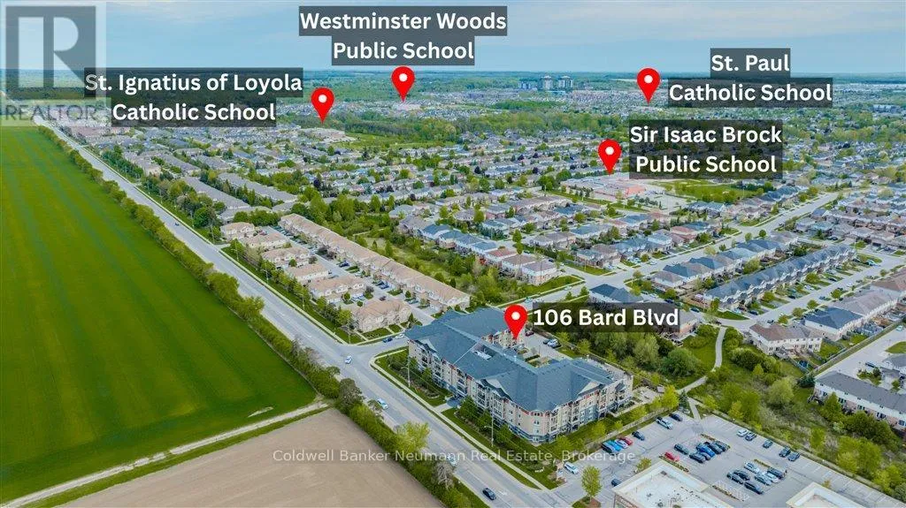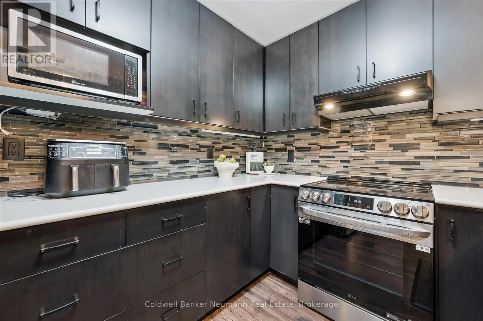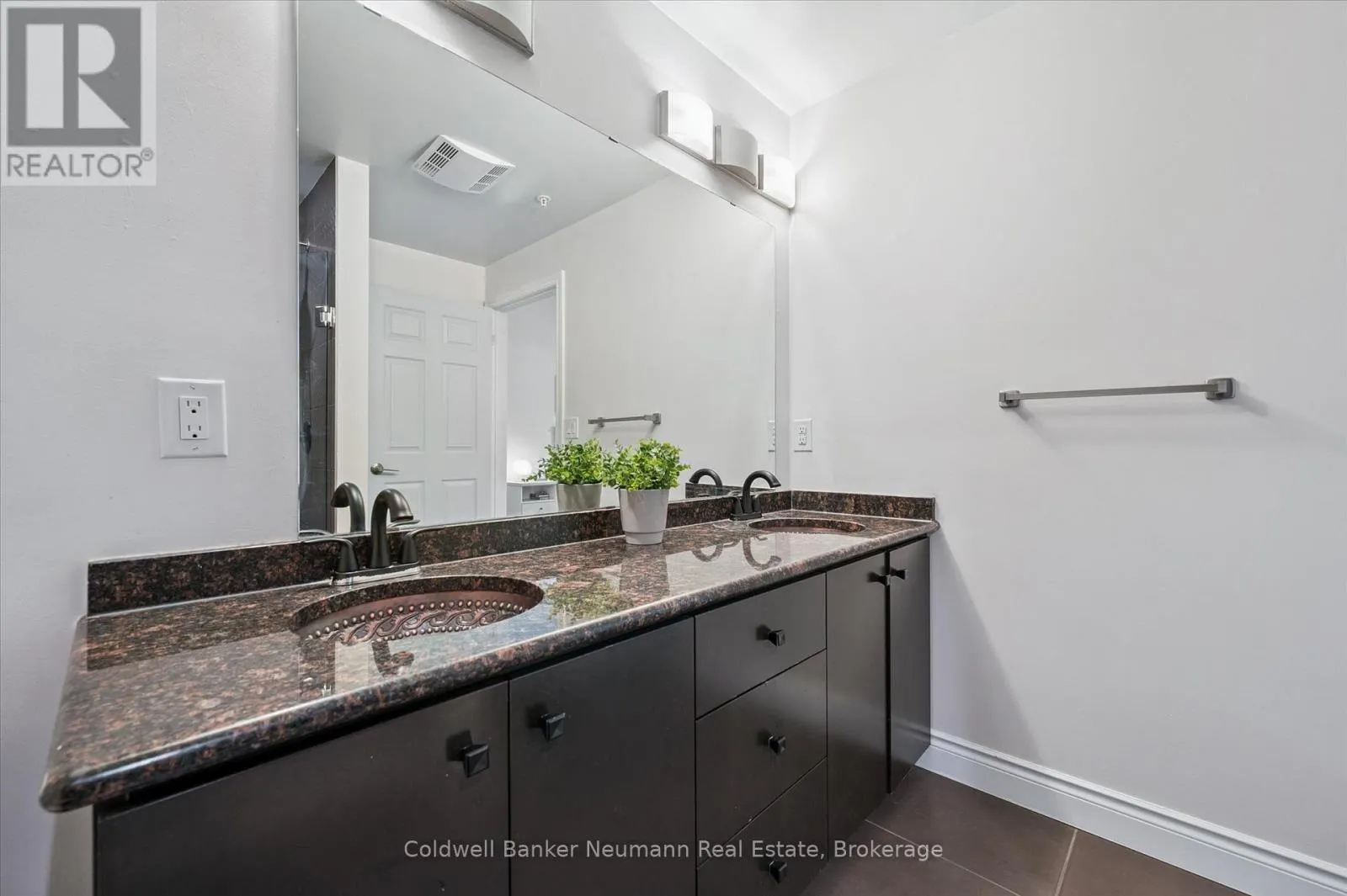 Cross Streets: Victoria Road South. ** Directions: Victoria Road South to Bard BLVD. Welcome to this spacious condo located in Guelph's highly desirable Pineridge/Westminster Woods neighbourhood. Offering over 1,600 sq ft of thoughtfully designed living space, this unit features a versatile and functional layout with 3 bedrooms and 2 full bathrooms, along with the rare benefit of 3 parking spaces (1 underground and 2 surface) and a private balcony, providing both comfort and practicality for everyday living. The open-concept main living area is bright and inviting, with expansive windows that fill the space with natural light and an electric fireplace that anchors the room. The layout offers excellent separation while maintaining flow between the living, dining, and kitchen areas, making it well-suited for both daily living and entertaining. The kitchen is finished with quartz countertops, stainless steel appliances, a custom copper sink, and generous cabinetry, offering a clean and functional workspace with thoughtful detail. The primary bedroom is generously sized and features a walk-in closet and a private ensuite complete with a double copper vanity. Two additional bedrooms provide flexibility for family, guests, or a dedicated home office, while the ensuite laundry adds to the overall convenience. Constructed in 2015, the building is well maintained and offers a range of amenities including a fully equipped exercise room, party room, rooftop terrace, and ample visitor parking. Situated in Guelph's south end, this location is known for its strong sense of community and access to everyday essentials. You're within close proximity to shopping, restaurants, schools, parks, and the University of Guelph, with public transit directly nearby and convenient access to Highway 401 and the GO Train for commuters. Perfect for first-time home buyers, commuters, and downsizers seeking a low-maintenance lifestyle in a well-connected and established neighbourhood. (id:27476)
