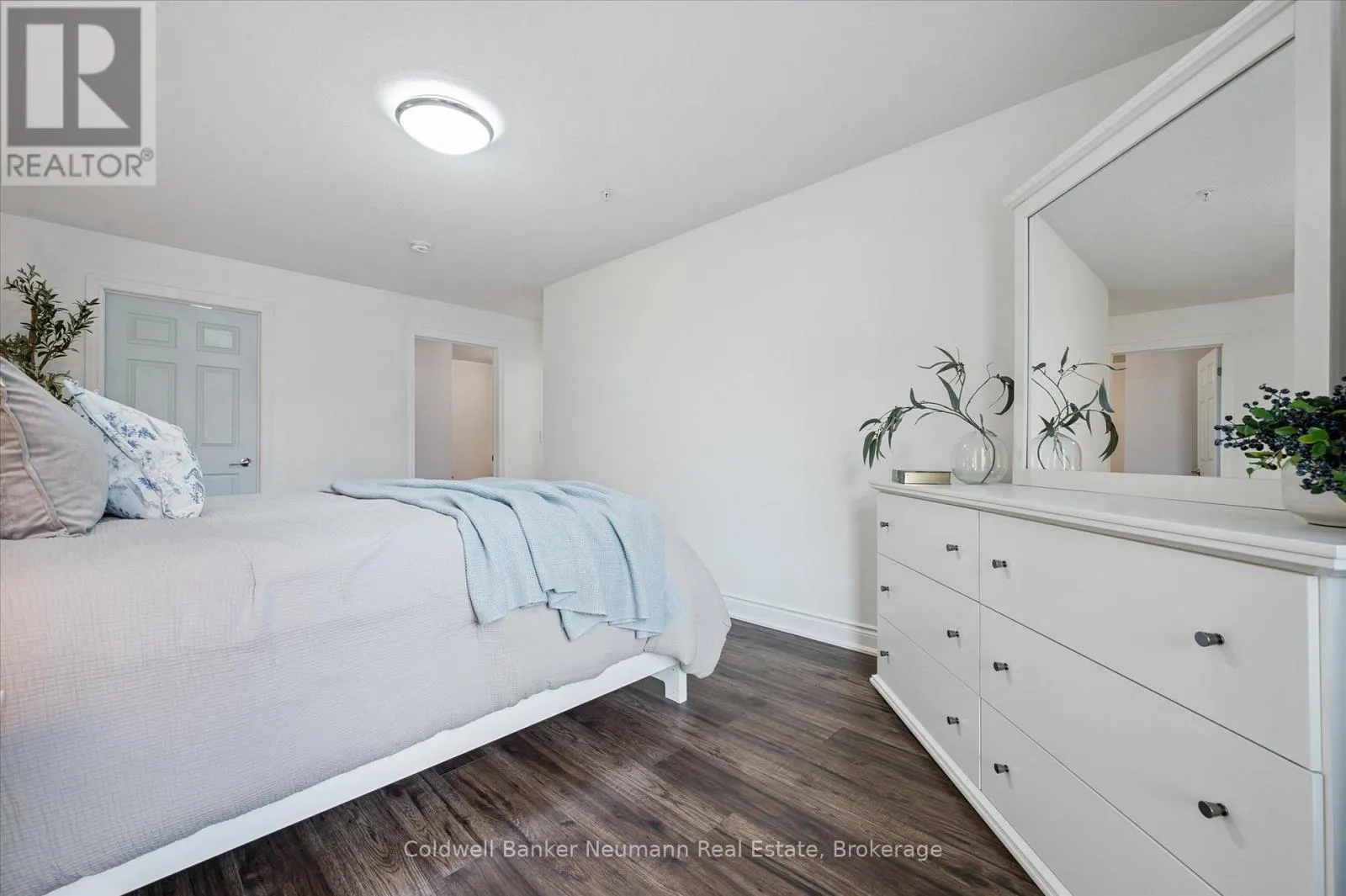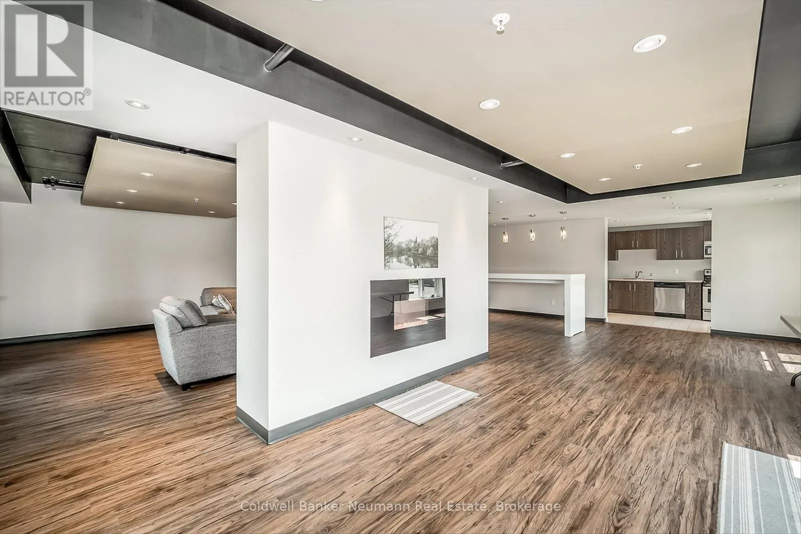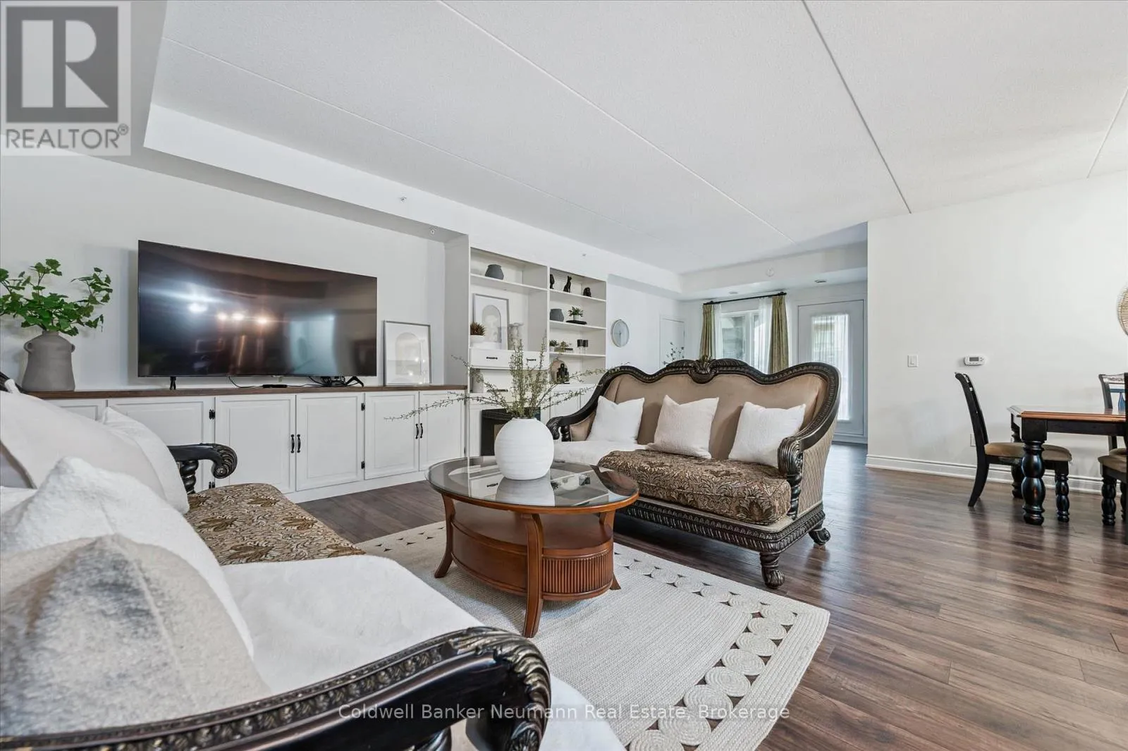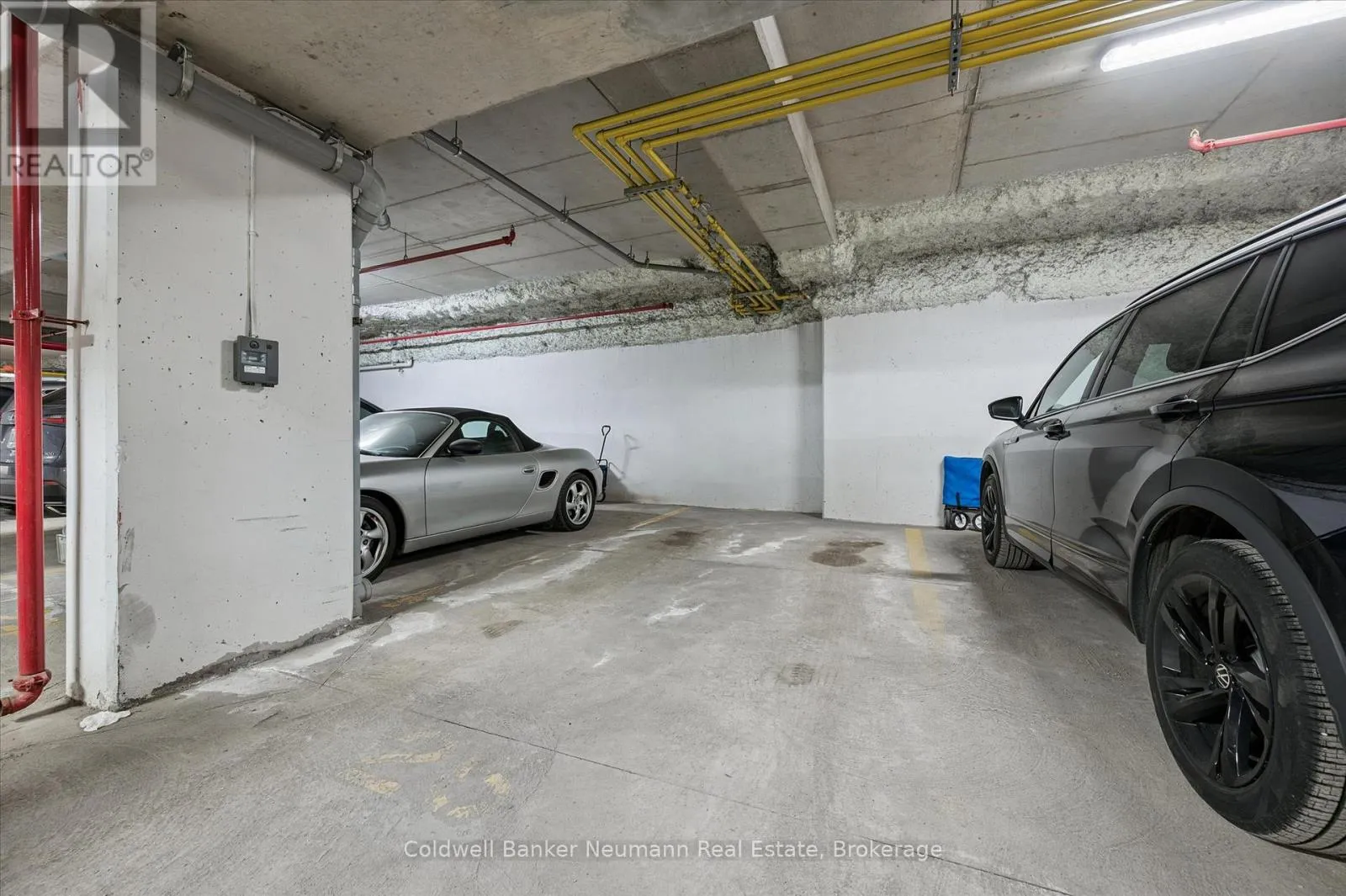 Cross Streets: Victoria Road South. ** Directions: Victoria Road South to Bard BLVD. Welcome to this spacious condo located in Guelph's highly desirable Pineridge/Westminster Woods neighbourhood. Offering over 1,600 sq ft of thoughtfully designed living space, this unit features a versatile and functional layout with 3 bedrooms and 2 full bathrooms, along with the rare benefit of 3 parking spaces (1 underground and 2 surface) and a private balcony, providing both comfort and practicality for everyday living. The open-concept main living area is bright and inviting, with expansive windows that fill the space with natural light and an electric fireplace that anchors the room. The layout offers excellent separation while maintaining flow between the living, dining, and kitchen areas, making it well-suited for both daily living and entertaining. The kitchen is finished with quartz countertops, stainless steel appliances, a custom copper sink, and generous cabinetry, offering a clean and functional workspace with thoughtful detail. The primary bedroom is generously sized and features a walk-in closet and a private ensuite complete with a double copper vanity. Two additional bedrooms provide flexibility for family, guests, or a dedicated home office, while the ensuite laundry adds to the overall convenience. Constructed in 2015, the building is well maintained and offers a range of amenities including a fully equipped exercise room, party room, rooftop terrace, and ample visitor parking. Situated in Guelph's south end, this location is known for its strong sense of community and access to everyday essentials. You're within close proximity to shopping, restaurants, schools, parks, and the University of Guelph, with public transit directly nearby and convenient access to Highway 401 and the GO Train for commuters. Perfect for first-time home buyers, commuters, and downsizers seeking a low-maintenance lifestyle in a well-connected and established neighbourhood. (id:27476)