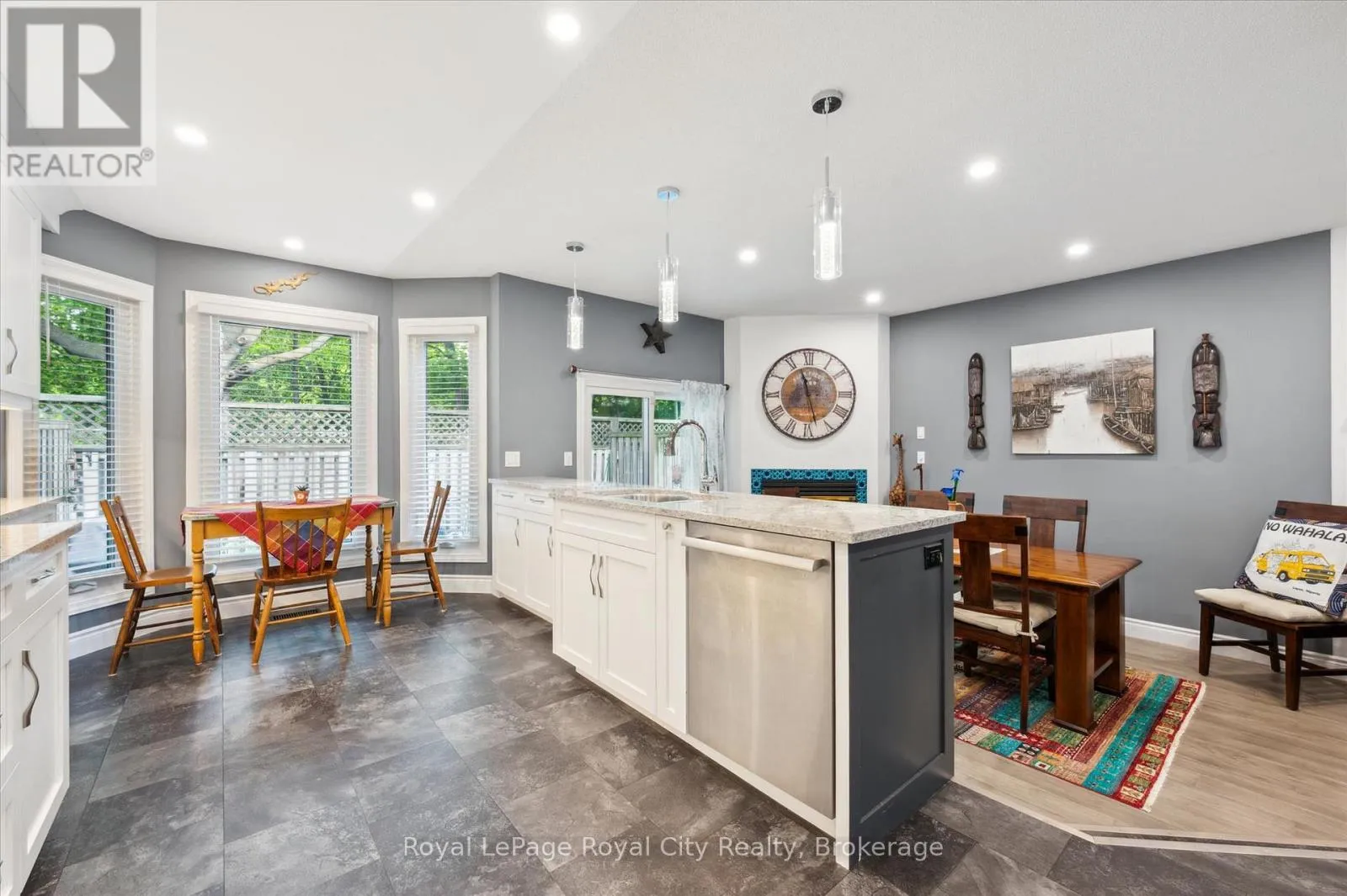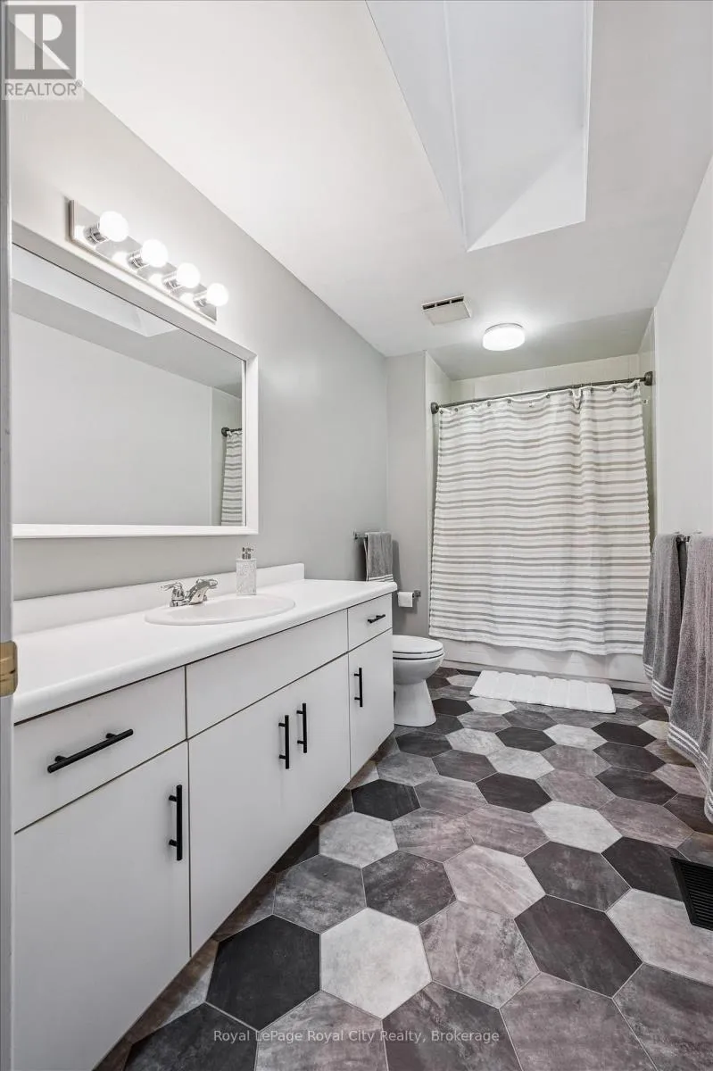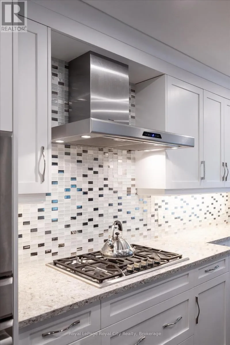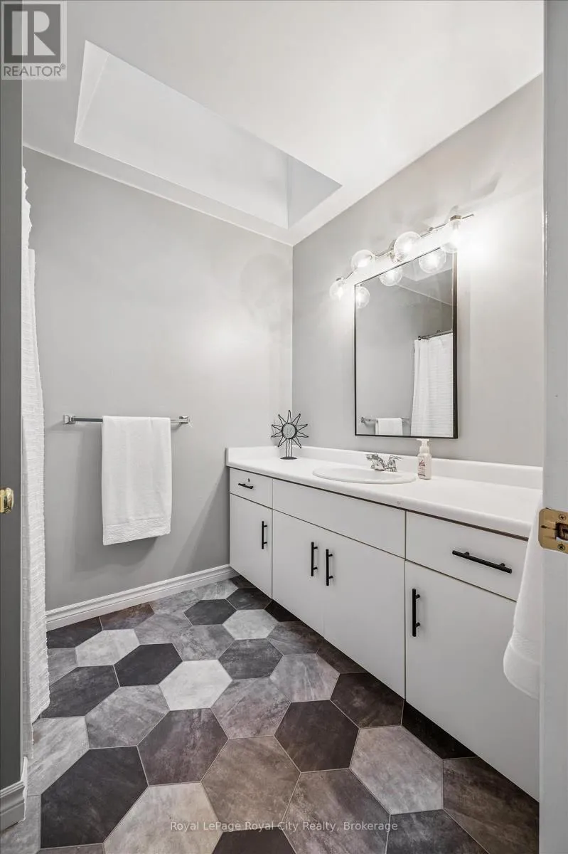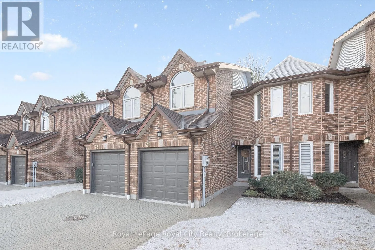 Cross Streets: WOOLWICH STREET AND MARILYN DRIVE. ** Directions: WOOLWICH STREET, TURN EAST ON MARILYN DRIVE. Welcome to 21 Marilyn Drive, a stunning townhome nestled in the highly sought-after Riverside Park area! This exquisite property offers a luxurious and comfortable living experience, boasting 3 spacious bedrooms and 4 modern bathrooms. The heart of this home is its open-concept main floor plan, perfect for entertaining and everyday living. Prepare to be wowed by the spacious, custom kitchen by Jacob's Woodworking, featuring top-of-the-line Thermador kitchen appliances. Cozy up by one of the two gas fireplaces on a chilly evening. Walk out through sliders from the dining area to a lovingly landscaped rear garden offering privacy and tranquility. Three skylights flood the upstairs space with natural light, creating a bright and inviting atmosphere. Three spacious bedrooms, 3-piece main bathroom has new floors , primary has a 4-piece ensuite bathroom and also new flooring has just been updated, walk in closet and a private and treed view overlooking Riverside Park. Enter the finished basement, which has just been freshly painted! You'll find a cozy media room with various lounge areas, a well-appointed laundry room, an additional 2-piece powder room, and a versatile workspace area, offering ample room for all your needs. The convenience of an attached garage adds to the home's appeal. One of the most remarkable features of this property is its prime location, backing directly onto Riverside Park, offering unparalleled access to nature and outdoor activities. Despite its tranquil setting, you're still just moments away from major shopping centers, providing the perfect blend of serenity and convenience. Low condo fees include all exterior maintenance (roof, windows, doors), snow removal, grass cutting and wooden deck in rear garden. (id:27476)