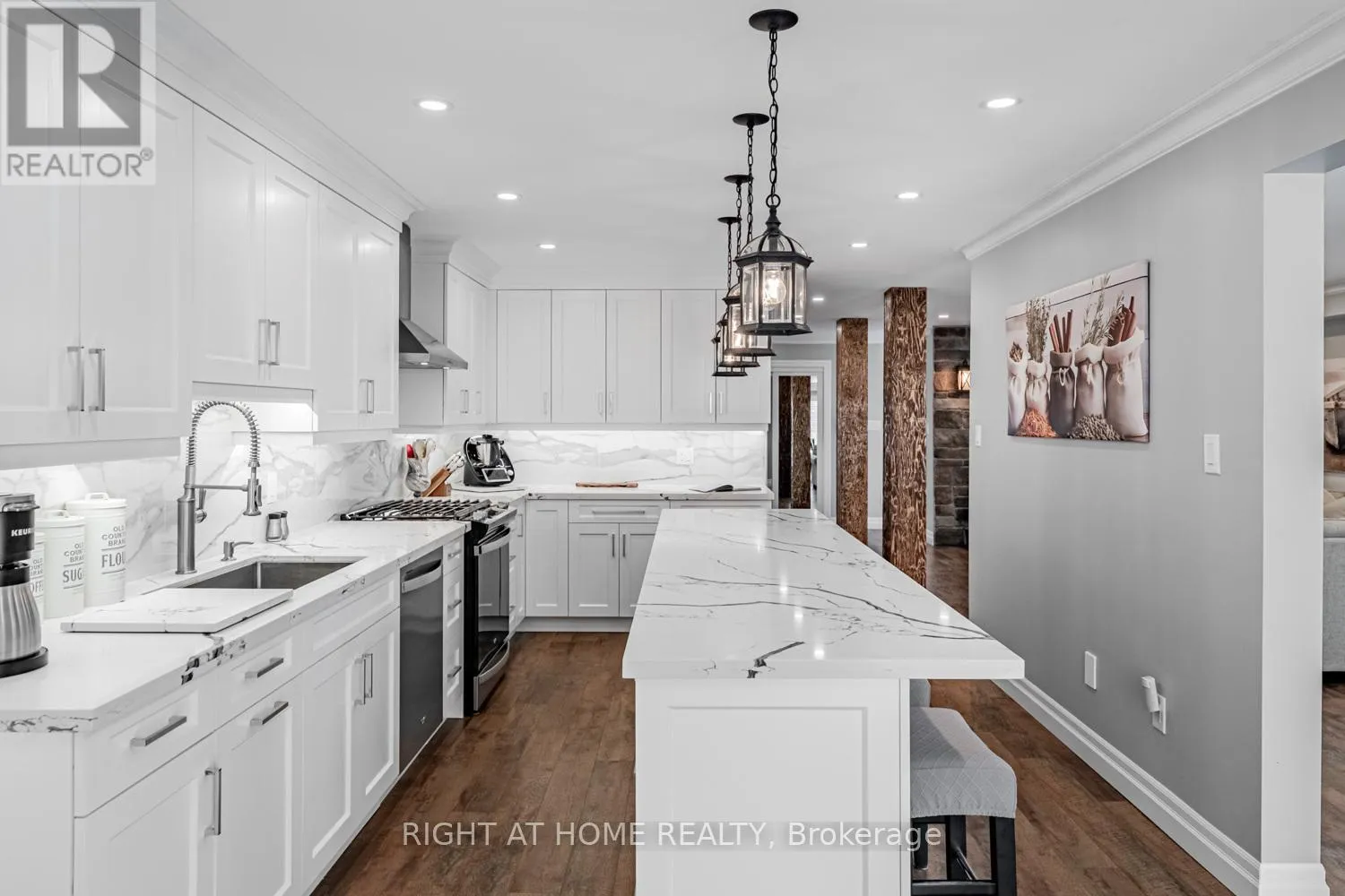 Cross Streets: Downey Dr. S & Teal Dr. ** Directions: Hwy 6 & Downey Dr. **See Virtual Tour*** Legal Basement Apartment/In Law-Suite!!! You must see this beautifully appointed property before it's too late. Living in Luxury and in the most desirable neighborhoods in Guelph is every buyer's delight. The main floor welcomes you with a very spacious open concept living and dining room with a beautiful natural stone mantel/media wall unit and electric fireplace, pot lights, flat ceilings, crown moldings, lots of windows and a convenient lower level laundry room. The chef's kitchen which has been recently renovated will have you want to cook dinners for your family and friends every day! It offers a huge island, quartz counters, gas stove, stainless steel appliances and lots to cabinet space. As you head upstairs the elegant, modern and curved solid oak staircase leads you to the 2nd floor which offers 4 very spacious bedrooms each designed with comfort in mind, good size closets and sunlight galore. Indulge in this oversized Master bedroom with a large window, Walk-In Closet and renovated luxurious en-suite bathroom with a separate shower, his and hers sink and soaker tub. The lower level leads to a fully finished legal and separate entrance basement apartment with a huge open concept living room, kitchen, full bathroom, pot lights, flat ceilings, egress windows, separate laundry room, lots of storage and double drywall with insulation for sound proofing. Enjoy this fully fenced Backyard oasis which offers privacy with no back neighboring window in sight and gazebo for privacy. Conveniently located near YMCA, shopping, Hwy 401, schools and transportation. Don't wait!!! This is your "Home Sweet Home". (id:27476)