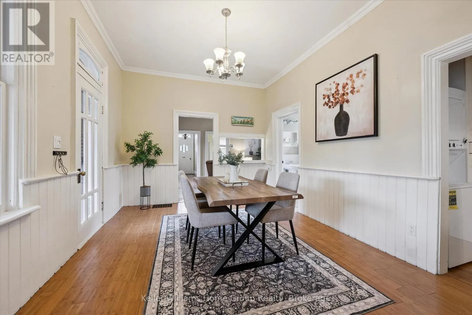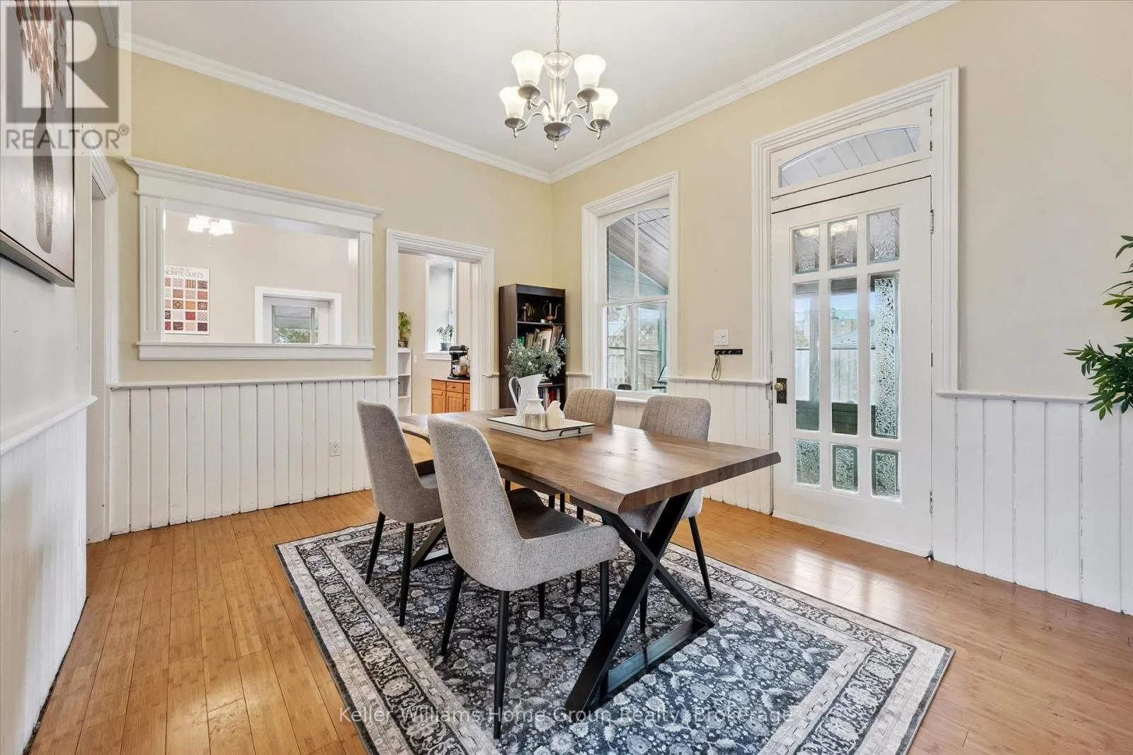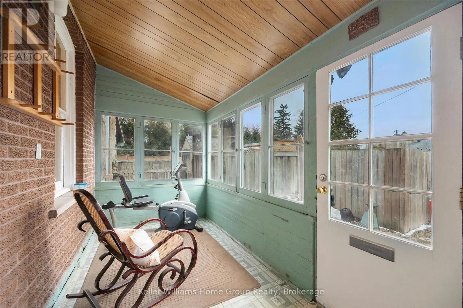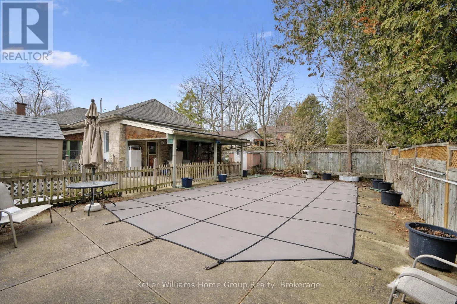 Waterloo to Hearn JUNCTION 3 BEDROOM BUNGALOW! This bright and airy 3 bedroom Ontario cottage style bungalow located in the Junction offers modern conveniences combined with old home charm! At almost 1200sf, this home has a wonderful, functional layout which is ideal for both everyday living and entertaining. At the front of the house are three spacious bedrooms and a large, bright living room. Further back, you'll find 4 pc bath, a formal dining room with beadboard and a bright 3 season sunroom off the side, perfect for morning coffee. There's also main level laundry for added convenience! At the rear of the house is the updated kitchen with peninsula that has backyard access. Outside in the fully fenced yard is a large covered patio area and a wonderful pool! Move in just as pool season starts and take advantage of it all summer long. They don't make homes like this anymore! Walking distance to downtown Guelph, bus routes, the Farmers Market, Fixed Gear Brewery and more. Updates include AC, fridge, dishwasher, washer/dryer, pool pump, heater, liner and chlorinator (all 2024). (id:27476)