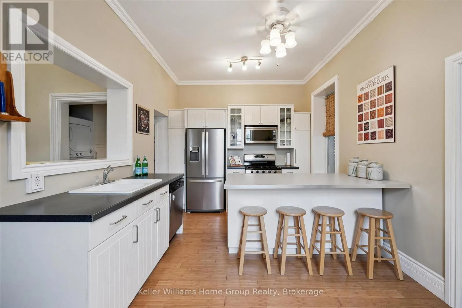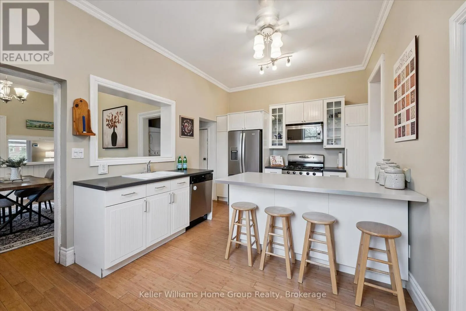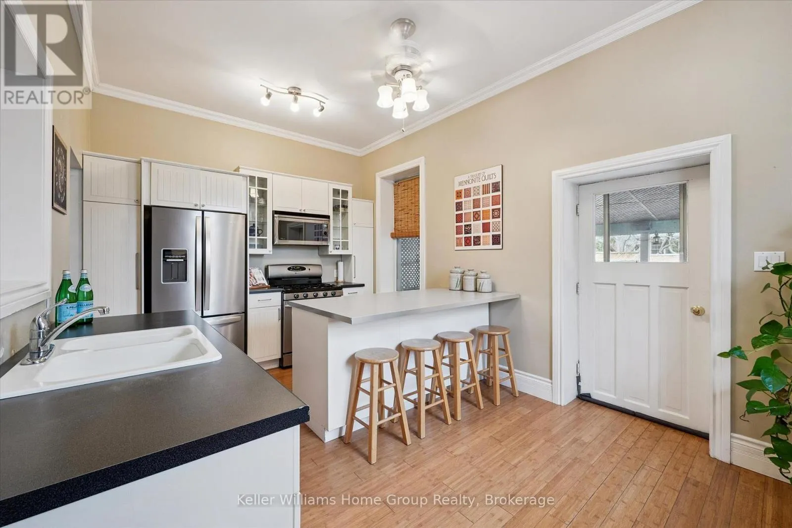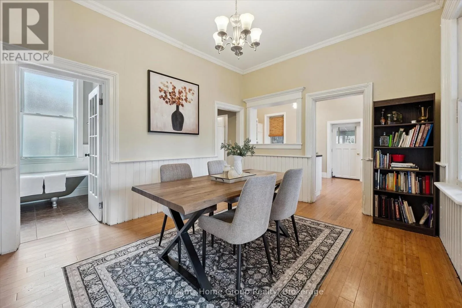 Waterloo to Hearn JUNCTION 3 BEDROOM BUNGALOW! This bright and airy 3 bedroom Ontario cottage style bungalow located in the Junction offers modern conveniences combined with old home charm! At almost 1200sf, this home has a wonderful, functional layout which is ideal for both everyday living and entertaining. At the front of the house are three spacious bedrooms and a large, bright living room. Further back, you'll find 4 pc bath, a formal dining room with beadboard and a bright 3 season sunroom off the side, perfect for morning coffee. There's also main level laundry for added convenience! At the rear of the house is the updated kitchen with peninsula that has backyard access. Outside in the fully fenced yard is a large covered patio area and a wonderful pool! Move in just as pool season starts and take advantage of it all summer long. They don't make homes like this anymore! Walking distance to downtown Guelph, bus routes, the Farmers Market, Fixed Gear Brewery and more. Updates include AC, fridge, dishwasher, washer/dryer, pool pump, heater, liner and chlorinator (all 2024). (id:27476)