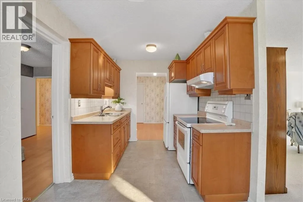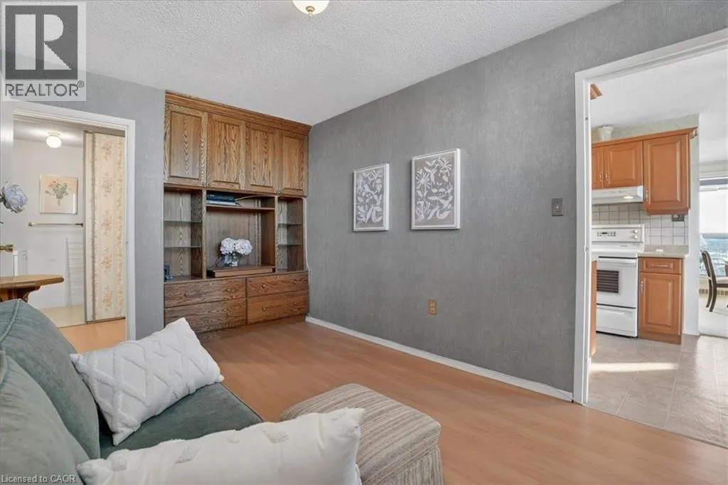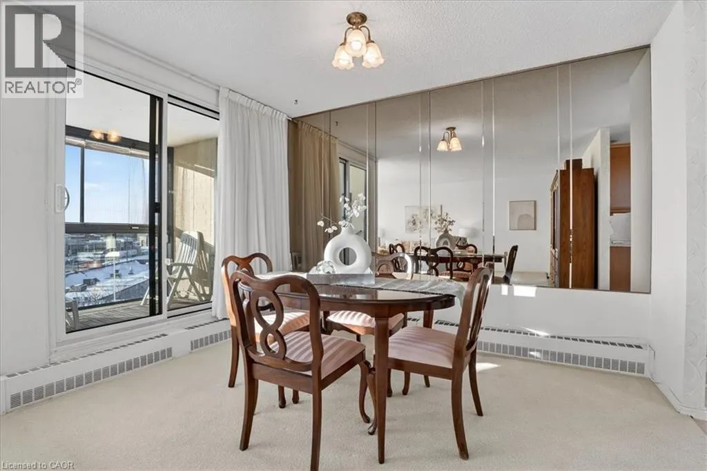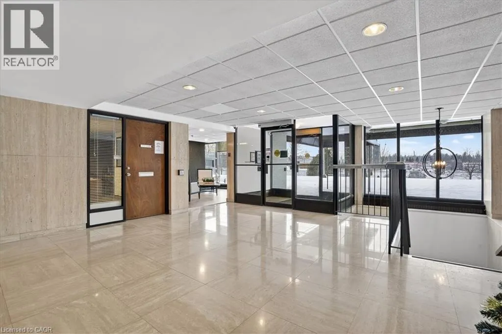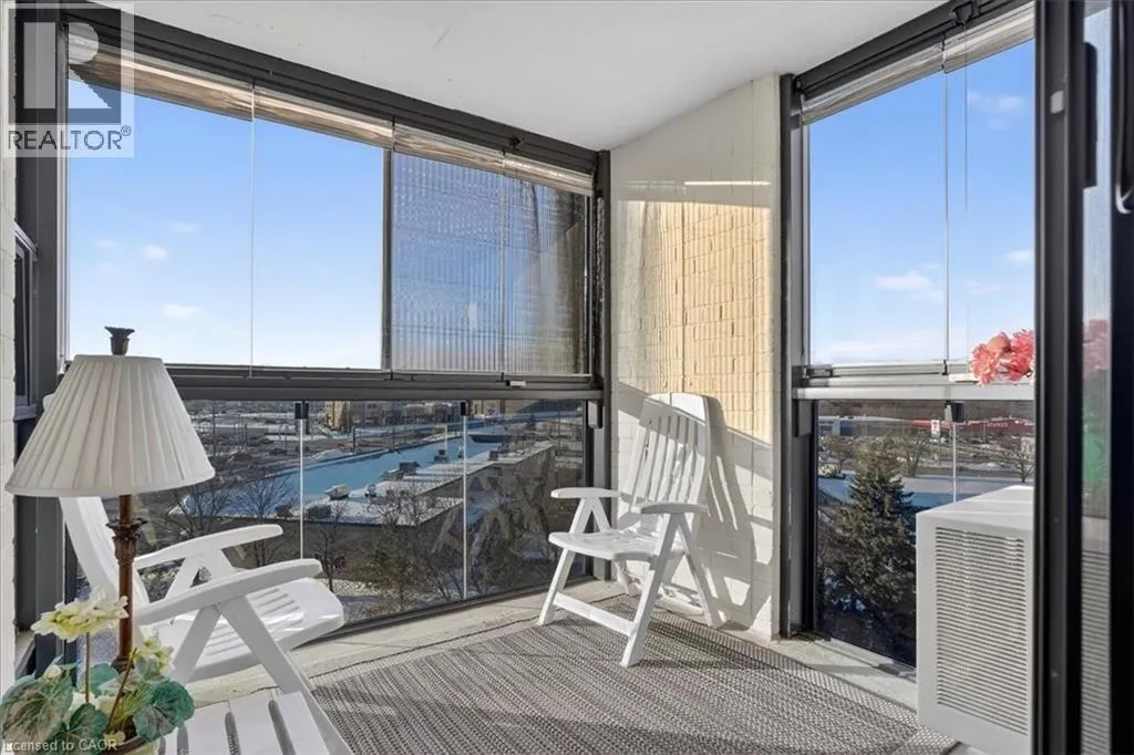 Super bright, 1380 sq ft CORNER unit in sought after complex of Riverside Park area in Guelph. HEAT, HYDRO, WATER included in condo fees! Excellent layout with floor to ceiling windows, sunroom/balcony with great sunset views. Large open concept design featuring formal Living, Dining rooms and spacious eat-in Kitchen offering ample cabinets and counter space. 3 good sized Bedrooms, one is used as a Den/Office with built-in wall unit, 3pc main bath and the Primary with 2pc ensuite. Tons of storage, in-suite laundry and one assigned parking space in covered garage. Very clean and airy home. Well maintained building with many amenities including: tennis courts, outdoor pool, sauna, games room, gym, guest suite, community rooms, library, workshop and more. Located in walking distance to Riverside Park, shopping, restaurants, trails, public transit and easy access to major routes. (id:27476)
