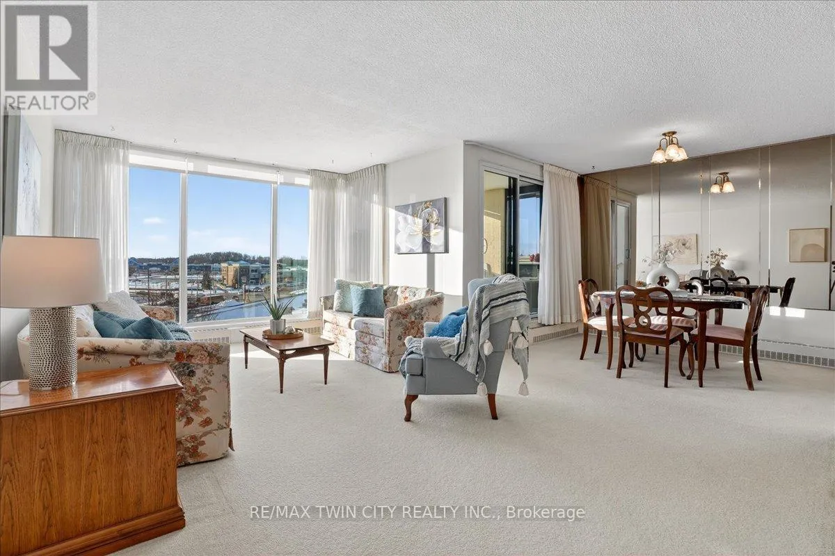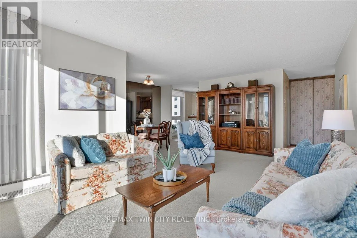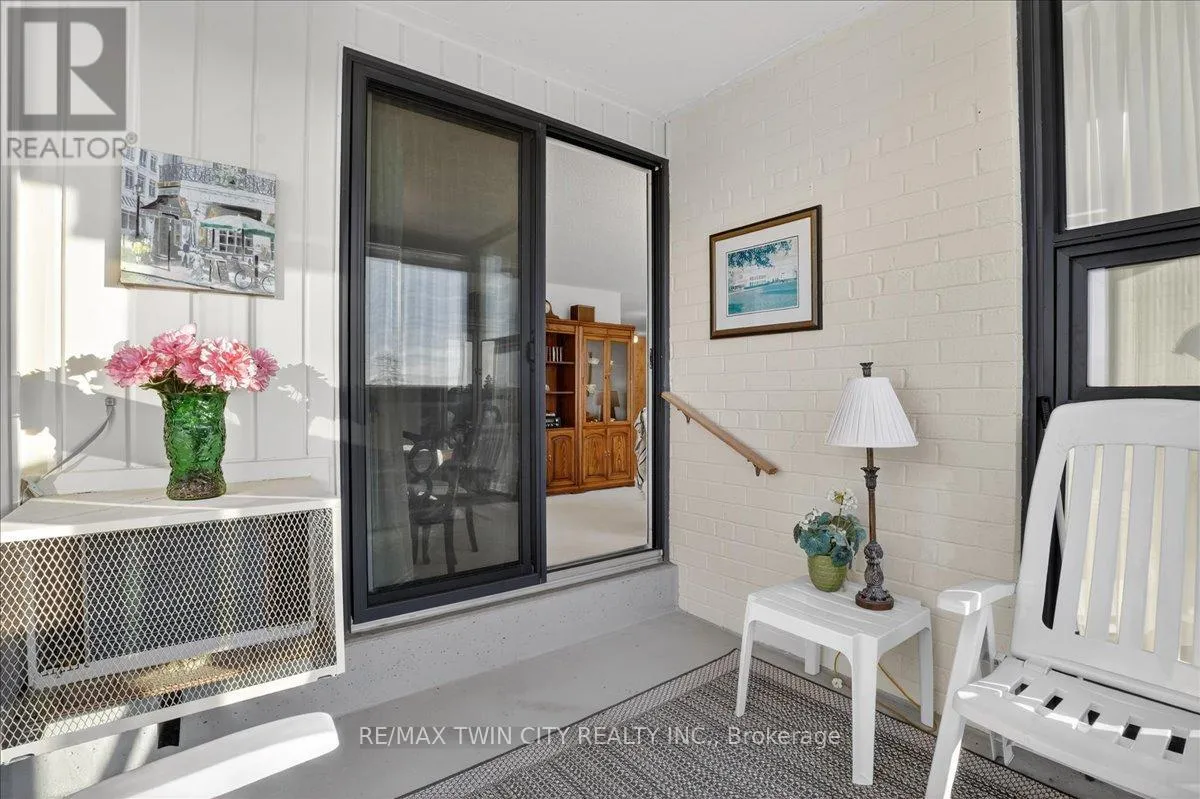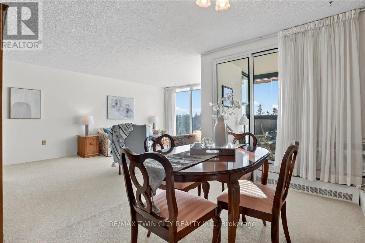 Cross Streets: Woolwich Street. ** Directions: Speedvale Avenue East to Woolwich Street to Woodlawn Road East. Super bright, 1380 sq ft CORNER unit in sought after complex of Riverside Park area in Guelph. HEAT, HYDRO, WATER included in condo fees! Excellent layout with floor to ceiling windows, sunroom/balcony with great sunset views. Large open concept design featuring formal Living, Dining rooms and spacious eat-in Kitchen offering ample cabinets and counter space. 3 good sized Bedrooms, one is used as a Den/Office with built-in wall unit, 3pc main bath and the Primary with 2pc ensuite. Tons of storage, in-suite laundry and one assigned parking space in covered garage. Very clean and airy home. Well maintained building with many amenities including: tennis courts, outdoor pool, sauna, games room, gym, guest suite, community rooms, library, workshop and more. Located in walking distance to Riverside Park, shopping, restaurants, trails, public transit and easy access to major routes. (id:27476)