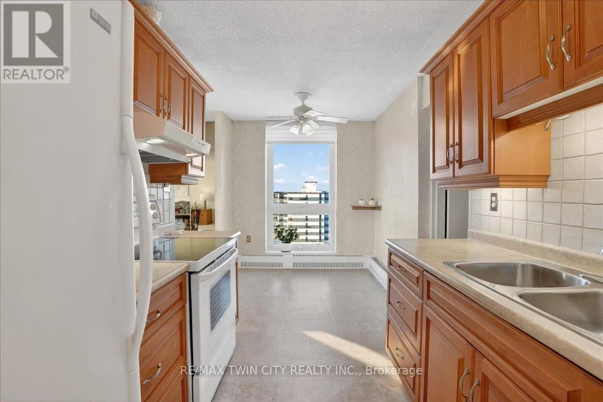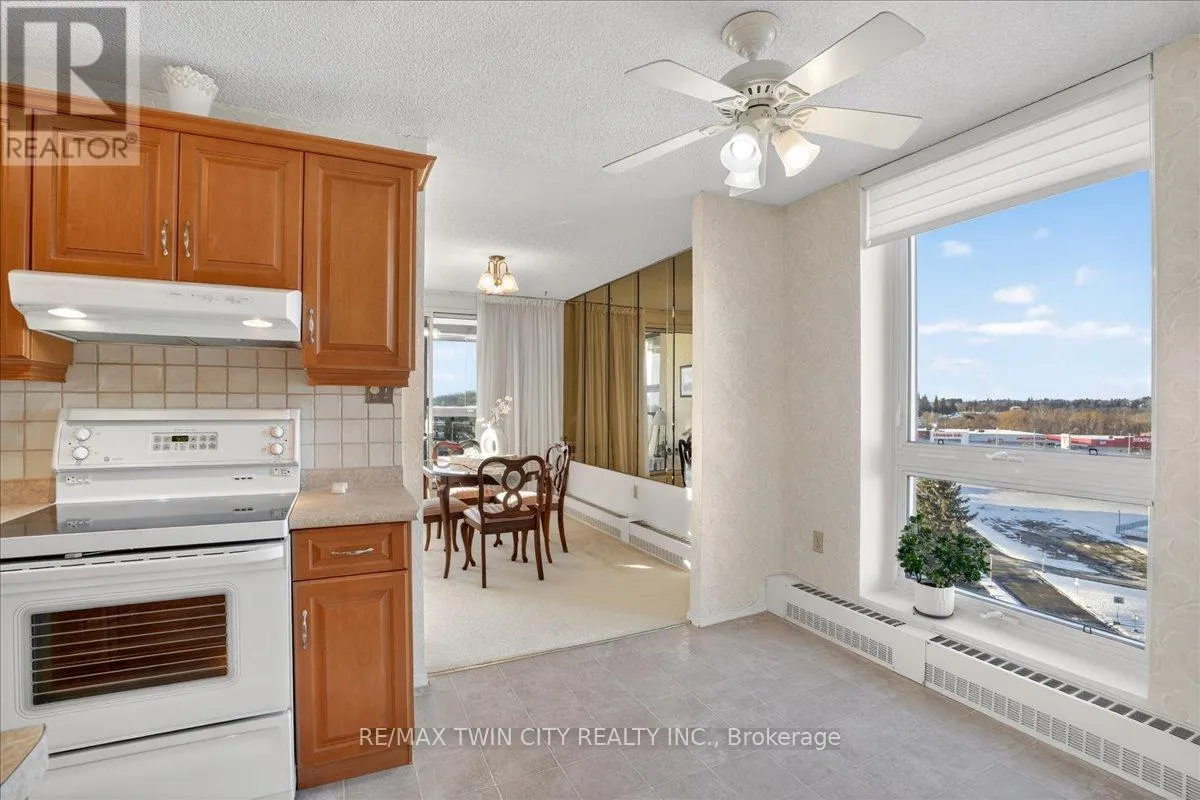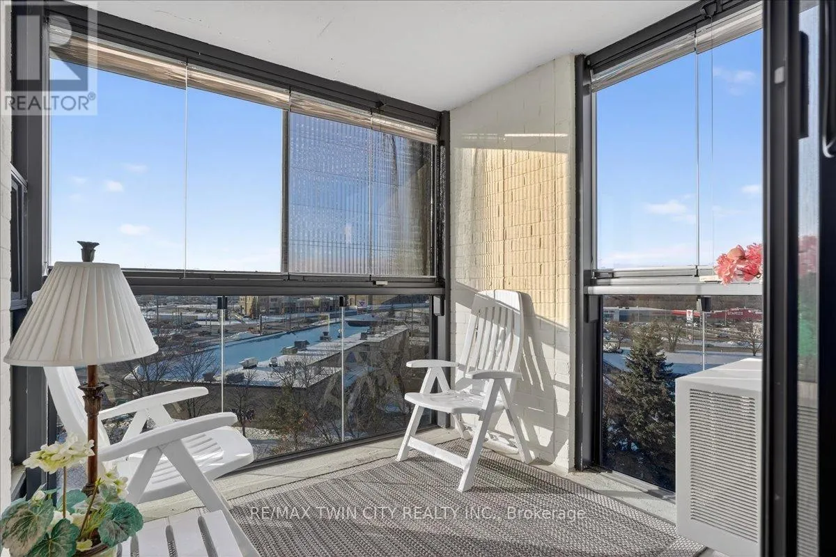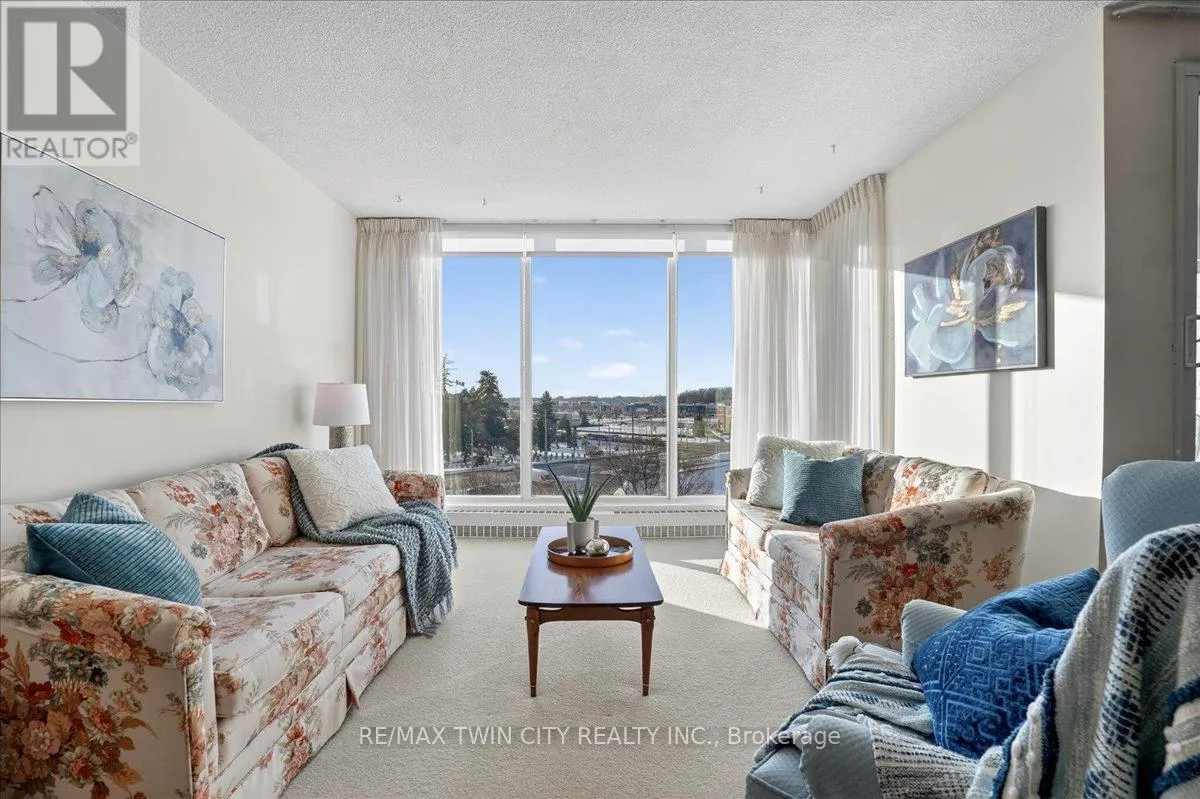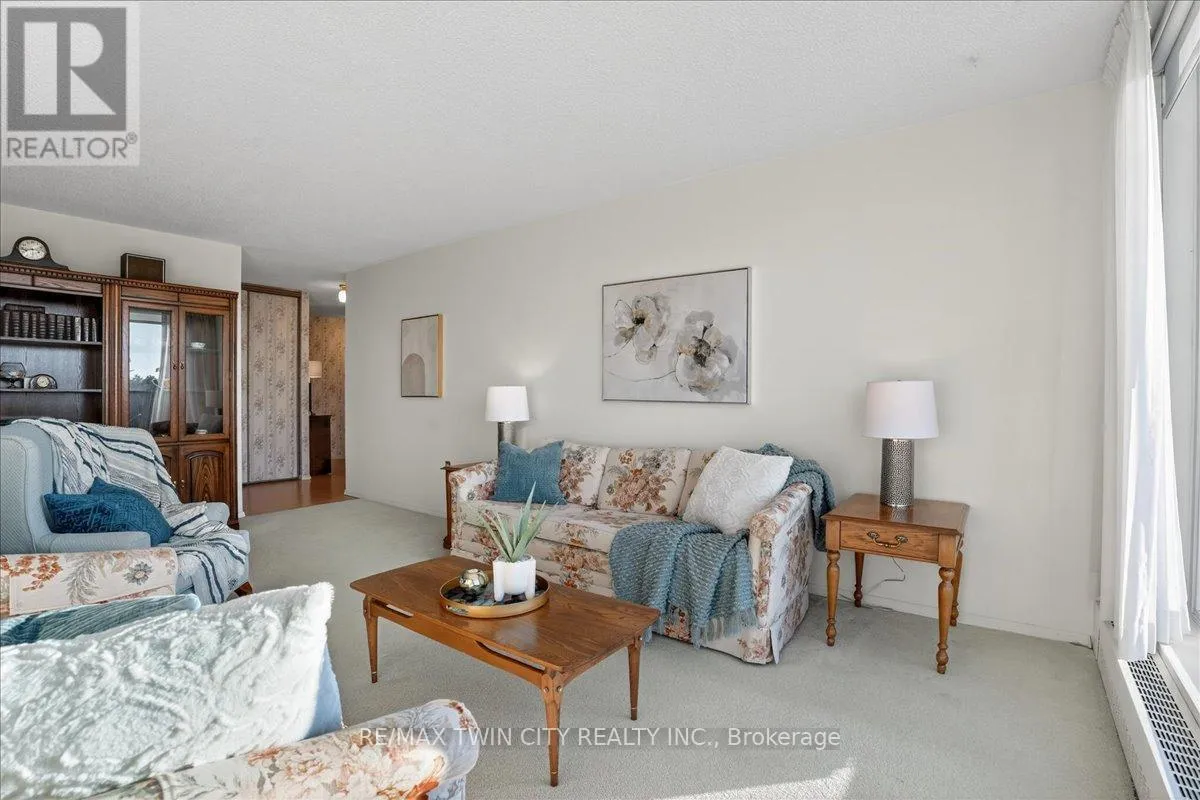 Cross Streets: Woolwich Street. ** Directions: Speedvale Avenue East to Woolwich Street to Woodlawn Road East. Super bright, 1380 sq ft CORNER unit in sought after complex of Riverside Park area in Guelph. HEAT, HYDRO, WATER included in condo fees! Excellent layout with floor to ceiling windows, sunroom/balcony with great sunset views. Large open concept design featuring formal Living, Dining rooms and spacious eat-in Kitchen offering ample cabinets and counter space. 3 good sized Bedrooms, one is used as a Den/Office with built-in wall unit, 3pc main bath and the Primary with 2pc ensuite. Tons of storage, in-suite laundry and one assigned parking space in covered garage. Very clean and airy home. Well maintained building with many amenities including: tennis courts, outdoor pool, sauna, games room, gym, guest suite, community rooms, library, workshop and more. Located in walking distance to Riverside Park, shopping, restaurants, trails, public transit and easy access to major routes. (id:27476)
