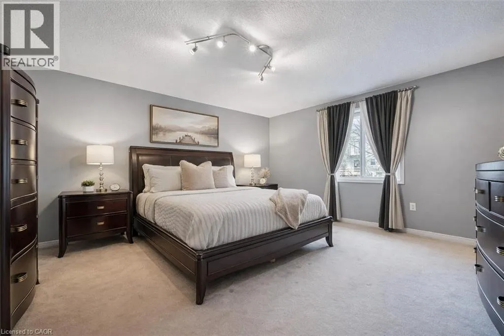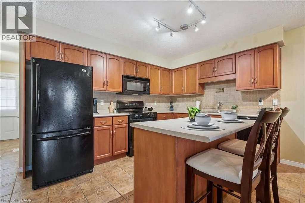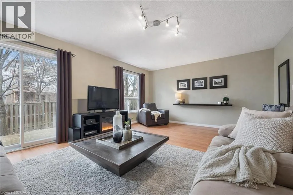 Gordon St 38-210 Dawn Ave is a beautifully maintained 3-bdrm, 2.5-bathroom townhouse W/finished basement, located in a sought-after south-end complex W/easy access to everyday amenities, the University of Guelph & Hwy 401! Step inside to bright open-concept main floor designed for everyday living & entertaining. Spacious kitchen features stylish tiled backsplash, ample counter space & large centre island W/bar seatingâperfect for casual meals or hosting friends. It flows seamlessly into dining area & bright living room, where a large window & sliding doors fill the space W/natural light. Convenient 2pc bath completes this level. Upstairs the generous primary bdrm offers a large window, W/I closet & ensuite with shower/tub combo. 2 add'l spacious bdrms provide lots of closet space, complemented by a well-appointed 4pc bathroom W/oversized vanity. 2nd-floor laundry makes daily routines that much easier. Finished basement adds valuable additional living space with 2 egress windows & pot lighting, creating a bright & inviting environment. Whether youâre looking for a rec room, gym, hobby space or guest suite this level offers incredible flexibility. There is a bathroom rough-in as well. Step outside to enjoy the private back deck complete with tall wood side fencing for added privacy, perfect for BBQs or relaxing with family & friends. Short walk to Pergola Commons where youâll have access to groceries, restaurants, fitness centres, LCBO & more. Nature lovers will appreciate the nearby walking trails & easy access to Preservation Park, offering scenic forest paths & peaceful green space. With multiple parks, highly rated schools & bus stop just seconds away with direct access to UofG, this is an ideal location for families, professionals & students alike. Whether youâre looking for a stylish family home or a smart investment in a high-demand area, this is an opportunity you wonât want to miss (id:27476)