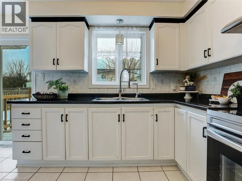 Welcome to this stunningly renovated, sun-drenched home offering modern elegance and functional design. The main floor features an inviting open-concept living/dining area, a stylish kitchen, and a convenient laundry room. Upstairs, discover four spacious bedrooms, including a luxurious primary retreat with his & her closets and a private ensuite. **LEGAL BASEMENT SUITE** with a separate side entrance is a standout feature, offering two bedrooms (one with a walk-in closet), an open-concept kitchen/living area, and a 3-pc bath-ideal for rental income or multi-generational living. Enjoy outdoor hosting on the massive 13'x15' deck overlooking a deep backyard. Parking for 5 cars (2-cars garage + 3 on driveway). Unbeatable location: walk to Costco, Zehrs, & LCBO; mins to Stone Road Mall, University of Guelph, and Downtown. AAA tenant willing to stay or vacant possession available. Don't miss out! (id:27476)