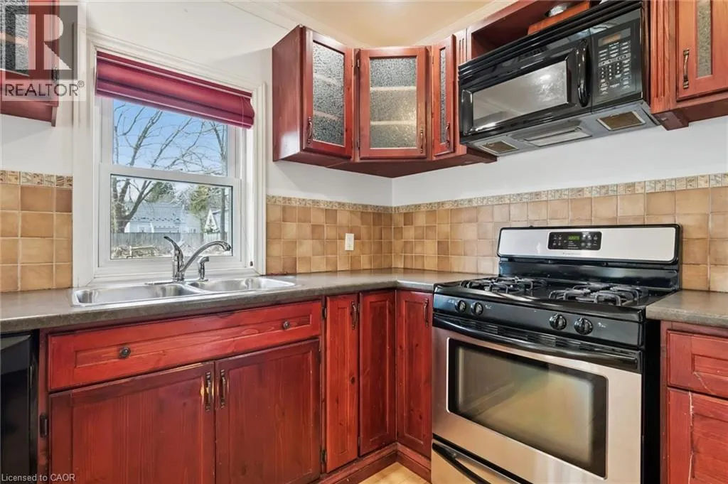 Welcome to 184 Stevenson St N, a centrally located bungalow in Guelph. This property offers exceptional versatility for both homeowners and investors. Set on an expansive 60 x 213 ft lot, this property presents incredible future potential, including the opportunity to add an ADU (pending city approval) and create up to 3 to 4 units. The main floor features a bright and functional layout with hardwood flooring in the principal living areas, freshly painted throughout, 2 spacious bedrooms, a 3 piece bathroom, and a separate dining room with walkout to a private patio and pergola, perfect for outdoor entertaining. The massive backyard offers plenty of space for gardening, pets, and future possibilities. A separate side entrance leads to the fully refinished lower level, complete with high ceilings, 2 additional bedrooms, another bathroom, and durable vinyl flooring throughout. With its layout and ceiling height, this space is ideally suited for a 2 bedroom income suite with potential rental income of $2,100+ per month. Located close to John F. Ross CVI, transit, and everyday amenities, this is a rare opportunity to own a property with both immediate comfort and long term upside. (id:27476)