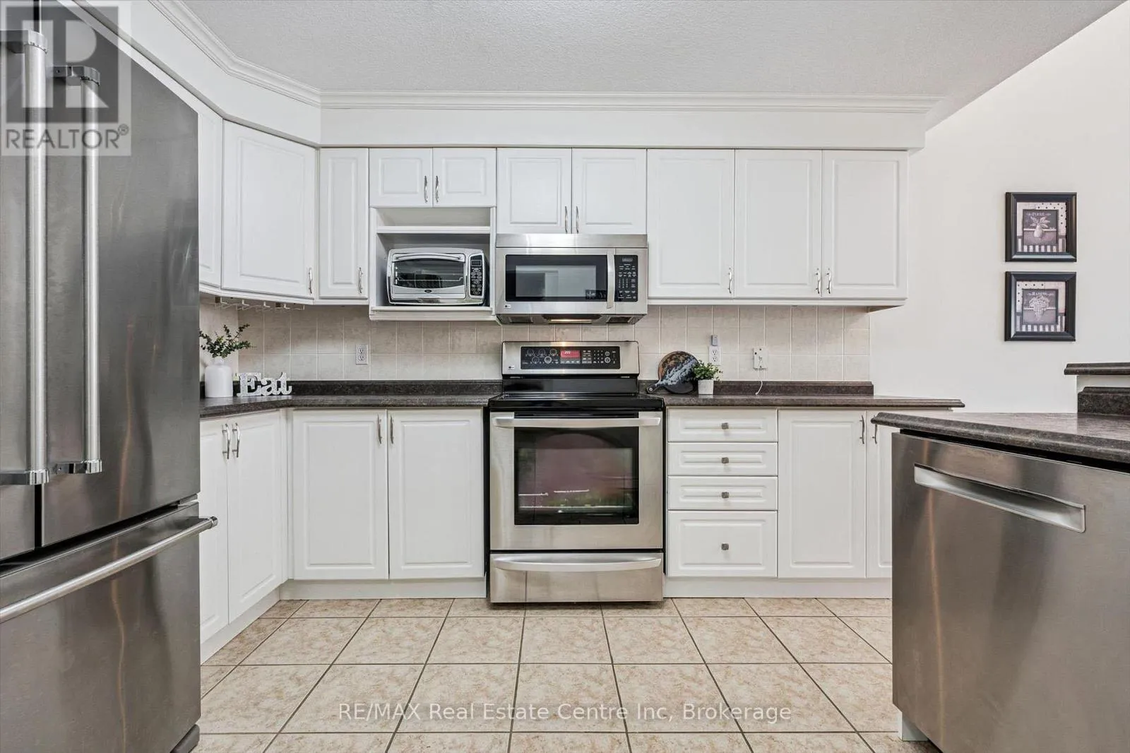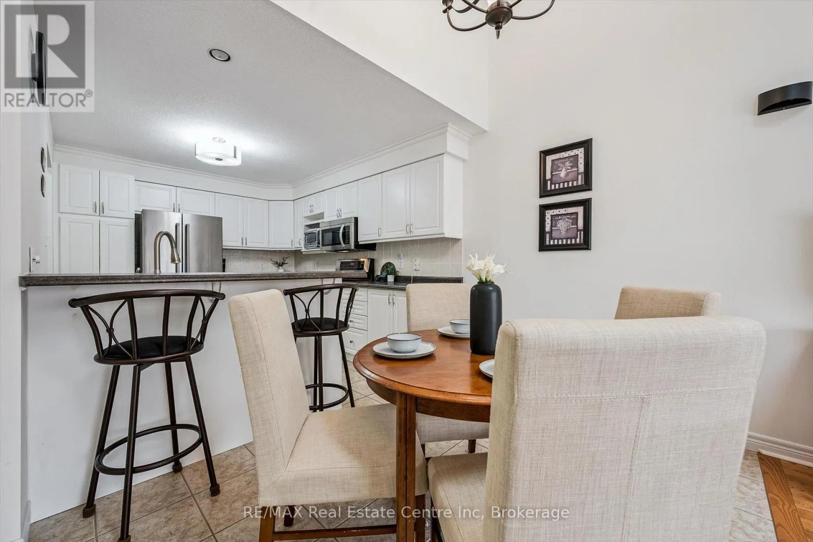 Grange Rd Welcome to 33 Thornton St, an elegant 2-bedroom, 2-bathroom bungaloft townhouse tucked away on a quiet street in a central neighbourhood! Offering low-maintenance, main-floor living, this home is perfectly suited for downsizers or young professionals. Upon entering, you're greeted by a bright front room with a double closet, offering incredible versatility, ideal as a home office, sitting area, or easily converted into a third bedroom if needed. The heart of the home is the open-concept kitchen, dining and living area. The kitchen features fresh white cabinetry with built-in drawers, generous counter space, tiled backsplash, S/S appliances and a functional breakfast bar, flowing seamlessly into the dining space-perfect for everyday living & entertaining. The spectacular living room is filled with natural light & showcases beautiful vaulted ceilings, creating an airy, inviting atmosphere, with a walkout to the backyard that extends your living space outdoors. Designed with everyday ease in mind, the main floor features a spacious primary bedroom complete with a walk-in closet, an additional double closet and a well-appointed 3-piece ensuite with a walk-in glass shower and oversized vanity. Convenience continues with main-floor laundry, making day-to-day living effortless. Upstairs, the loft with a cozy fireplace adds another layer of flexibility, perfect as a second living area for movie nights, a workspace or a guest retreat-alongside an additional bedroom and a full 4-piece bathroom with a shower/tub combo, ideal for visitors or extended family. Step outside to enjoy the private, fully fenced backyard featuring a spacious resin deck, perfect for summer barbecues or quiet mornings with coffee-plus a shed for additional outdoor storage. Located in a highly desirable area, you'll enjoy access to scenic walking trails along Hanlon Creek, nearby parks and convenient proximity to shopping, restaurants & everyday amenities, with easy access to major routes for commuting (id:27476)