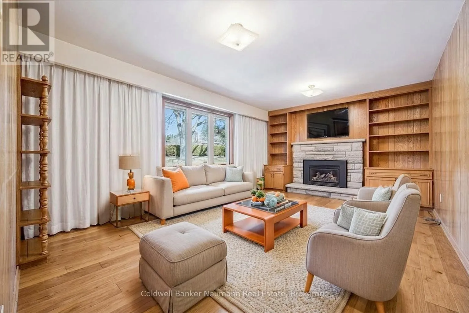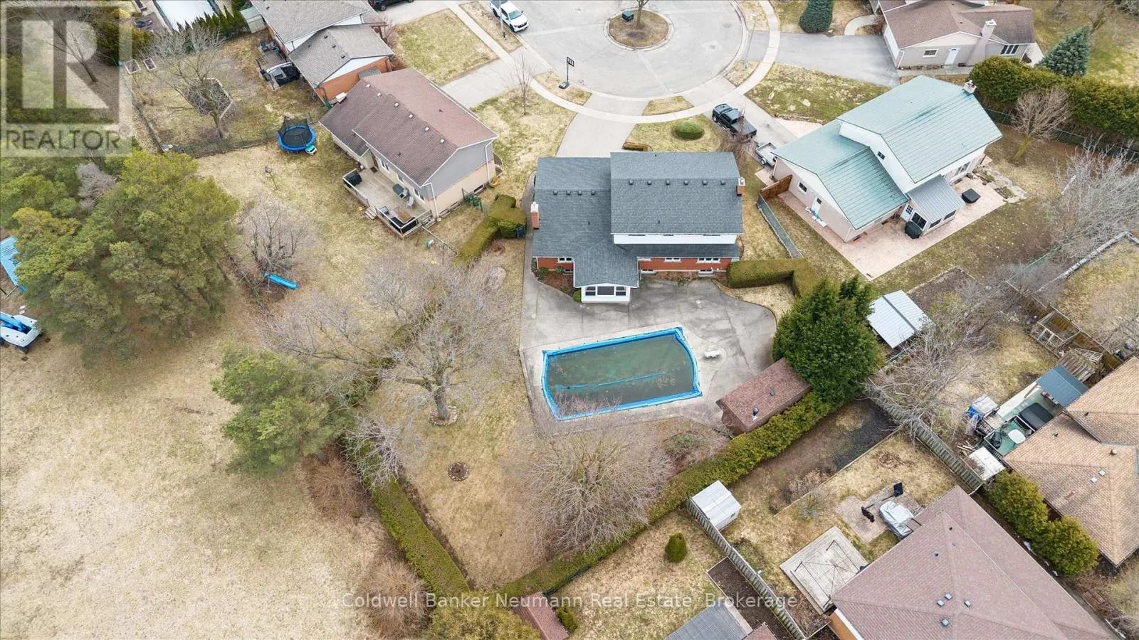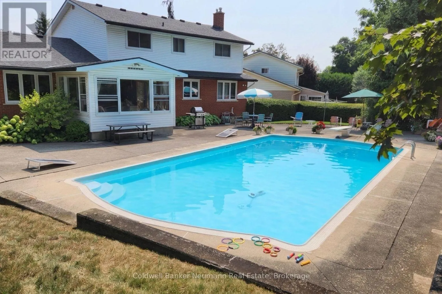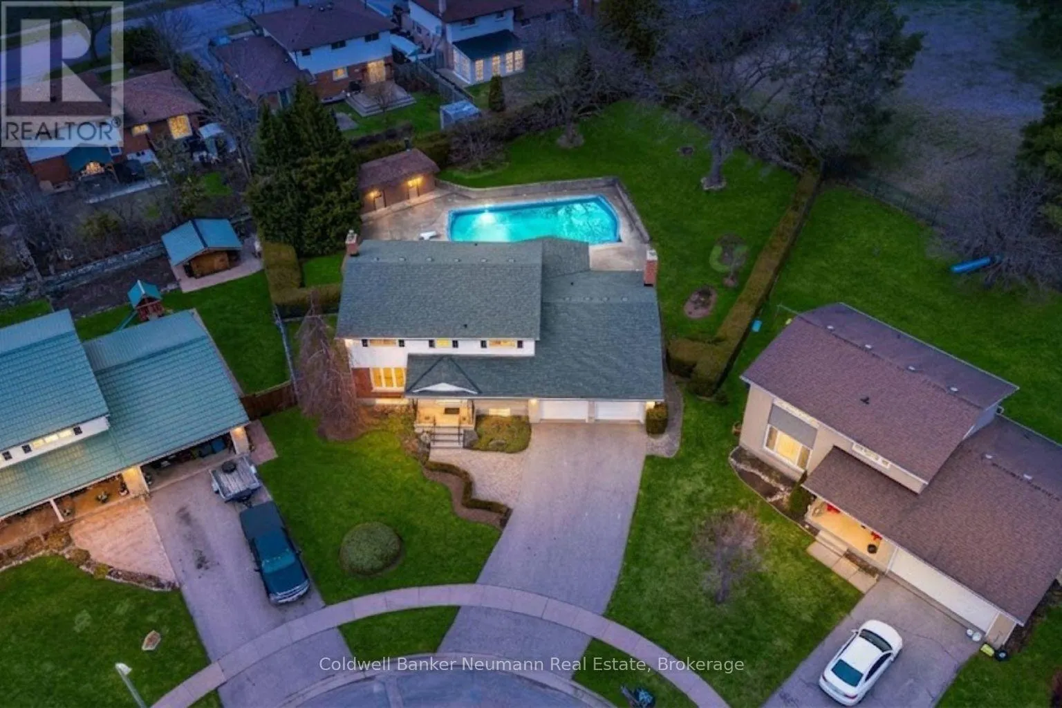 Cross Streets: Speedvaale E/Victoria N. ** Directions: Speedvale to Victoria cross Victoria Carmine on left side. Ready for summer? A rare opportunity to own a meticulously maintained, one-owner, four-bedroom two-storey home ideally situated on a quiet north-end cul-de-sac. From the moment you arrive, pride of ownership is unmistakable. The main floor features a large living and dining room, a generous eat-in kitchen, and a convenient 2-piece powder room. The spacious family room boasts a newer gas fireplace, and the four-season heated sunroom overlooks a breathtaking backyard retreat, complete with a 22' x 42' Gunite inground pool, expansive concrete patio, and professionally landscaped, fully fenced yard perfect for family gatherings, summer BBQs, and reunions. A large shed/pool house accommodates all pool equipment and includes two change rooms and storage. The fenced yard also provides a safe, protected space for children and pets, and the tranquil setting is ideal for year-round birdwatching. Upstairs, four generous bedrooms with ample closet space offer comfort and privacy for the whole family. A 3-piece ensuite and a 5-piece main bath complete the upper level. The fully finished basement is an entertainer's dream: a rec room, den with cedar closet, and a games room featuring a professional-grade snooker table with cues, balls, and scoreboard included. Unwind in the health-improving cedar sauna with accompanying shower, or take advantage of the separate laundry room with double cement sinks. The oversized two-car garage easily fits two vehicles, large bins, and overhead storage, with new insulated doors and openers. Out front, a quiet boulevard invites classic neighbourhood pastimes including road hockey, basketball, and community connection in a truly child-friendly setting. Conveniently located near JF Ross and Eastview Park, schools, shopping, transit, Guelph Country Club, Guelph Lake Conservation, Riverside Park, hospital, and Highway 7 with quick access to Rockwood, Acton, Georgetown, and Toronto. A truly exceptional place to raise your family. Don't miss this one! (id:27476)