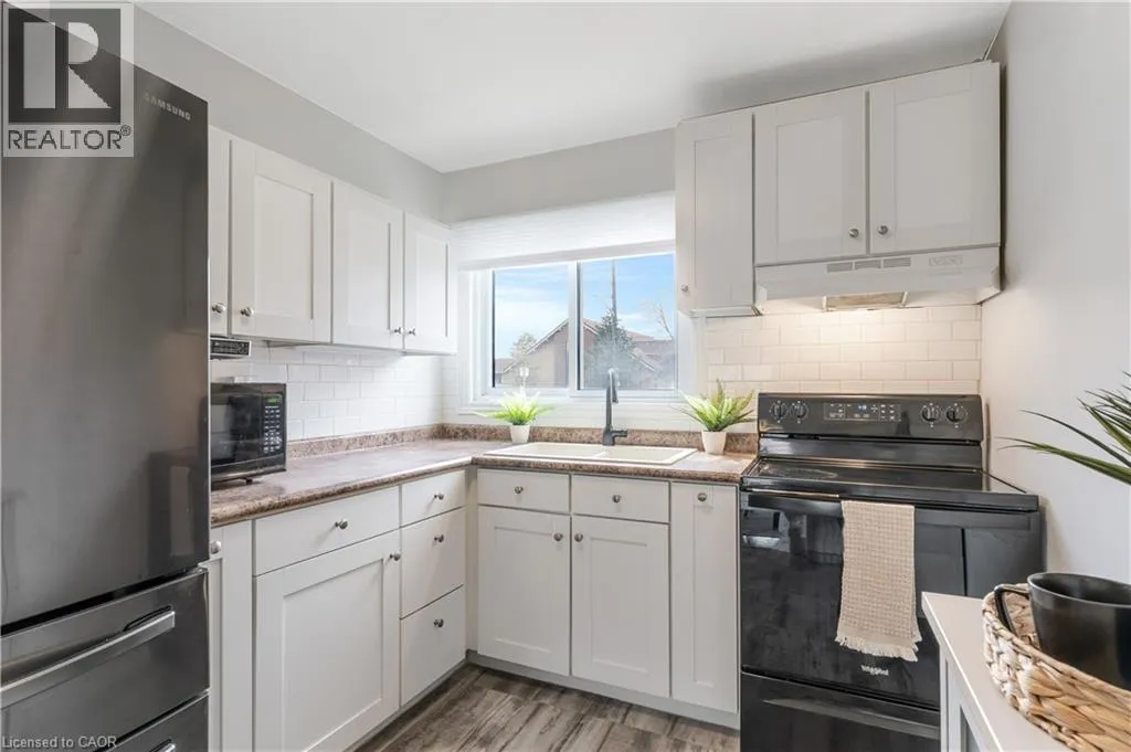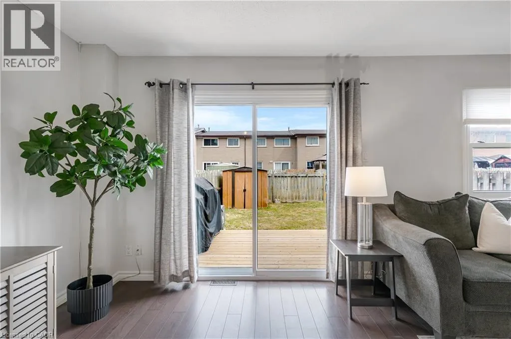Welcome to this beautifully updated 3-bedroom, 2-bathroom townhome located in Guelphâs desirable north end. This move-in ready home has seen numerous recent upgrades including fresh paint (2026), finished basement (2026), updated laminate flooring, newer windows and doors (2022), furnace (2021), fridge (2023), washer and dryer (2023), roof (2024), and a new deck (2025). The finished basement provides additional living space perfect for a rec room, home office, or gym. Conveniently located close to schools, parks, shopping, public transit, and major commuter routes. Condo fees include cable and internet with Rogers, adding extra value and convenience. Ideal for first-time buyers, families, or investors. (id:27476)
