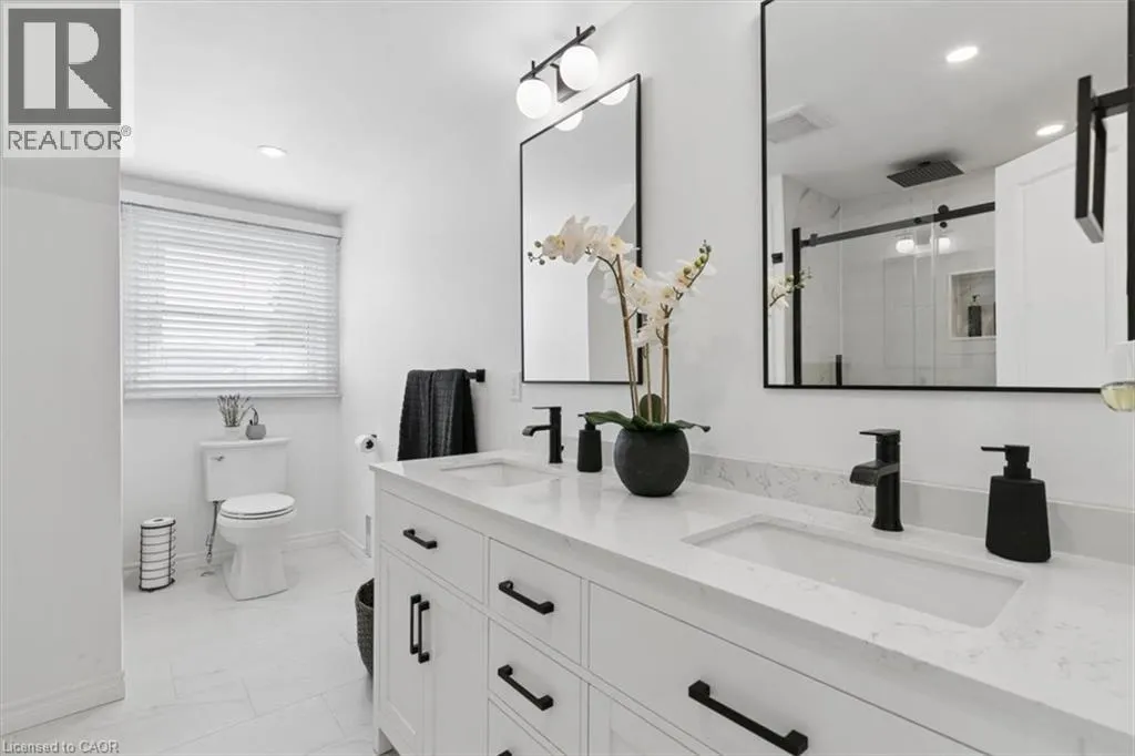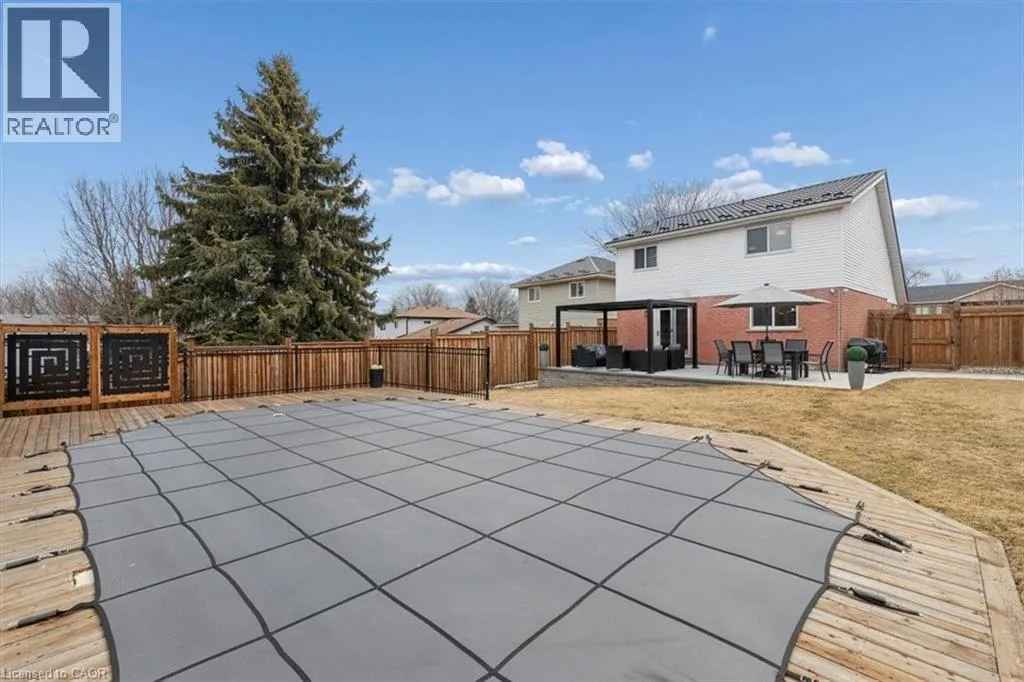 Like a page from a magazine...this home won't disappoint! Neatly designed west end home is bursting with pride, offering a neutral palette with a modern flair. The updates are endless with recessed lighting, and hardwood flooring, that flows seamlessly throughout. The great room anchors this home, and leads on to a dedicated dining room with custom built-ins, and convenient coffee bar, and leads naturally into a stylish custom kitchen accented with quartz countertops and backsplash, pantry, and terrace doors that look on to your backyard oasis. The upper level is equally as inviting, with 3 generous sized bedrooms...all with laminate flooring, and custom closet doors, plus a luxurious bath, complete with double sinks, quartz countertops, glass doors to the bath, and the warmth of heated flooring. A finished basement with a side entrance adds even more versatility with a massive rec room boasting an electric fireplace, flanked by inset shelving, 3 pc bath, laundry, and plenty of storage. The outdoor space is spectacular..and ready for summer fun! The fully fenced yard is outstanding, with intricate metal inserts, a heated pool, and a patio, complete with a gazebo and the landscaping is stunning! This home ticks all of the boxes and more. (id:27476)