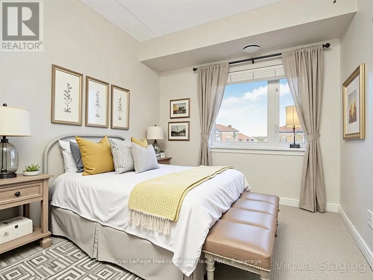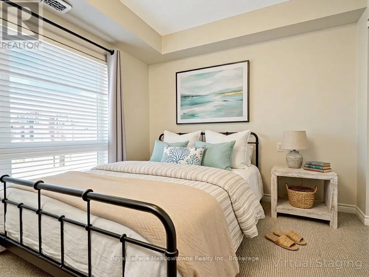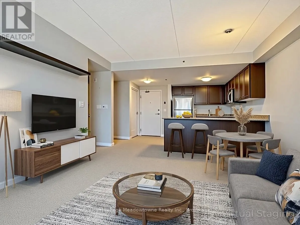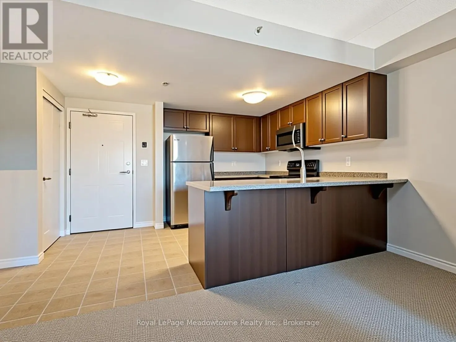 Cross Streets: Clair Rd E/Goodwin Drive. ** Directions: Gordon St to Clair Rd E to Goodwin Drive. TWO bedroom plus DEN condo located in Guelphs south end. Close to all amenities and providing easy access to the 401and public transit, this spacious and bright condo fits just about every buyer! Whether you are a first time buyer, a retiree looking to downsize or an avid investor, this unit is for you!! The large floorplan boasts a stylish kitchen with stainless steel appliances and plenty of counterspace, including a breakfast bar. The attached den has so many purposes, can be used as a dining room, a home office or possibly a hobby room, so many options for this space. The spacious living room opens up to a private balcony, a lovely area to enjoy your morning coffee or a quiet area to read your favourite book. Two large bedrooms and a 4pc bathroom are also situated in this floorplan. New furnace/AirCon 2026. (id:27476)