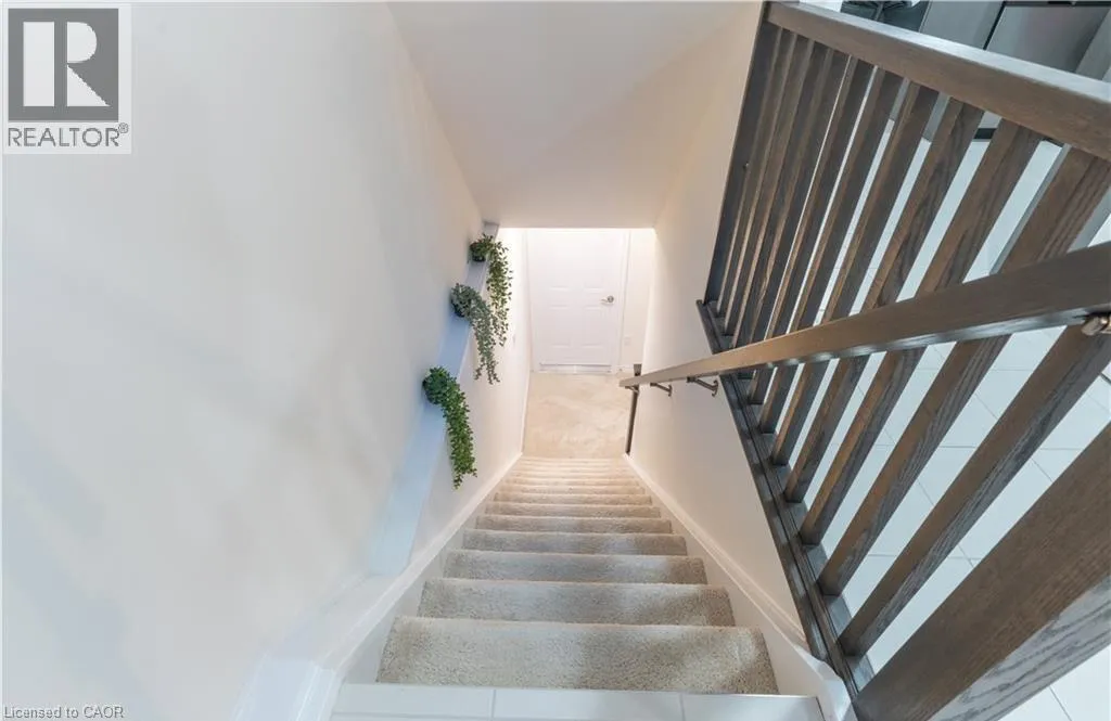 Victoria North / Woodlawn Welcome to this beautifully designed stacked townhome at 85 Mullin Drive Unit #20B, Guelph, where style, functionality, and location come together seamlessly. The main level offers a spacious 2-piece bathroom and an open-concept living area with a walkout to a private deckâperfect for summer BBQs or relaxing by a fire table. Downstairs, the rare walk-out basement adds brightness and convenience, featuring two generously sized bedrooms with large windows, a full 3-piece bathroom, in-unit laundry, cold storage, and hidden utility space for a sleek, uncluttered feel. Enjoy parking right at your front door, ample visitor parking, and a vibrant, family-friendly community filled with parks, splash pads, trails, and nearby conservation land. This move-in-ready gem truly checks all the boxesâmodern comfort in a peaceful, connected neighborhood. (id:27476)