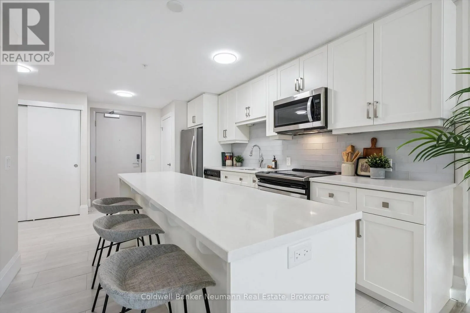 Cross Streets: Alice St./ Elizabeth St. ** Directions: MaDonell to Elizabeth, to Arthur St. S or Neeve to Ontario to Arthur St. S. Built in 2021, this bright and spacious one bedroom + DEN condo includes one very convenient UNDERGROUND PARKING SPOT and a HEATED STORAGE LOCKER. Positioned on the 5th floor, this beautiful unit offers a well-designed, open-concept layout with durable laminate and ceramic flooring throughout (no carpet) and an abundance of natural light. The upgraded kitchen features granite countertops, a large island with breakfast bar seating, and stainless steel appliances, all included. The generous bedroom offers both a walk-in closet and a separate linen closet. Thoughtful NEW updates include new high end light fixtures and custom blinds, giving the space a polished, move-in-ready feel. The versatile DEN provides flexible space for a home office, guest bedroom, dining area, or extra storage. The living and dining area flows seamlessly to a private 115 sq ft patio, ideal for relaxing or entertaining. Enjoy views overlooking the river and courtyard, along with glimpses of downtown. Additional features include in-suite laundry, and condo fees that cover heat and water for added convenience and value. Residents also enjoy premium amenities including a fully equipped gym, party room, speakeasy lounge, and pet cleaning station. Situated in the heart of downtown Guelph, this secure, well-maintained building offers exceptional walkability. Steps to shops, restaurants, the GO Station, transit, groceries, trails, parks, and schools, this location delivers the best of urban living in a vibrant, connected community. Located in the third building of the sought-after Metalworks collective. (id:27476)