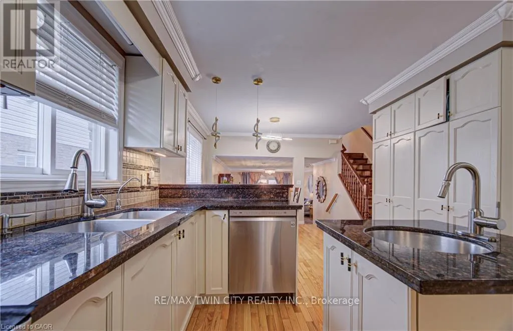 CLAIRFIELDS DR E / FARLEY DRIVE BEAUTIFUL BACKSPLIT IN SOUTH GUELPH WITH LEGAL 1 BEDROOM APARTMENT/IN-LAW. Welcome to 161 Farley Drive, nestled in a sought-after neighbourhood in South Guelph. This beautiful 4-level backsplit offers over 2,700 sq ft of finished living space, including a fully finished basement with a separate entrance and legal apartment-perfect for extended family or a mortgage helper. The main floor features hardwood flooring throughout, a bright, open-concept layout with a front office and spacious living room, with stairs leading to the upper level. The large kitchen is equipped with stainless steel appliances, granite countertops, a breakfast bar, and a generous dining area that overlooks the sunken family room. French doors from the family room lead out to the back patio, creating a seamless indoor-outdoor living experience. Off the living room, you'll find a convenient mudroom with garage access, along with a main floor bedroom. Over $6,000 in upgrades on chandeliers and fixtures. Upstairs offers 3 generously sized bedrooms and a fully renovated 4 piece bathroom. The primary suite includes its own private 3-piece ensuite. The fully finished basement features a legal 1-bedroom apartment complete with its own kitchen, living area, bedroom, and 4-piece bathroom. With a separate entrance, this space presents an excellent opportunity for rental income or multi-generational living. The backyard is fully fenced with a wooden shed, patio stones with a high-quality backyard landscaping project completed in 2025 featuring white gravel. Parking for 3 vehicles including 2 parking spots on the driveway and a 3rd parking space inside the garage. Conveniently located just minutes from parks, schools, public transit, restaurants, shopping, and all essential amenities. (id:27476)