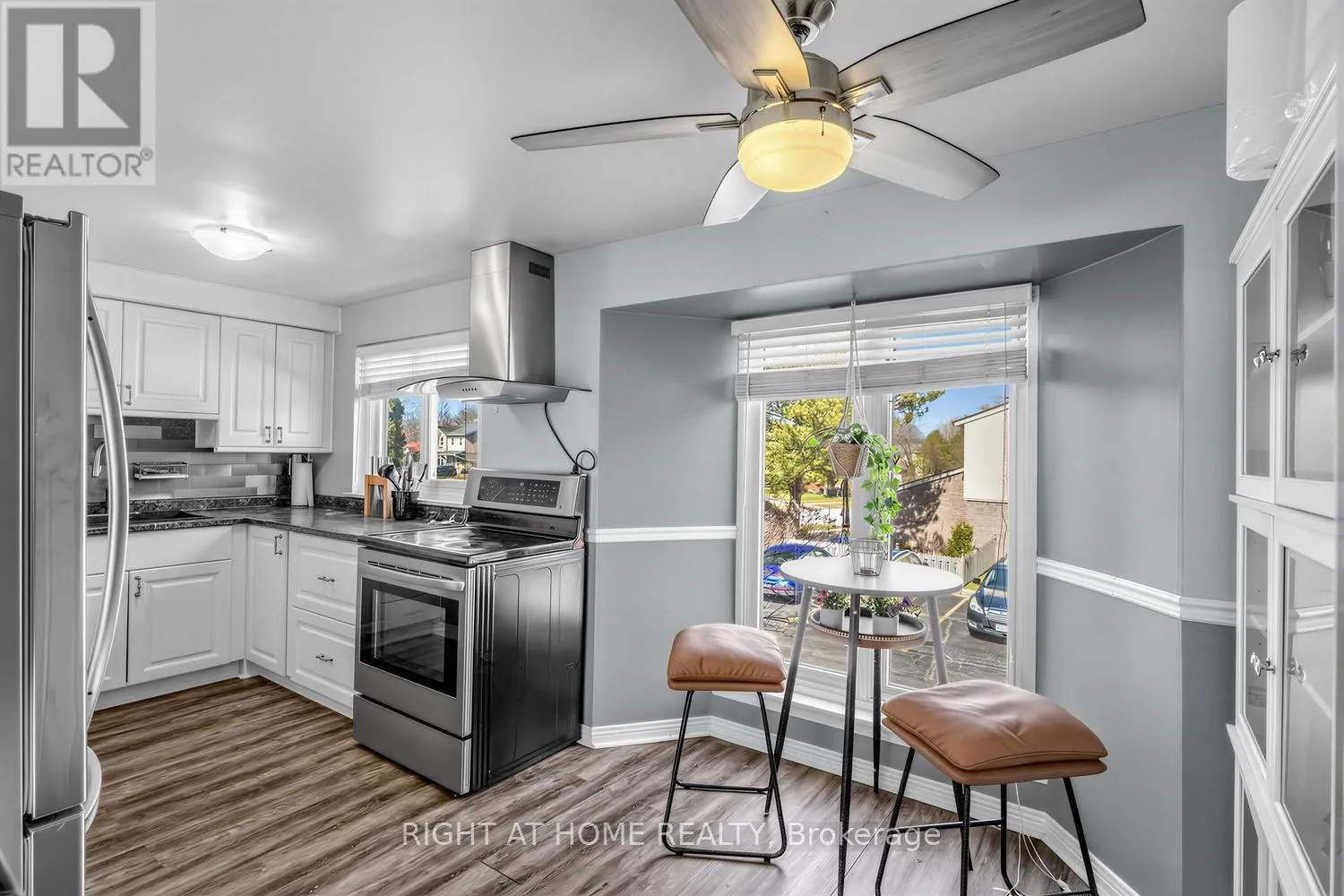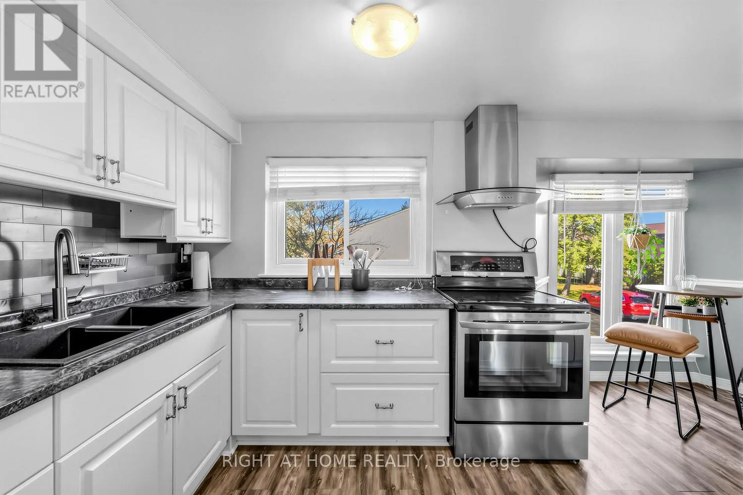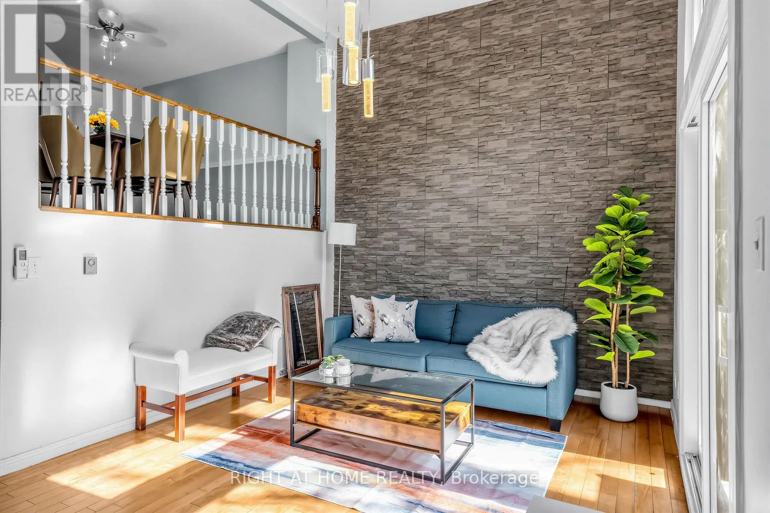 Cross Streets: Elmira Road / Fife Road. ** Directions: Fife Road and Elmira Road. Welcome to Worton Ave - an established, low-maintenance townhouse community in Guelph's sought-after west end. Minutes to Costco, Zehrs, Parks, the West End Rec Centre, YMCA, medical clinic and shops just steps away. Quick Hwy 6 access, perfect for an easy commute. This stylish 3-bedroom home features a bright open living room with soaring 2 storey ceiling, a cozy gas fireplace, hardwood floors, large transom window, sliding glass door walkout to a private fenced yard with deck and covered gazebo, ideal for hosting or unwinding. The elevated dining area adds a modern, airy feel, while the kitchen offers great flow, updated backsplash, stainless steel appliances, plenty of storage and a generous breakfast nook. Wood, laminate and tile flooring throughout - no carpet. Upstairs features 3 spacious bedrooms, hardwood floors and a full bath with new vanity and sink. Primary bedroom is large enough for a king bed with room to spare, wall to wall closet and large window. The lower level adds flexibility with a bonus room (perfect for a home office or gym), large crawl space for storage, laundry room and a rare 2-piece bath - an uncommon upgrade in this complex. This modern updated townhouse offers over 1,300 square feet of living space. Enjoy a quiet, well-insulated unit that enhances privacy and helps keep energy costs down. Complete with attached garage, private driveway, and high-efficiency heat pump for heating and cooling. Turn-key, low-maintenance living in a prime location, perfect for busy professionals or a growing family. (id:27476)