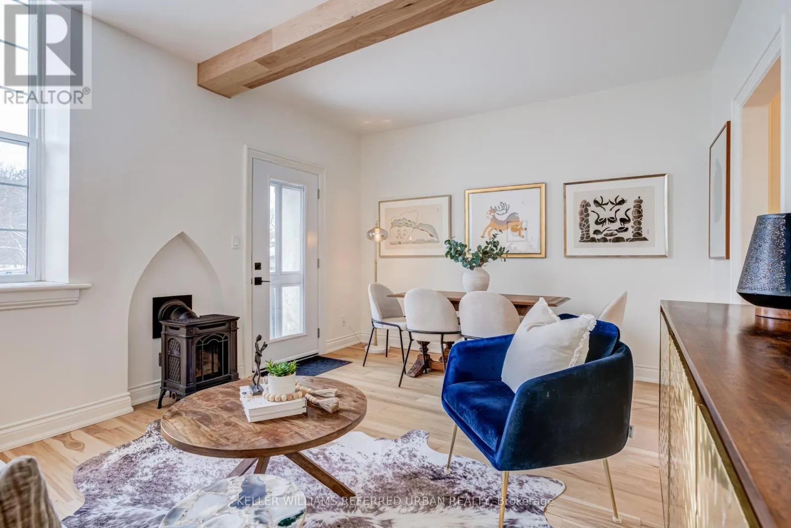 From downtown, down Eramosa hill, turn left on Arthur St N just past Norwich st on the left. Parking on right side of street ***Good Friday Open House! 2:00-4:00pm!*** Get in to see this oneThis Fully renovated up to date character home is full of unique charm in a premium location of downtown Guelph! This spacious (apx. 1270 square feet!) and cozy stone residence has been fully renovated and modernized from top to bottom by local craftsman in 2023. Incredible low maintenance fee that includes Storage Locker, Parking, exterior maintenance including roof, snow removal, windows, fences, landscaping including tree trimming, stonework, building insurance, all for under 80 cents per square foot!! (Remember, maintenance fees are calculated based on property square footage this is very large 2 bedroom!) New *Heated floors*, new kitchen and fully renovated bathrooms, fully modernized. Ideally located 5 min walk to downtown Guelph restaurants, theatres and shops. Overlooking the river, this "downtown" end unit townhome is surrounded by nature with beautiful Norwich walking bridge and Wolfond Park at your doorstep. This fantastic two-bedroom, two-storey layout features large windows and a private fully fenced backyard, perfect for gardening and relaxing outdoors. Both bedrooms are generously sized and offer ample storage, charming dormer windows/reading nooks, upgraded second-floor laundry(!), and fully modernized and stylish four-piece bathroom with heated floors. The main level includes brand new kitchen complete with *heated!* artisan tile flooring, convenient main floor two-piece powder room, and a gorgeous and inviting living and dining room, cosy this time of year with gas fireplace and access to backyard for entertaining and gardening in the summer. This unit Includes parking and your own storage locker! Walking distance to downtown, scenic trails, and a park right next door. A rare opportunity to own a unique downtown updated home that you can just move right into and enjoy the low maintenance lifestyle in a property that truly feels like home. Good Friday Open house 2:00pm-4:00pm! (id:27476)