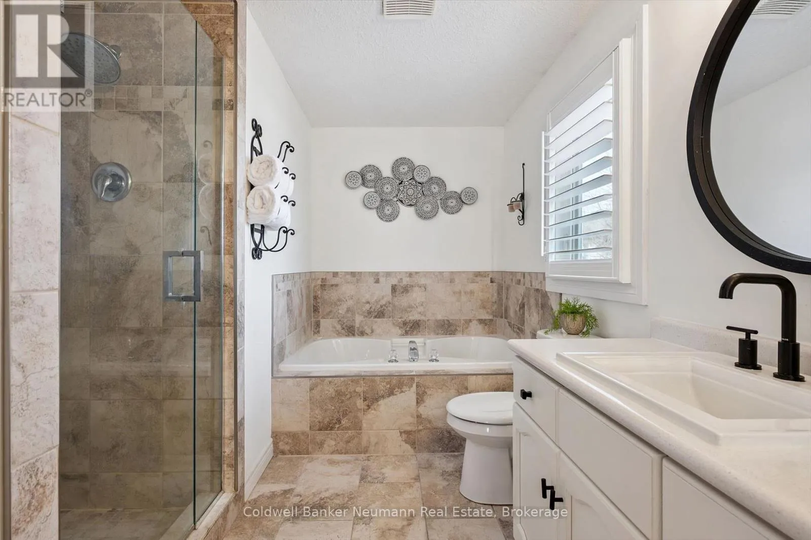 Cross Streets: Pheasant Run. ** Directions: Off Pheasand Run. In-ground pool in Kortright Hills!!! This beautiful 4+1 bedroom home is nestled in a highly sought-after neighbourhood and offers the perfect blend of comfort, style, and functionality. This home has been meticulously taken care of and updated over the years. The private, fully landscaped backyard is a true retreat, featuring a stunning inground saltwater pool and relaxing hot tub-ideal for entertaining or unwinding. Inside, you're welcomed by soaring ceilings in the bright formal living and dining room, creating an elegant and airy atmosphere. The spacious open-concept kitchen has been tastefully updated with stone countertops and flows seamlessly into the cozy spacious family room with a gas fireplace. A convenient main floor laundry room adds to the home's practicality. Upstairs, you'll find four generous bedrooms, including a luxurious primary suite complete with a walk-in closet and spa-like ensuite. The home is entirely carpet-free and includes a large main bathroom for the additional bedrooms. The fully finished basement offers exceptional versatility, with a large recreation area, flexible space for a home gym or office, a fifth bedroom, and a modern 3-piece bathroom-perfect for guests or extended family living. (id:27476)