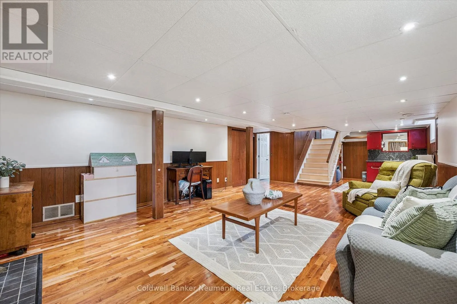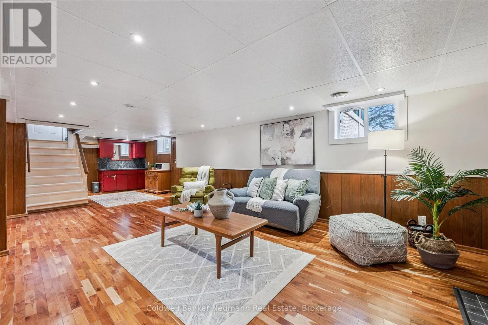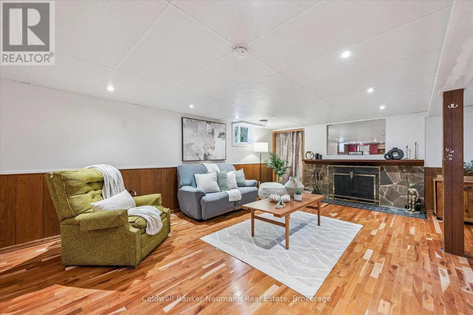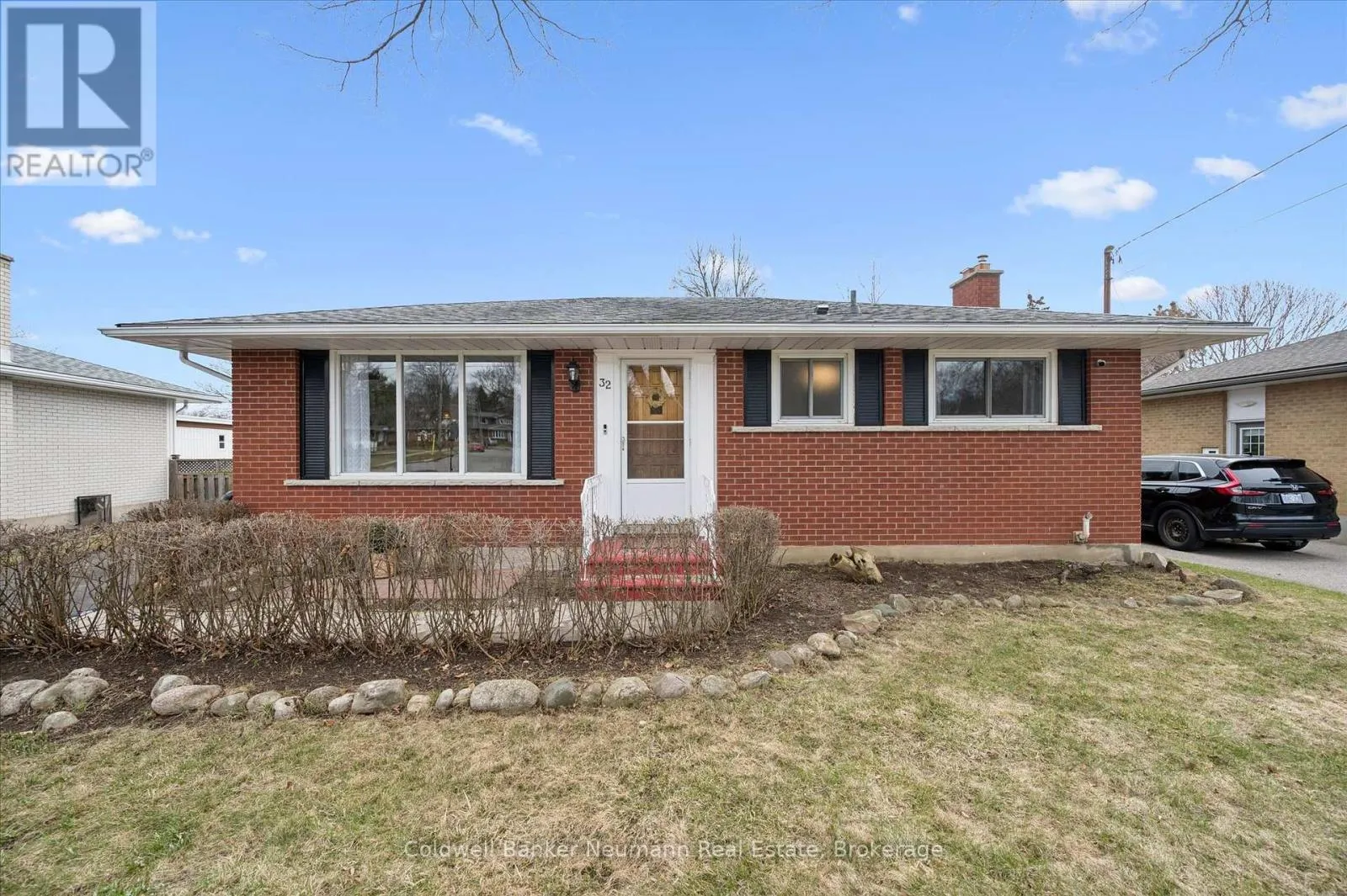 Cross Streets: Paisley Rd. ** Directions: north off of Paisley Rd. 32 Sleeman Avenue is a charming red brick bungalow in a family-friendly neighbourhood with quiet streets, mature trees, and a strong sense of community. Perfect for families, downsizers, or long-term homeowners, this home will meet the desires of many. The bright kitchen was updated in 2024 and offers a fresh, modern space for cooking and entertaining, complete with newer appliances (2021) and an intricate backsplash. Three main-floor bedrooms feature hardwood floors and large windows, while the living room shines with a spacious bay window overlooking the outdoors. Two full bathrooms have been recently renovated with modern finishes, adding an updated and modern feel to the home. Sliders off the kitchen (2021) open to a large, newly built deck (2025), ideal for dining, relaxing, or entertaining. This lot offers over 7000 sq ft with an expansive backyard that includes two sheds and plenty of space for gardening, play, or even a pool. The finished basement adds versatile living space with a fully functioning wood-burning fireplace, perfect for cozy family gatherings or hobbies. A detached, single car garage, and a private driveway accommodate up to four vehicles. Close to groceries, restaurants, pharmacies, gas stations, and with easy commuter access, this home offers a prime location and a lifestyle that stands the test of time. (id:27476)