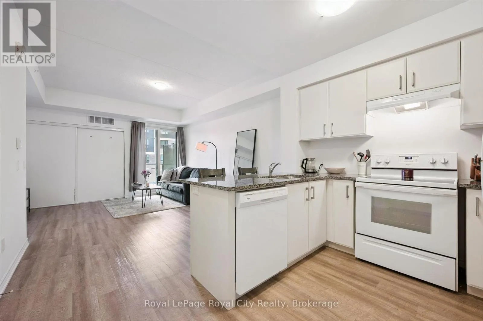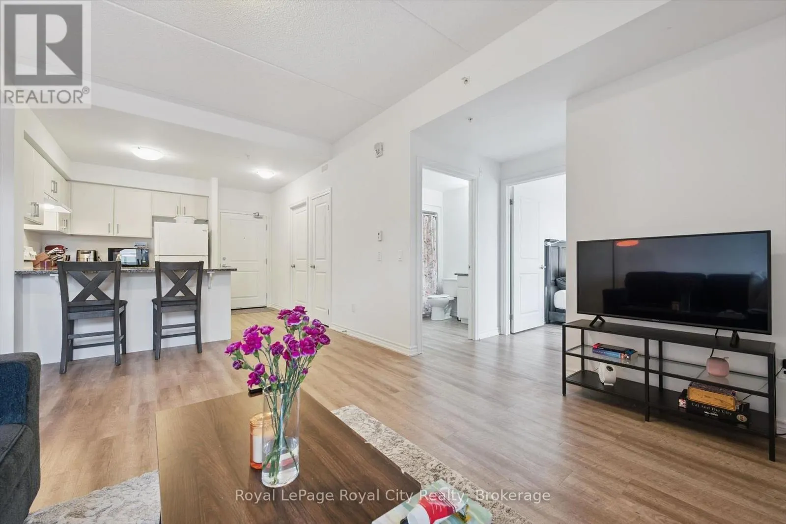 Cross Streets: Edinburgh Rd S & Gordon St. ** Directions: Edinburgh Rd S to Gordon St. A beautifully maintained and thoughtfully designed 1+den condo in the sought-after south end of Guelph, offering the perfect blend of style, functionality, and location. This bright, open-concept unit features a spacious layout with a modern kitchen that flows seamlessly into the living and dining area-ideal for both everyday living and entertaining. The generous primary bedroom is complemented by a versatile den, perfect for a home office, guest space, or added storage. Clean, well-kept, and move-in ready, the unit showcases contemporary finishes and an inviting atmosphere throughout. Located in the popular Liberty Square community, residents enjoy easy access to transit, the University of Guelph, and a wide range of nearby amenities including shopping, restaurants, fitness centres, and everyday conveniences, all just minutes from your doorstep . Whether you're a first-time buyer, investor, or downsizer, this is an exceptional opportunity to own in one of Guelph's most convenient and connected neighbourhoods. (id:27476)
