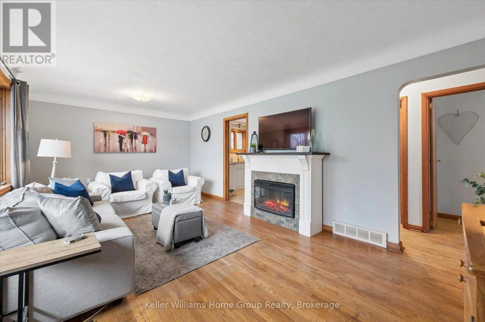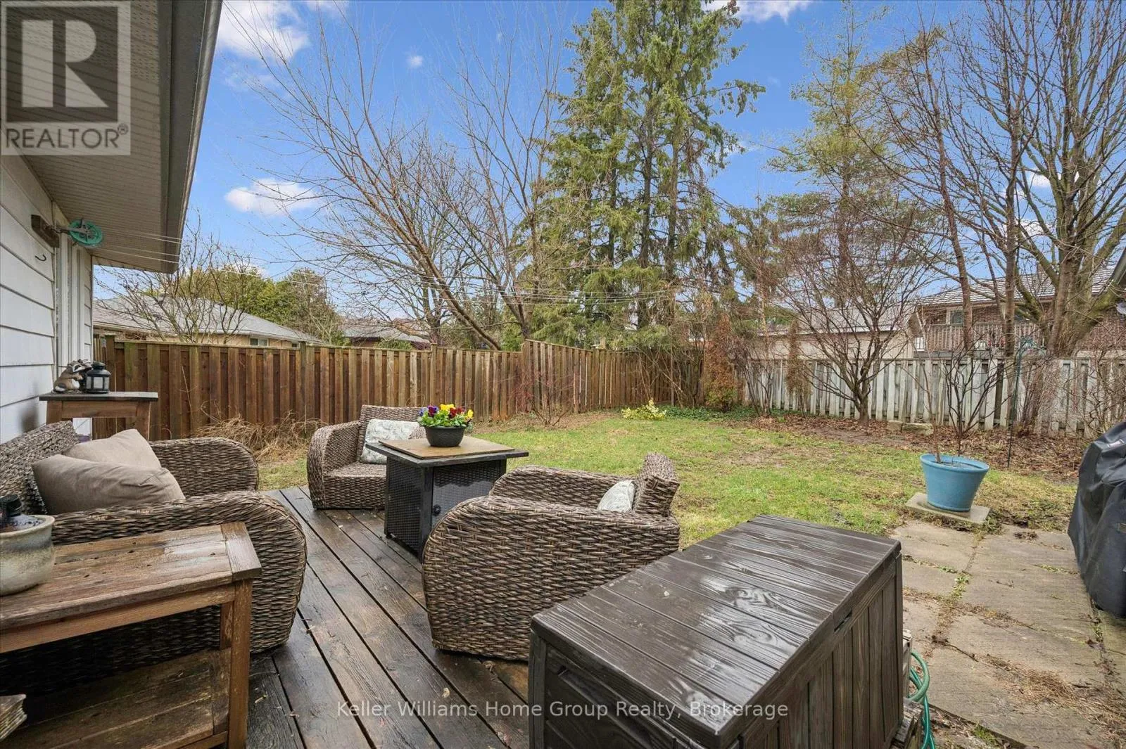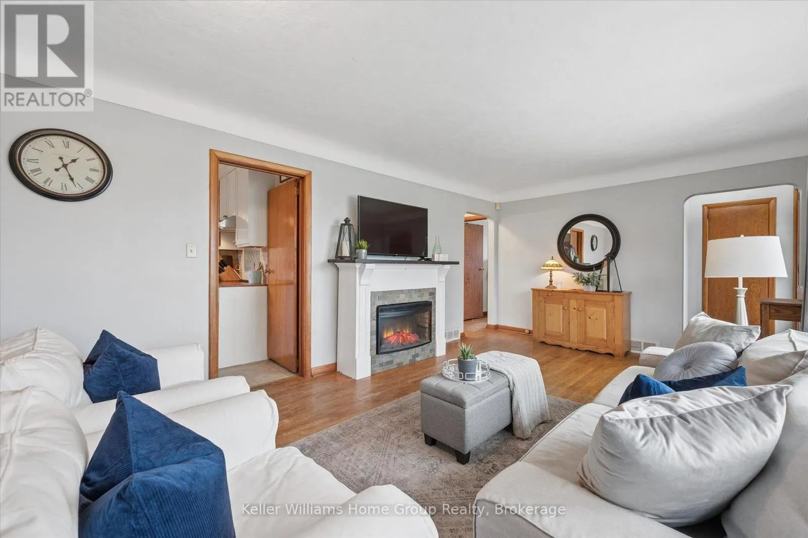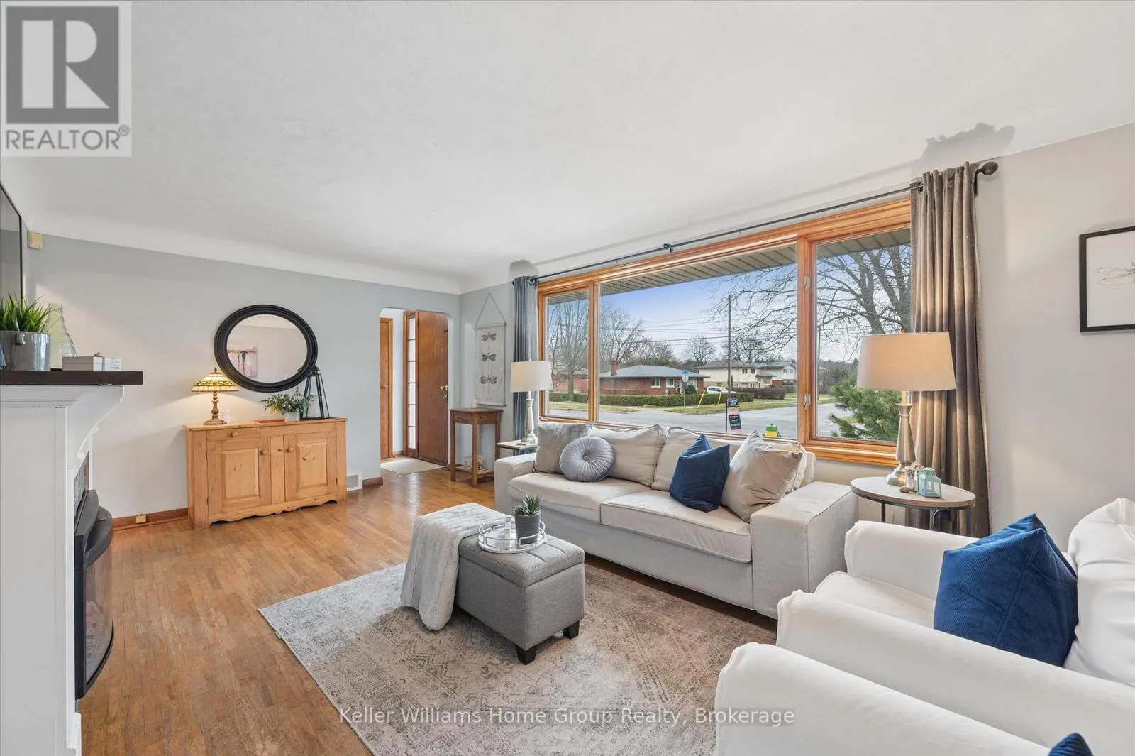Cross Streets: Meyer Drive. ** Directions: Eramosa to Meyer, turn left onto Ottawa, immediately on the right. Welcome to this beautifully maintained bungalow in the heart of the St. George's Park neighbourhood. Just steps from Ottawa Crescent Public School and Green Meadows Park, this home offers an ideal setting for families at every stage. Inside, a bright and spacious family room is anchored by a large window that fills the space with natural light and highlights the original hardwood floors. Two bedrooms and a well appointed four piece bathroom are thoughtfully positioned off the main living area.The recently updated kitchen flows seamlessly into a charming sitting area with views of the private backyard and access to a generous deck, creating a natural extension for everyday living and entertaining. A separate side entrance adds flexibility, complete with a custom built coat storage unit and a second three piece bathroom.The lower level features two additional bedrooms that can easily function as home offices, along with a cozy living area centered around a fireplace. Outside, a large wood deck leads to a private backyard surrounded by mature greenery, offering the perfect backdrop for summer gatherings or quiet afternoons. A detached garage provides excellent space for storage, hobbies, or future customization. A warm and inviting home in a sought after neighbourhood, ready for its next chapter. (id:27476)