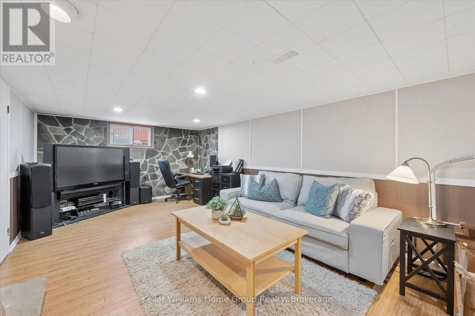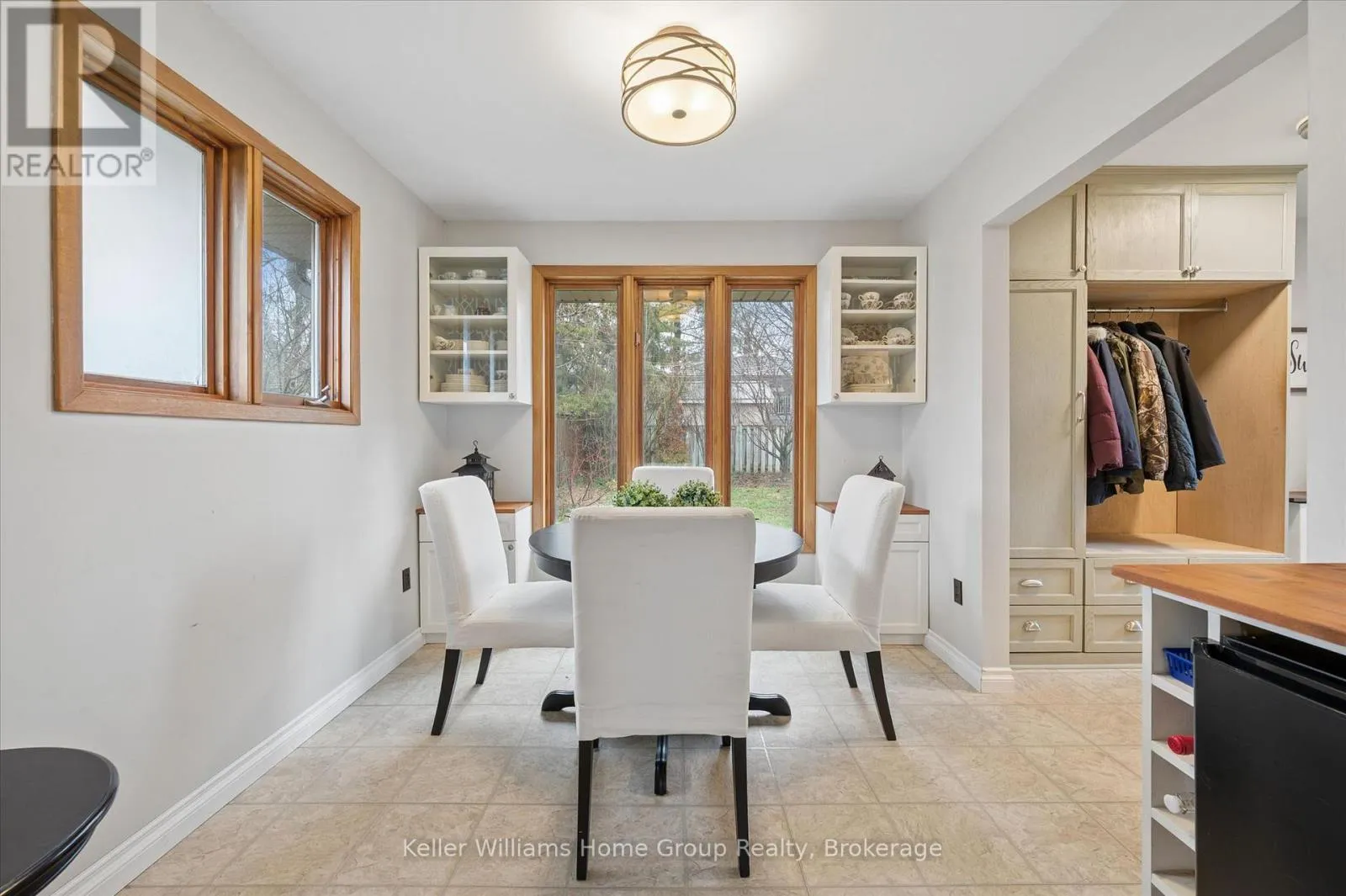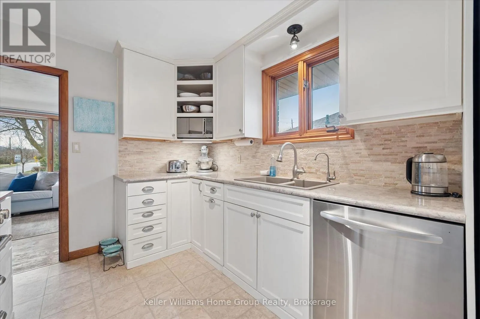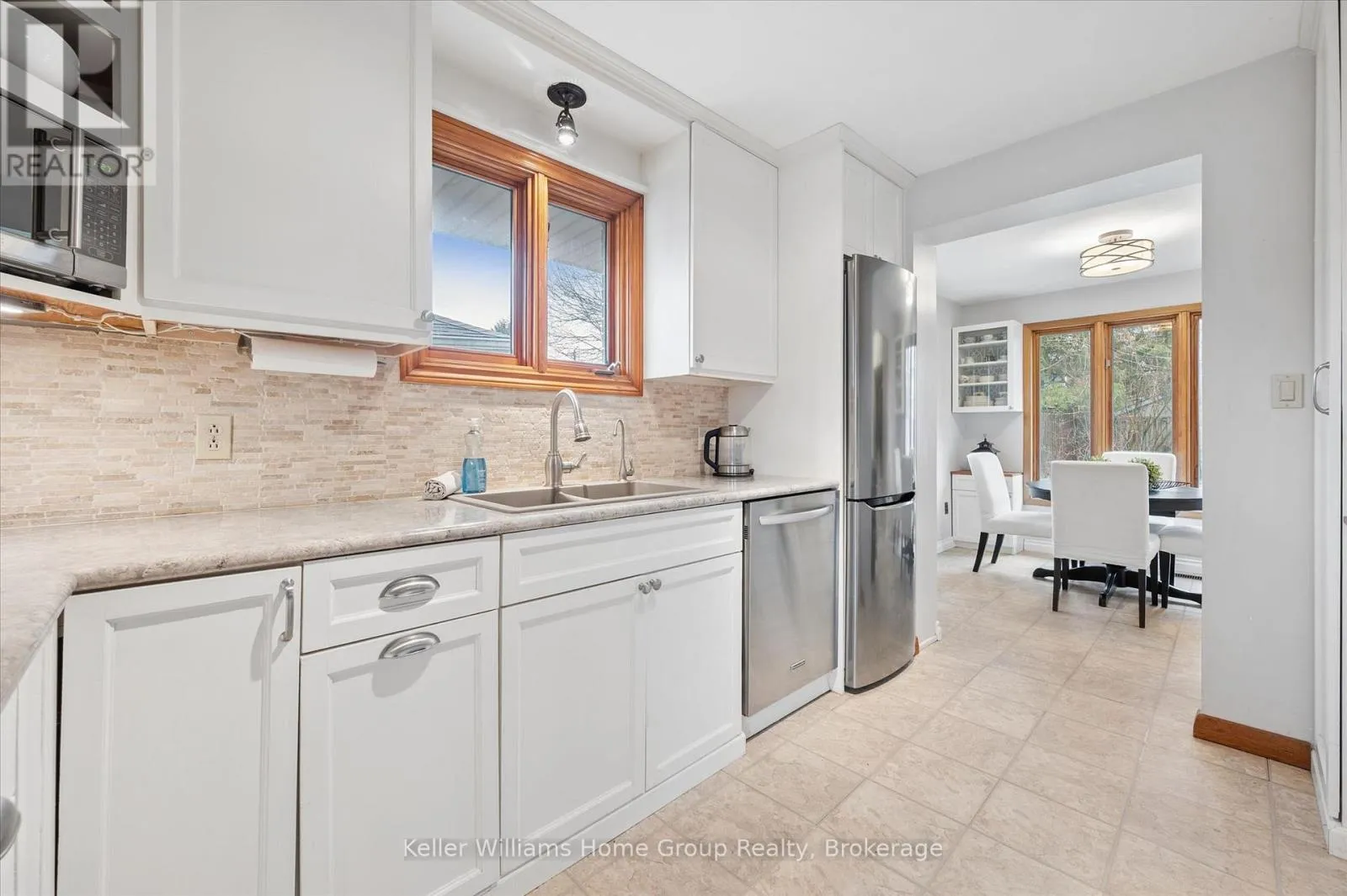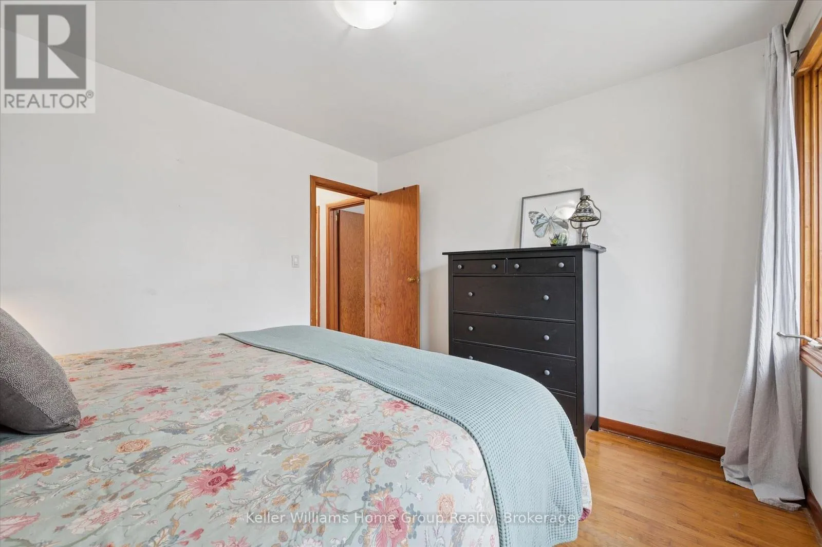 Cross Streets: Meyer Drive. ** Directions: Eramosa to Meyer, turn left onto Ottawa, immediately on the right. Welcome to this beautifully maintained bungalow in the heart of the St. George's Park neighbourhood. Just steps from Ottawa Crescent Public School and Green Meadows Park, this home offers an ideal setting for families at every stage. Inside, a bright and spacious family room is anchored by a large window that fills the space with natural light and highlights the original hardwood floors. Two bedrooms and a well appointed four piece bathroom are thoughtfully positioned off the main living area.The recently updated kitchen flows seamlessly into a charming sitting area with views of the private backyard and access to a generous deck, creating a natural extension for everyday living and entertaining. A separate side entrance adds flexibility, complete with a custom built coat storage unit and a second three piece bathroom.The lower level features two additional bedrooms that can easily function as home offices, along with a cozy living area centered around a fireplace. Outside, a large wood deck leads to a private backyard surrounded by mature greenery, offering the perfect backdrop for summer gatherings or quiet afternoons. A detached garage provides excellent space for storage, hobbies, or future customization. A warm and inviting home in a sought after neighbourhood, ready for its next chapter. (id:27476)