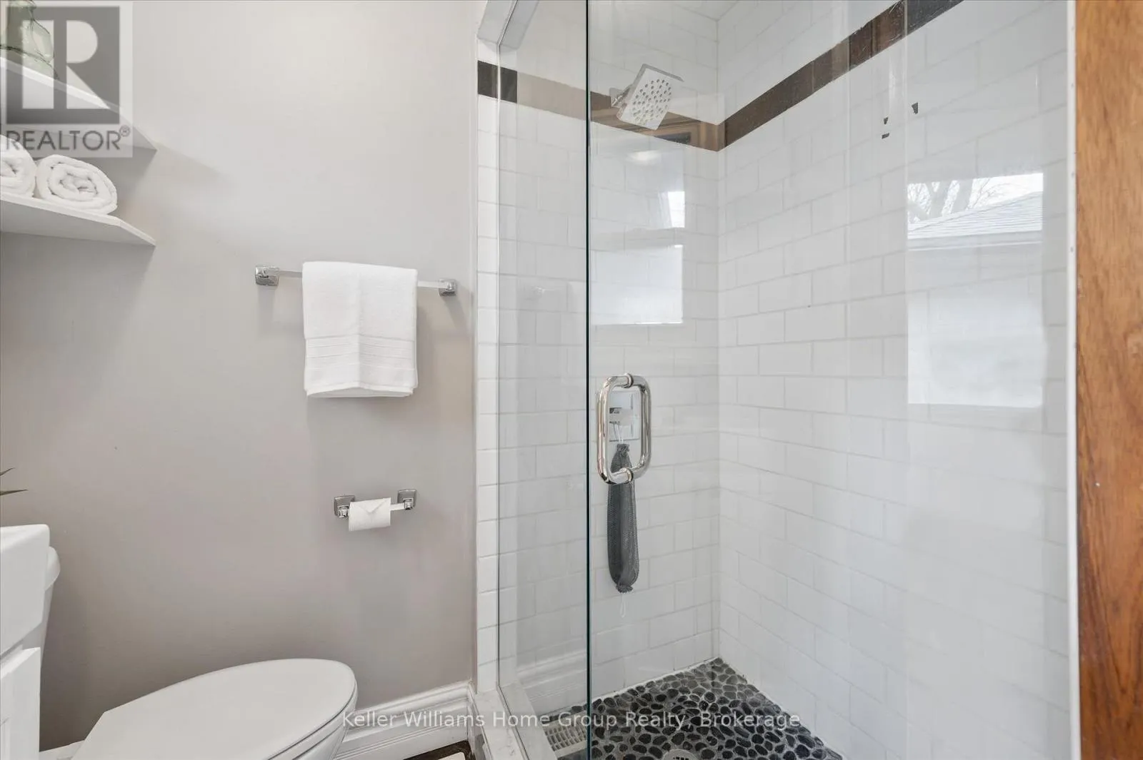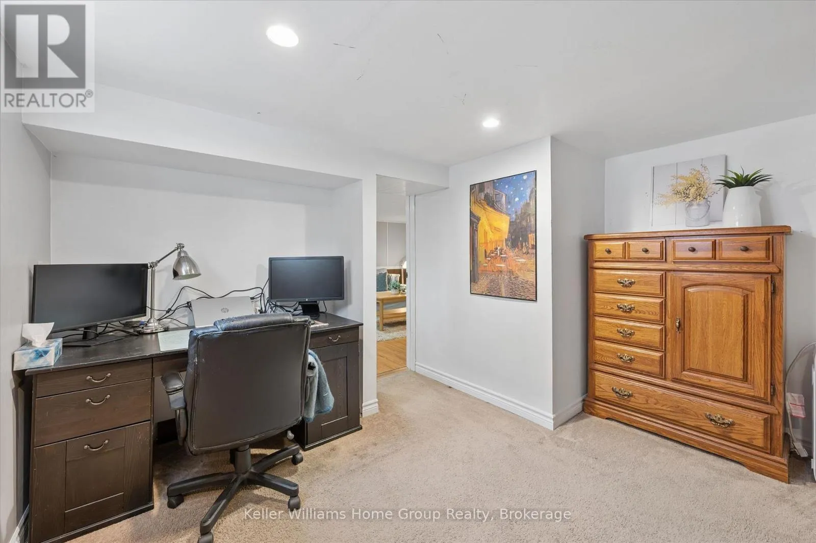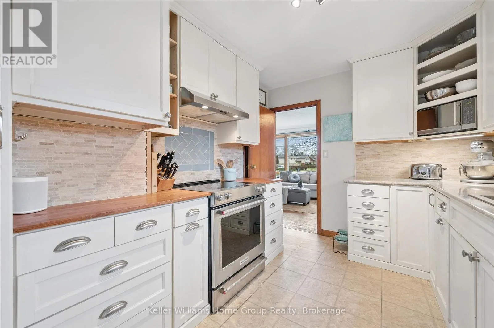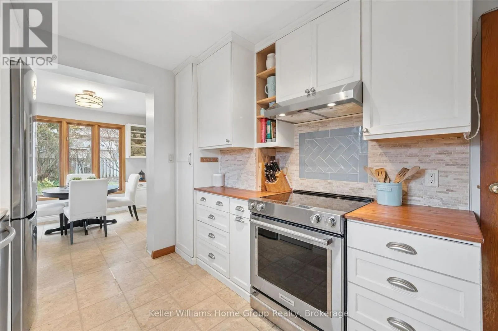 Cross Streets: Meyer Drive. ** Directions: Eramosa to Meyer, turn left onto Ottawa, immediately on the right. Welcome to this beautifully maintained bungalow in the heart of the St. George's Park neighbourhood. Just steps from Ottawa Crescent Public School and Green Meadows Park, this home offers an ideal setting for families at every stage. Inside, a bright and spacious family room is anchored by a large window that fills the space with natural light and highlights the original hardwood floors. Two bedrooms and a well appointed four piece bathroom are thoughtfully positioned off the main living area.The recently updated kitchen flows seamlessly into a charming sitting area with views of the private backyard and access to a generous deck, creating a natural extension for everyday living and entertaining. A separate side entrance adds flexibility, complete with a custom built coat storage unit and a second three piece bathroom.The lower level features two additional bedrooms that can easily function as home offices, along with a cozy living area centered around a fireplace. Outside, a large wood deck leads to a private backyard surrounded by mature greenery, offering the perfect backdrop for summer gatherings or quiet afternoons. A detached garage provides excellent space for storage, hobbies, or future customization. A warm and inviting home in a sought after neighbourhood, ready for its next chapter. (id:27476)