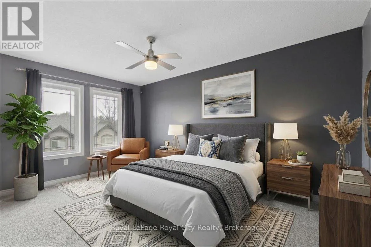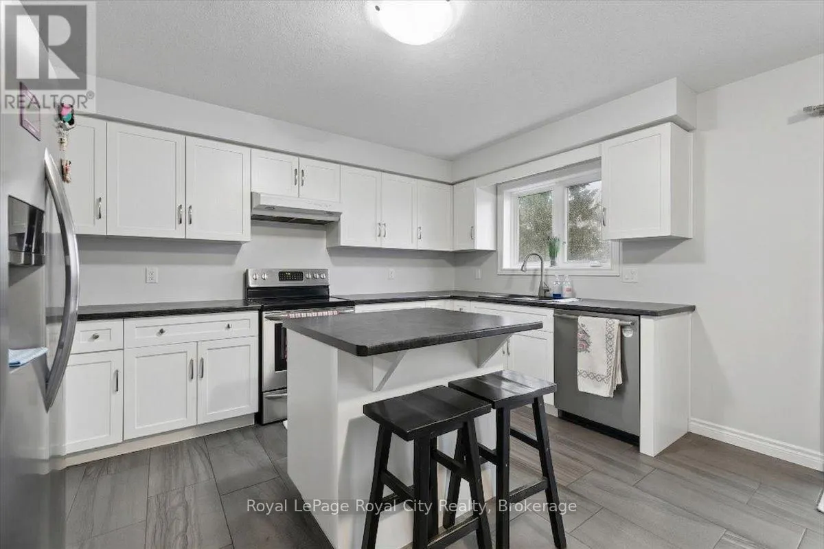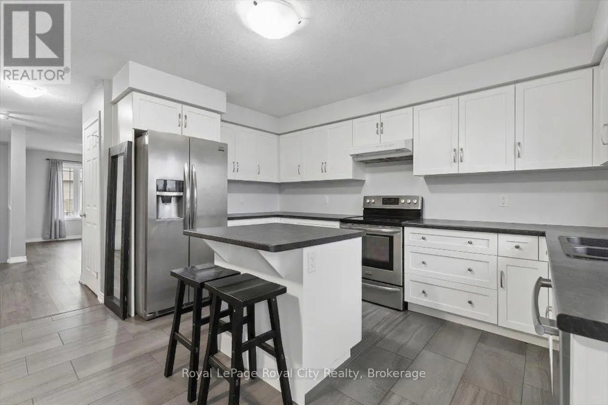 Victoria Road N to Eastview Road Spacious 3-Storey Townhouse in Guelph's East End - 1,600 sq ft. This beautifully designed 3-storey condo townhouse offers 1,600 sq ft of bright, living space with an added bonus - no exterior maintenance required. The home features a large kitchen with stainless steel appliances including dishwasher, an island, and a formal kitchen area, flowing seamlessly into a spacious living room filled with lots of windows and natural light. With 4 bedrooms (3+1) and 4 bathrooms (3+1), including a primary bedroom with a private ensuite, there's ample space for families, a home office, or a gym setup. The finished basement comes with a separate entrance, providing flexibility. Key Features: Modern finishes throughout for a clean, updated feel. Two parking spaces included and visitor parking for guests when entertaining. Less than 10 minutes' drive to the University of Guelph. No exterior maintenance required means no lawn care and limited snow removal required! This home blends features, convenience, style, and functionality, perfect for families seeking room to grow without the hassle of upkeep and perfect for groups of students. June 1st occupancy! (id:27476)