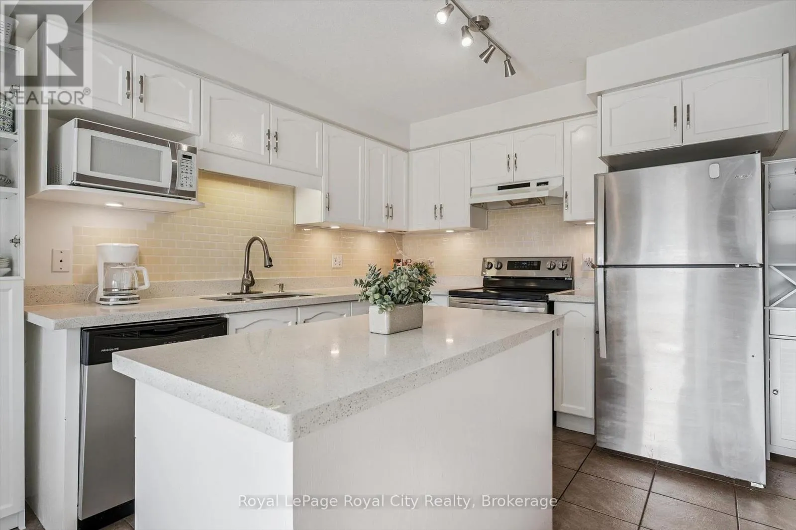 Cross Streets: Victoria Rd S. ** Directions: Victoria Rd S to Arkell Rd. This move-in-ready 3+1 bedroom, 3.5 bathroom townhome delivers the space, layout, and flexibility today's buyers want! Perfect for a move-up buyer craving more room, a young family looking to settle into a welcoming neighbourhood, or an investor seeking a strong rental opportunity near the University and public transit - this one checks all the boxes. The open-concept main floor is designed for everyday living and easy entertaining, with a social kitchen featuring a central island that overlooks the dining and living areas. Sliding doors lead to a private deck, creating the perfect setup for summer BBQs. Upstairs, the primary bedroom enjoys its own ensuite, while two additional bedrooms are serviced by a full main bath - ideal for growing families. The finished basement adds even more value, offering a fourth bedroom with an egress window and private ensuite, making it perfect for guests, extended family, or a mature student. There's also bonus space for a dedicated work-from-home nook! Ideally located just minutes from schools, parks, shopping, public transit, the University of Guelph, Starkey Hill trails, and Highway 401 access, this is truly a lifestyle-driven location. Low condo fees include snow removal, lawn maintenance, and coverage of major exterior components such as the roof - giving you the ease of low-maintenance living with added peace of mind whether you're moving in or adding to your investment portfolio. (id:27476)